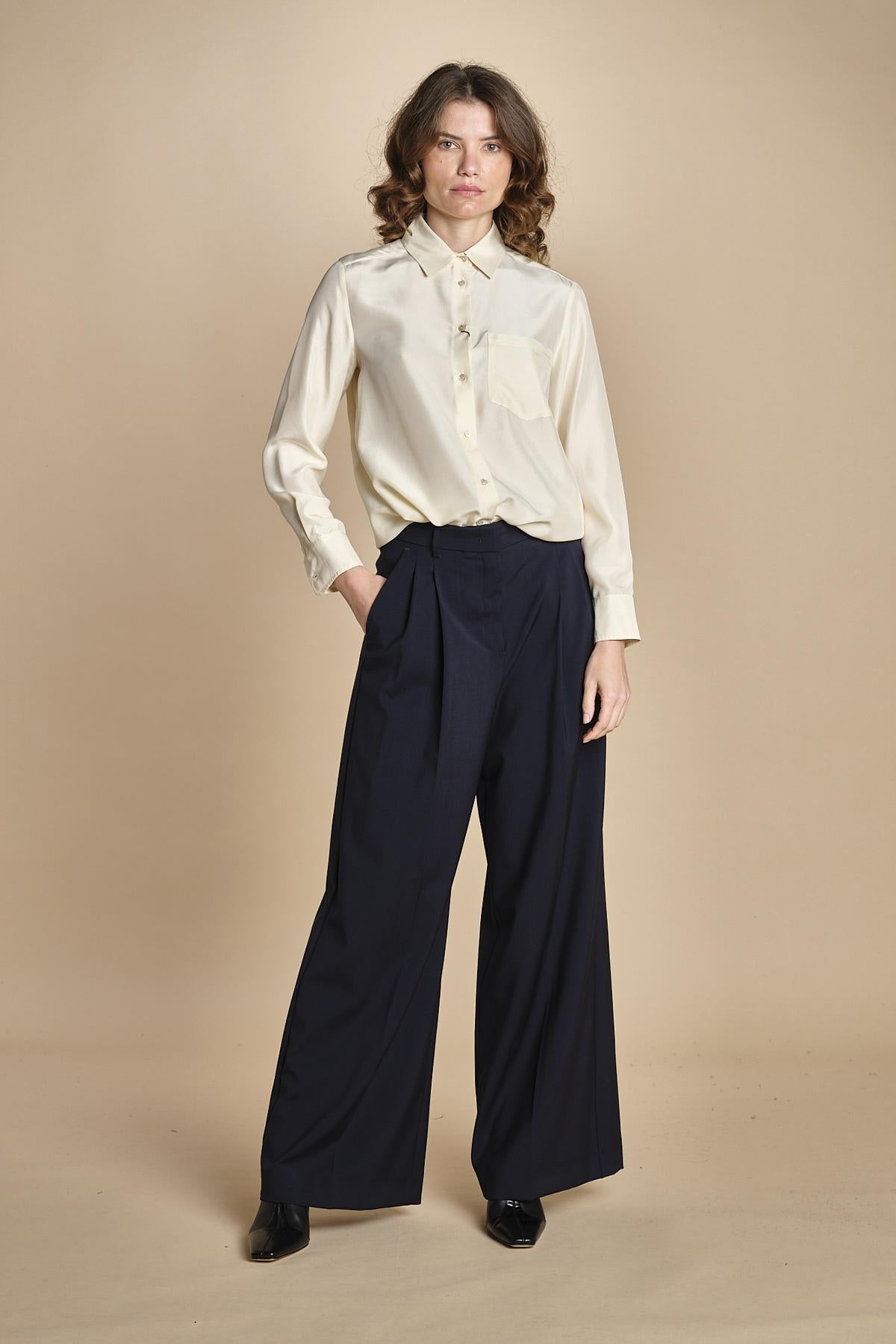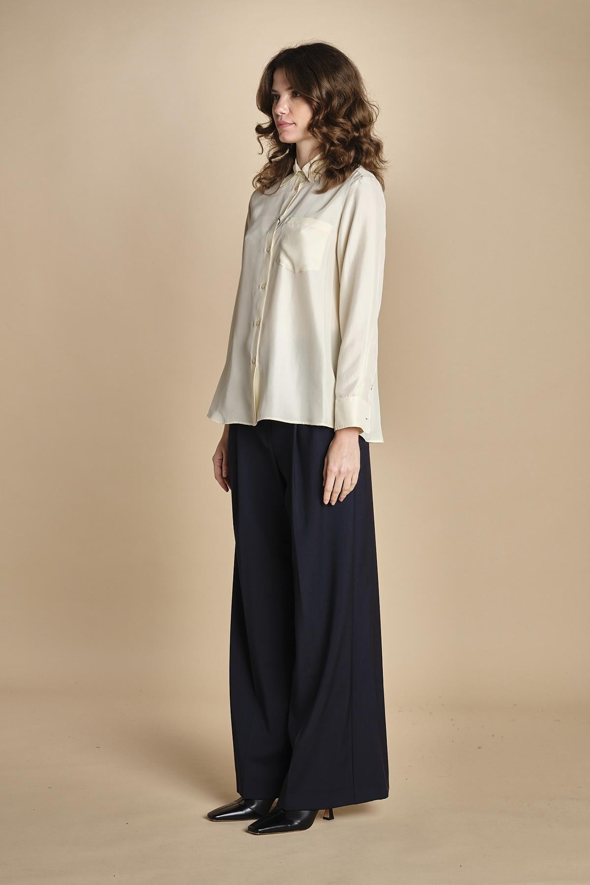 camicia uomo in seta. La modella è alta 176 cm e indossa una taglia 38. 100% SETA