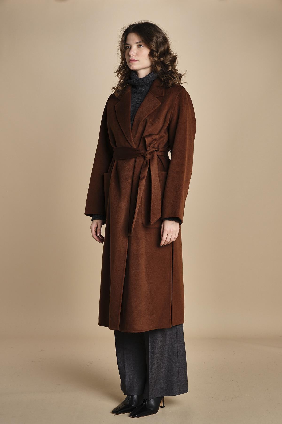 cappotto vestaglia double. La modella è alta 176 cm e indossa una taglia 38. 100% LANA