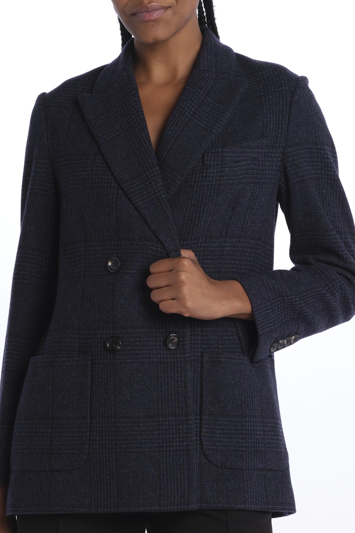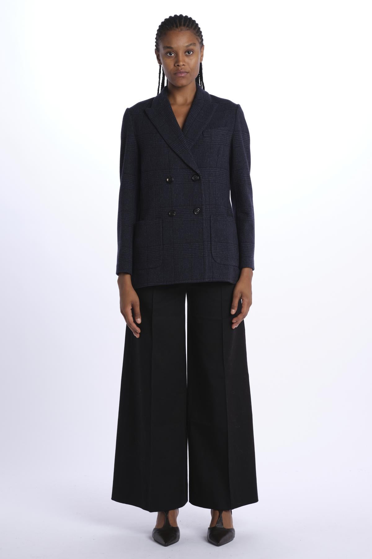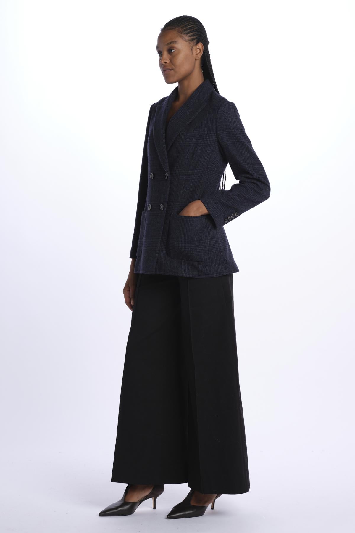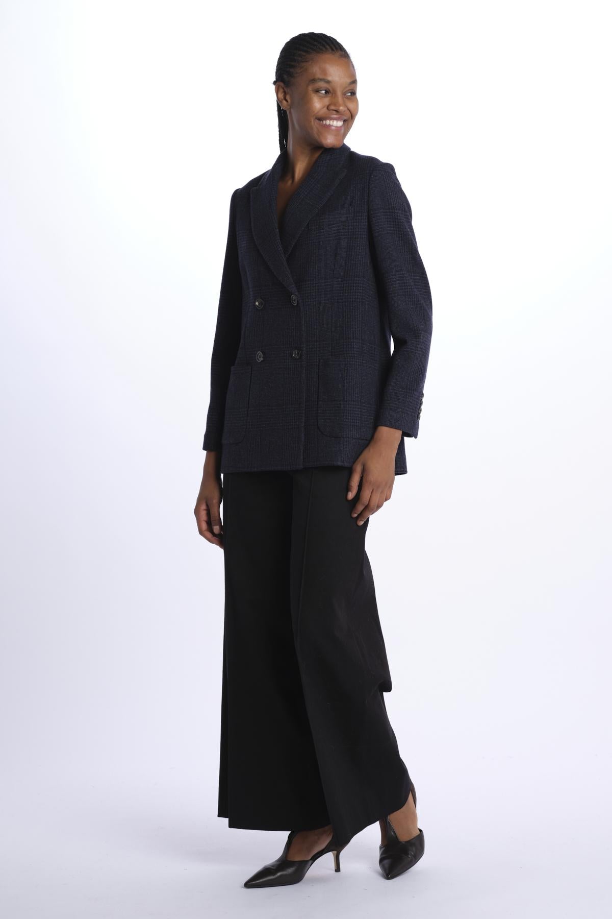 Doppiopetto luxury galles by circolo 1901. La modella è alta 174 cm e indossa una 38. Composizione: 95% lana vergine, 5% cashmere.