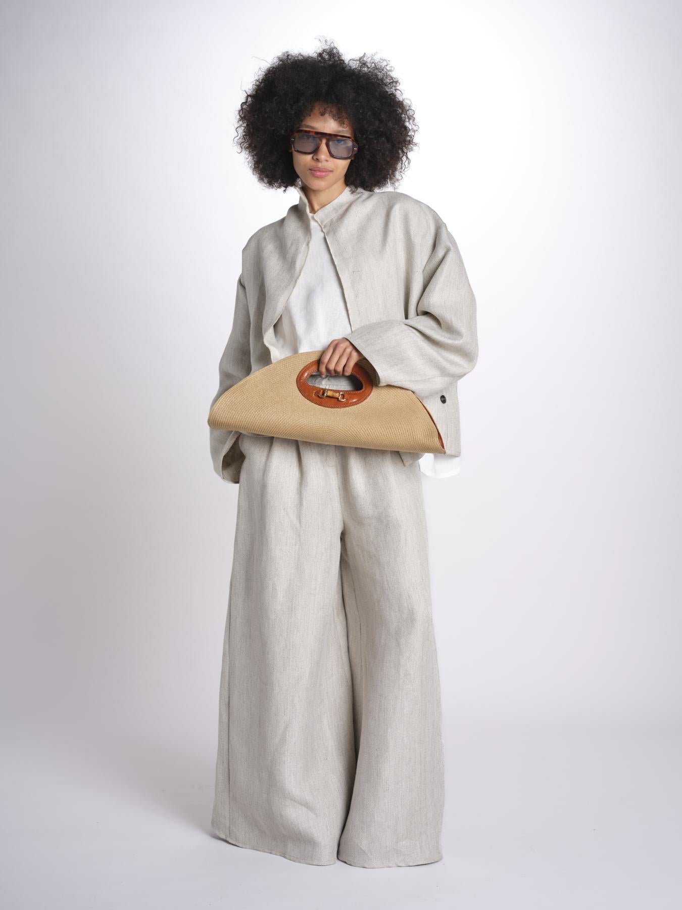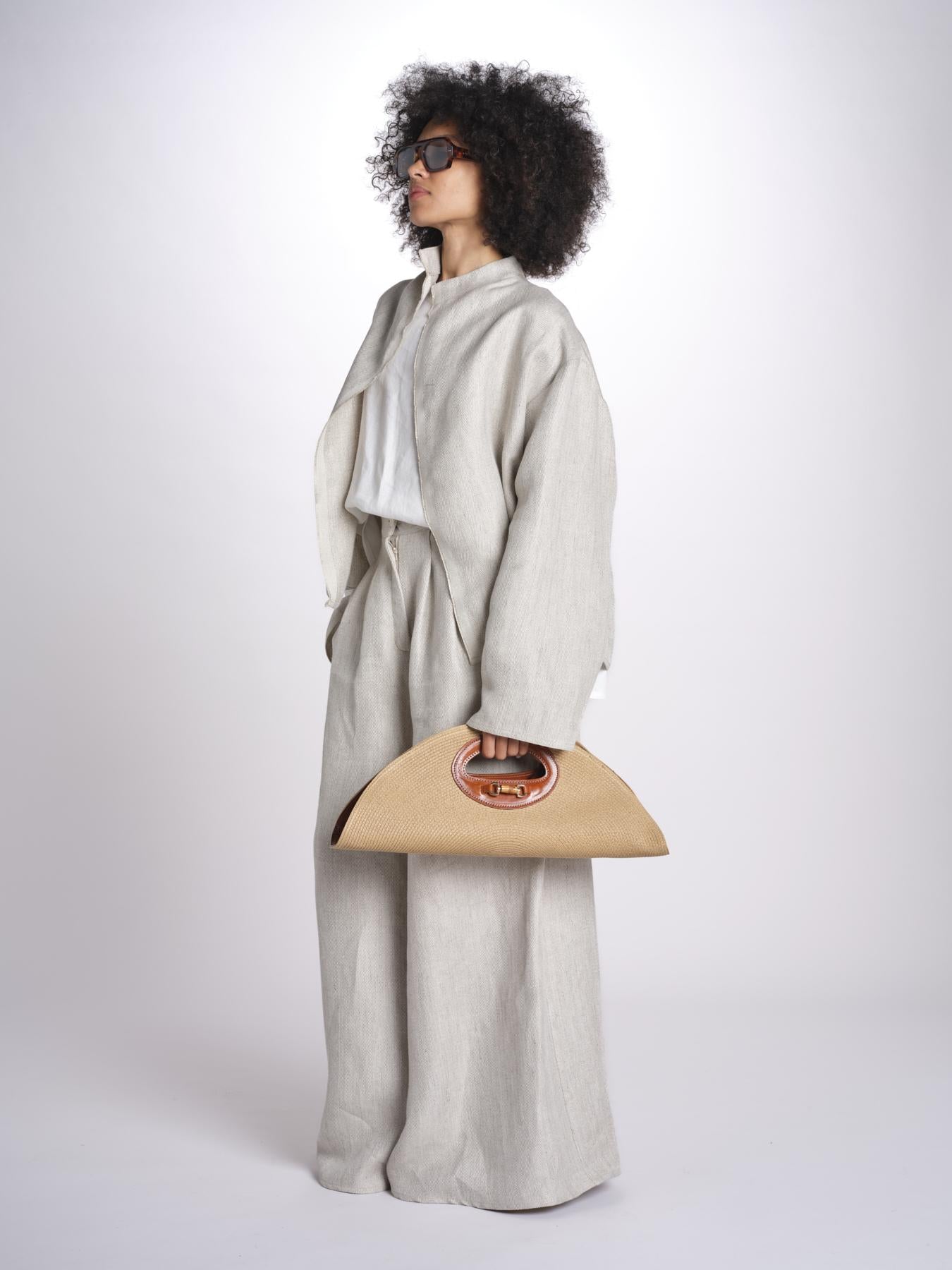 Clutch in paglia e pelle by Catarzi 1910. Larghezza: 50cm, altezza: 20cm
