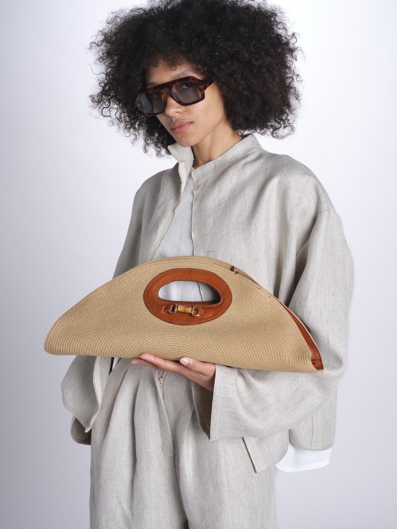 clutch in paglia e pelle