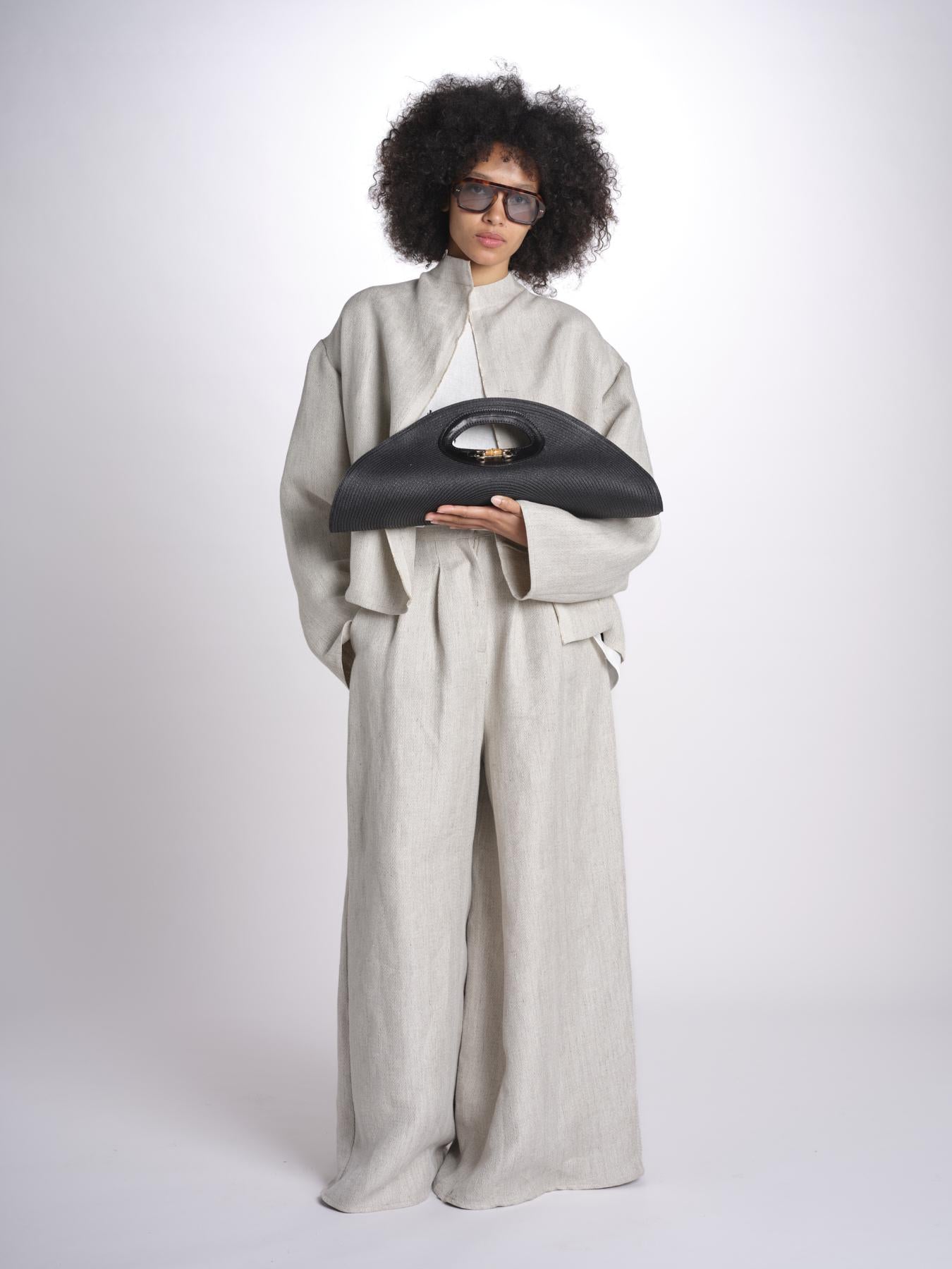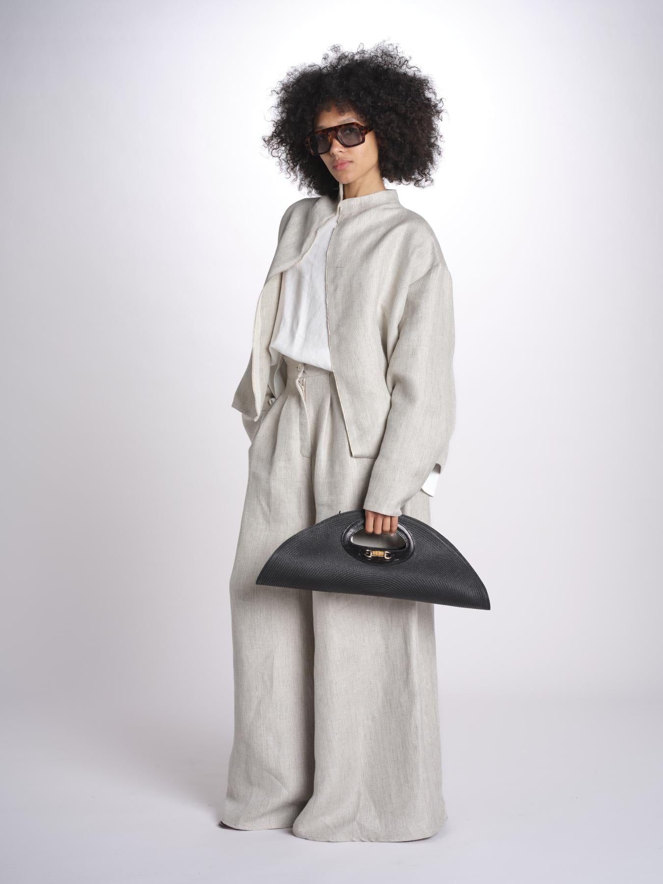 clutch in paglia e pelle MARTINICA P26CAT65 NERO catarzi 1910