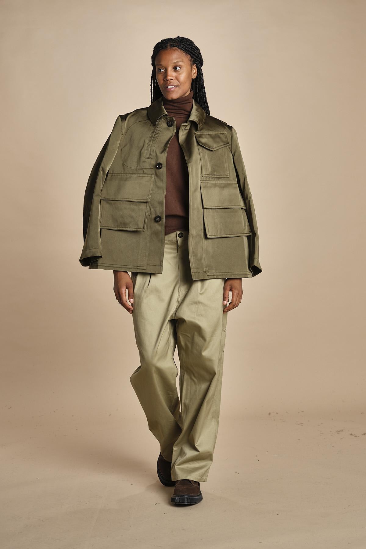 sahariana cotone by sofie d'hoore. La modella è alta 174 cm e indossa una taglia S. Composizione: 100% poliestere.
