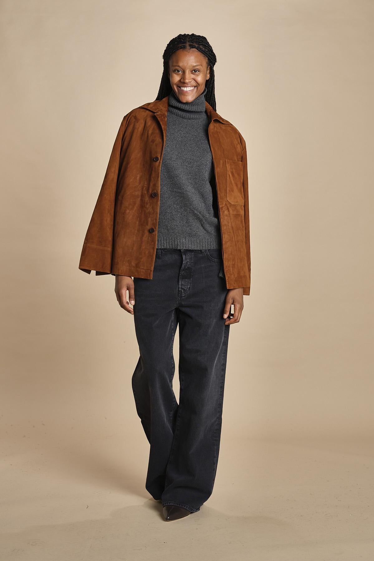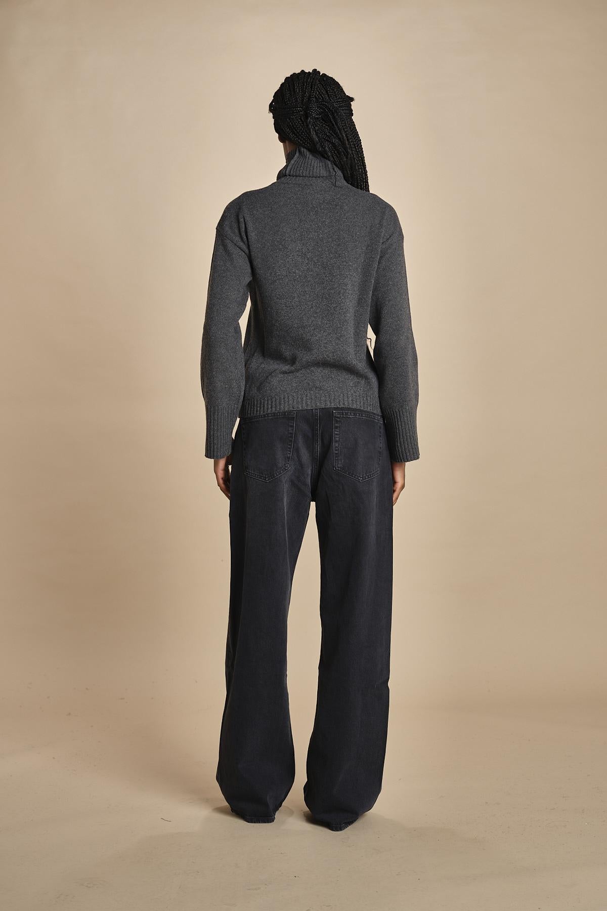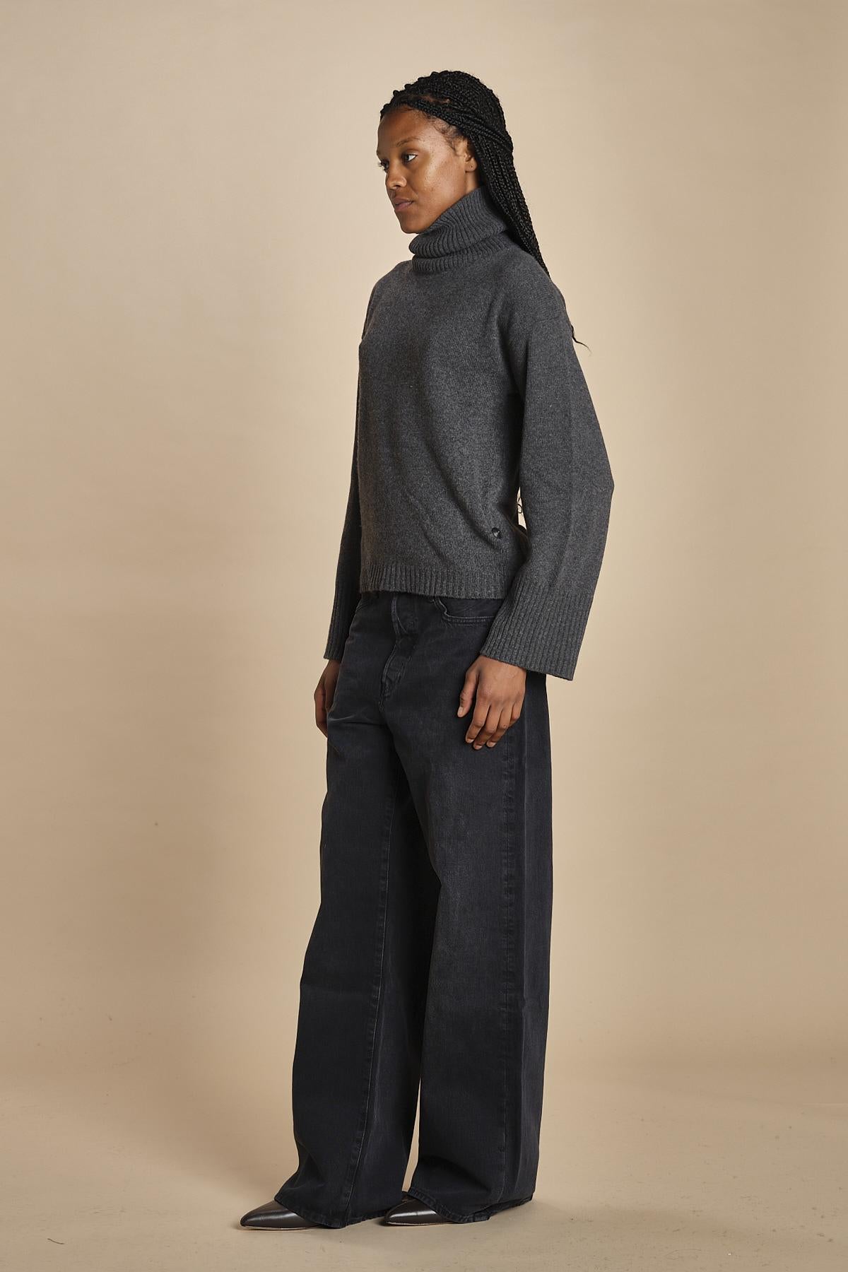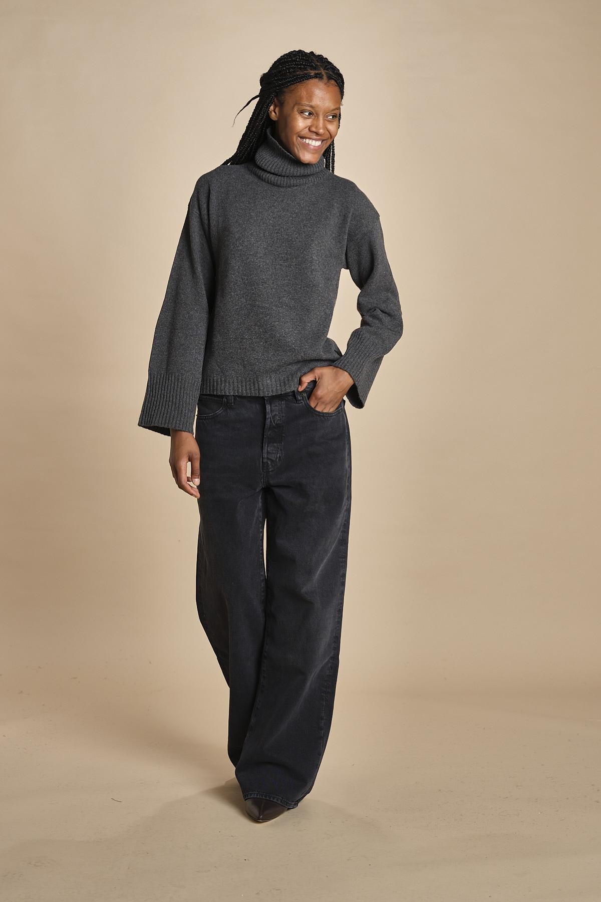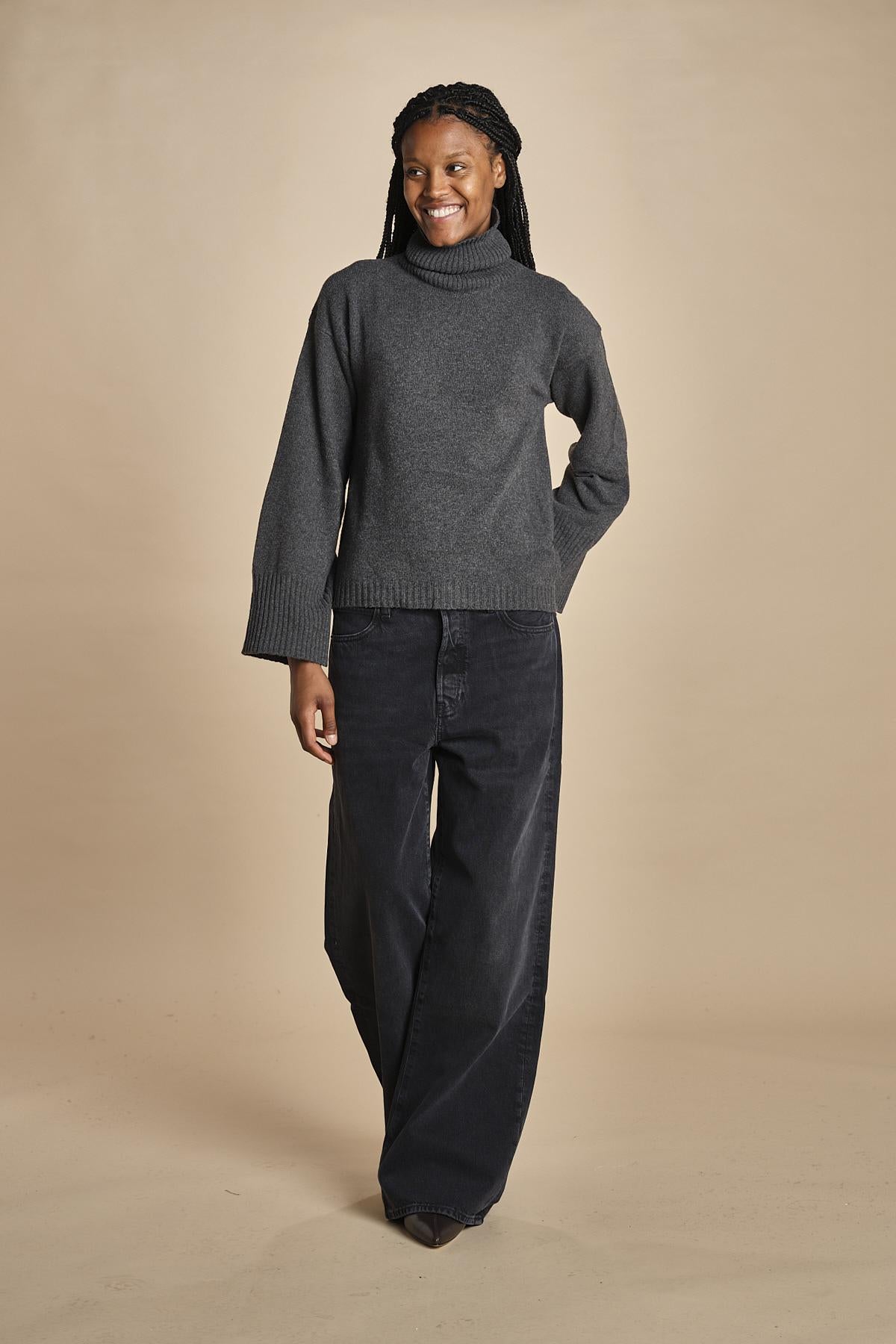 dolcevita con manica a campana by milaura. . La modella è alta 174 cm e indossa una taglia S. Composizione: 40%lana, 30% viscosa, 20% polliammide, 10% cashmere.