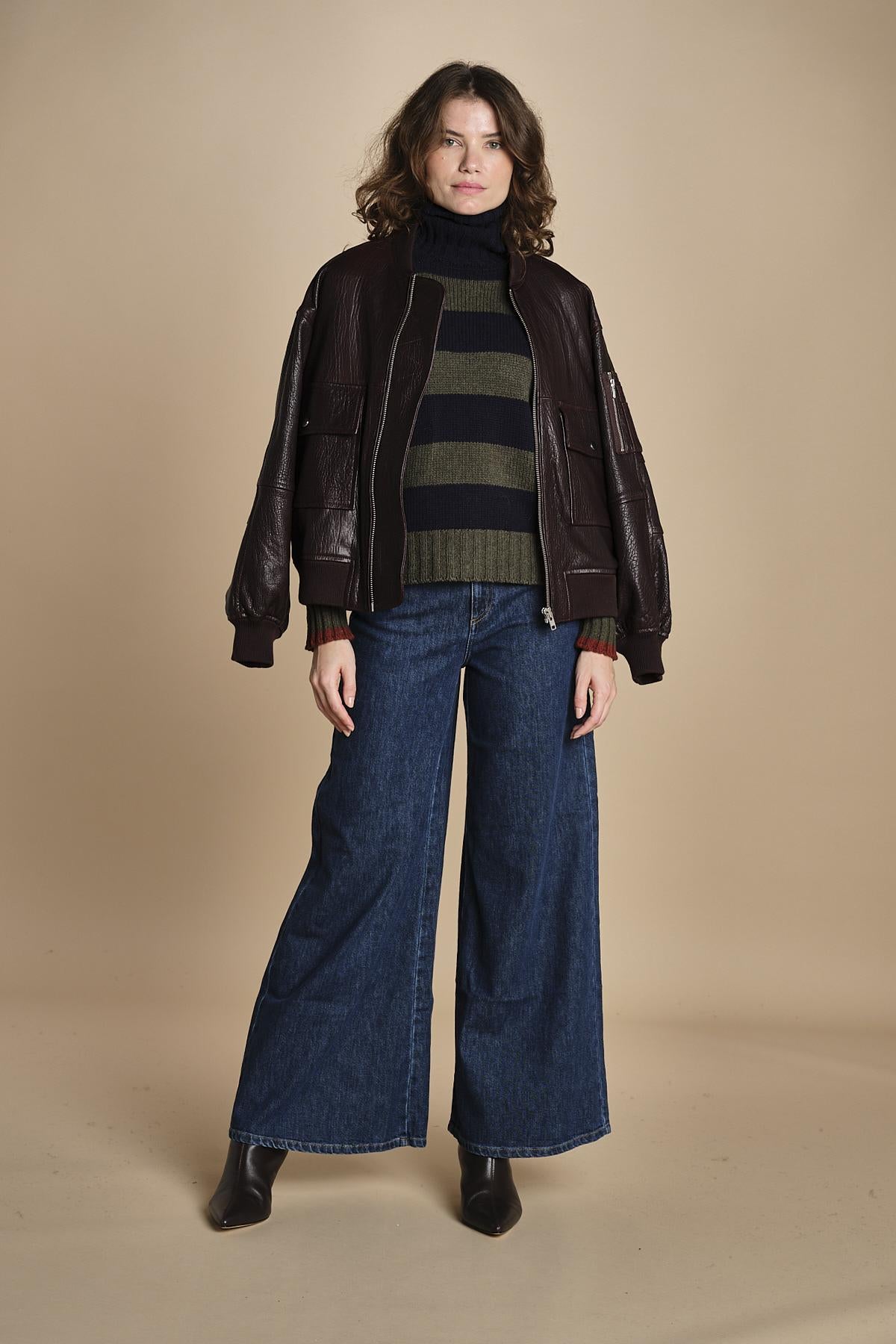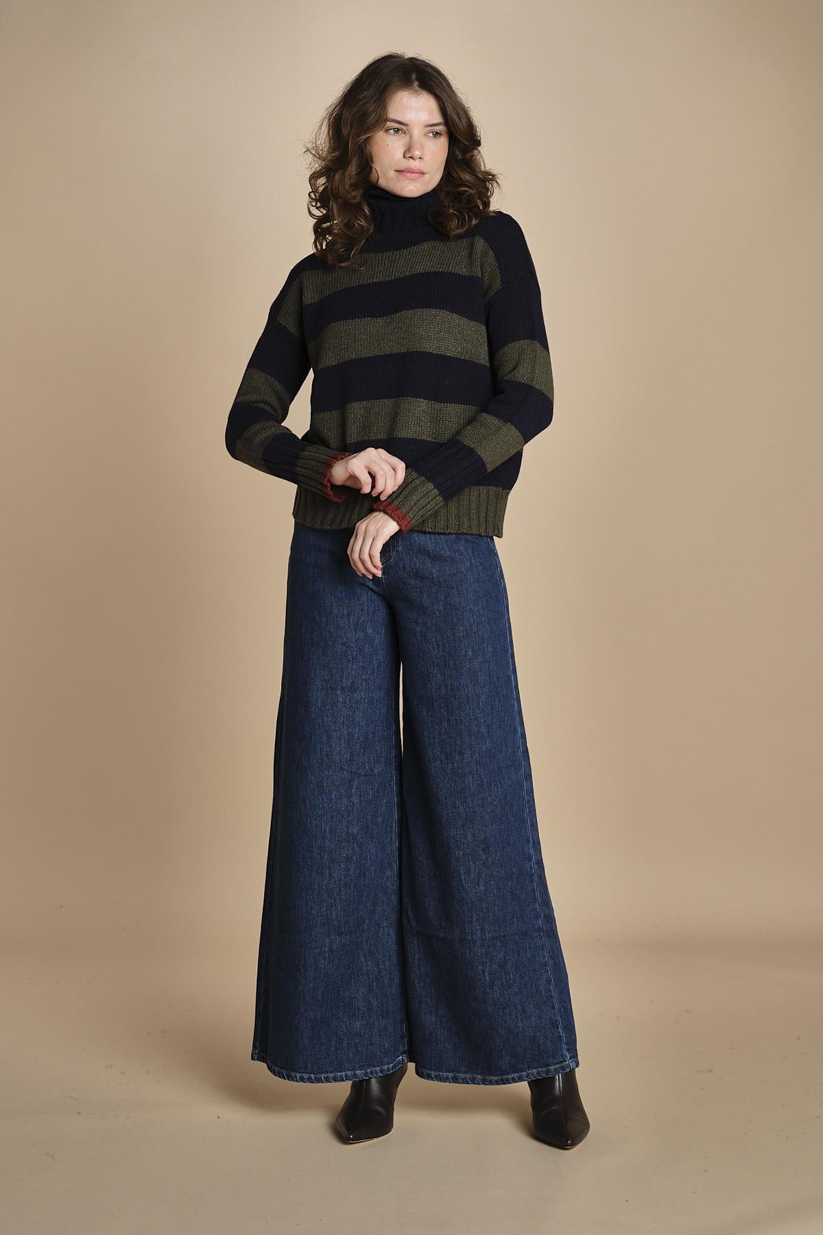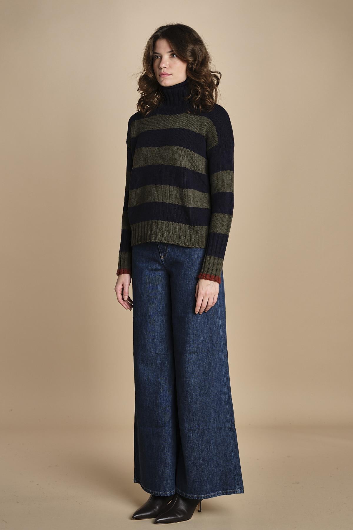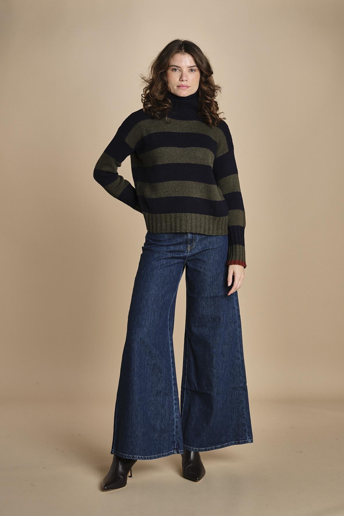dolcevita over a righe by milaura. La modella è alta 176 cm e indossa una taglia 40. 100% CACHEMIRE
