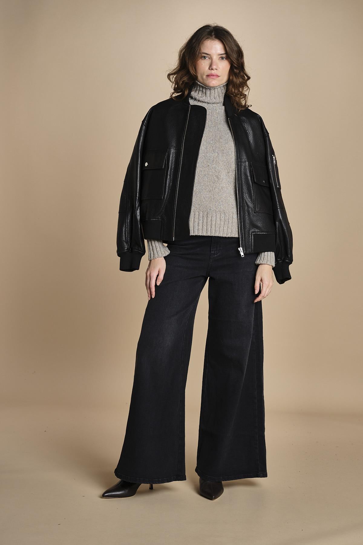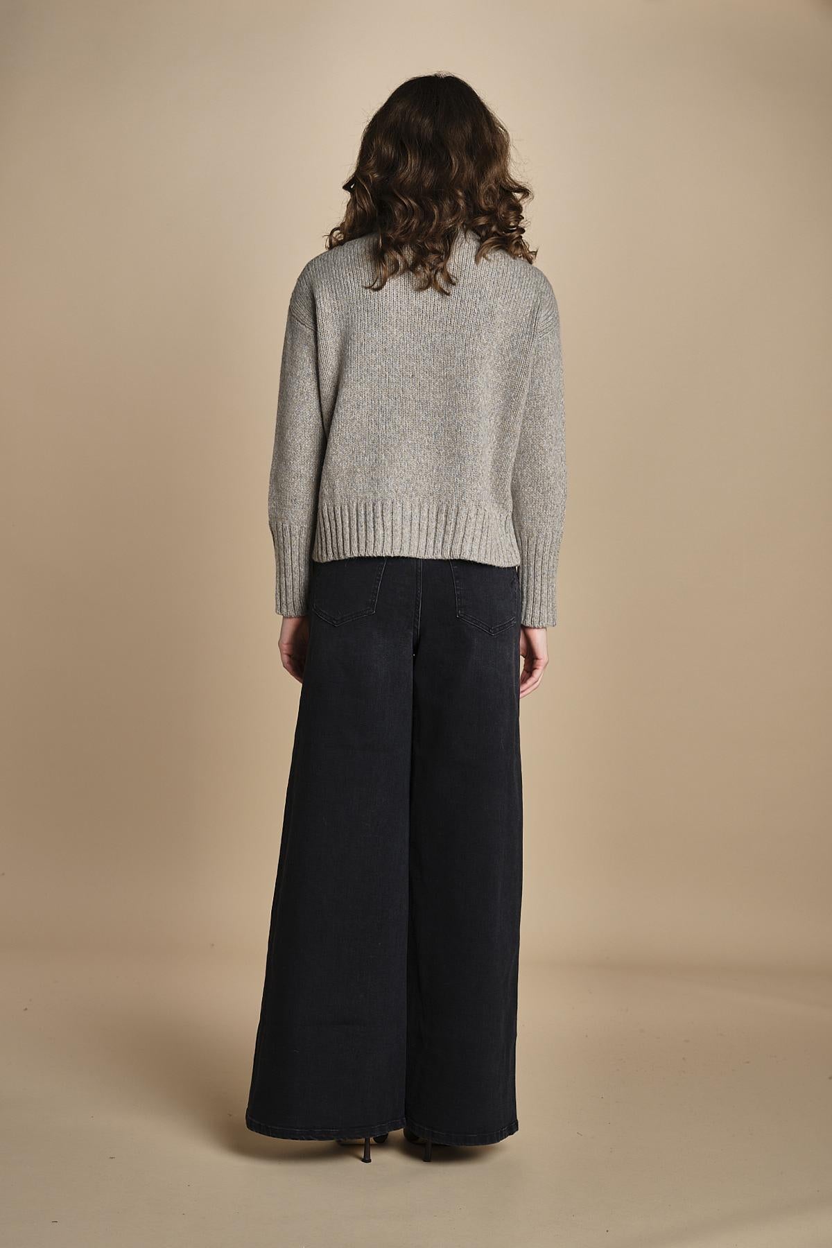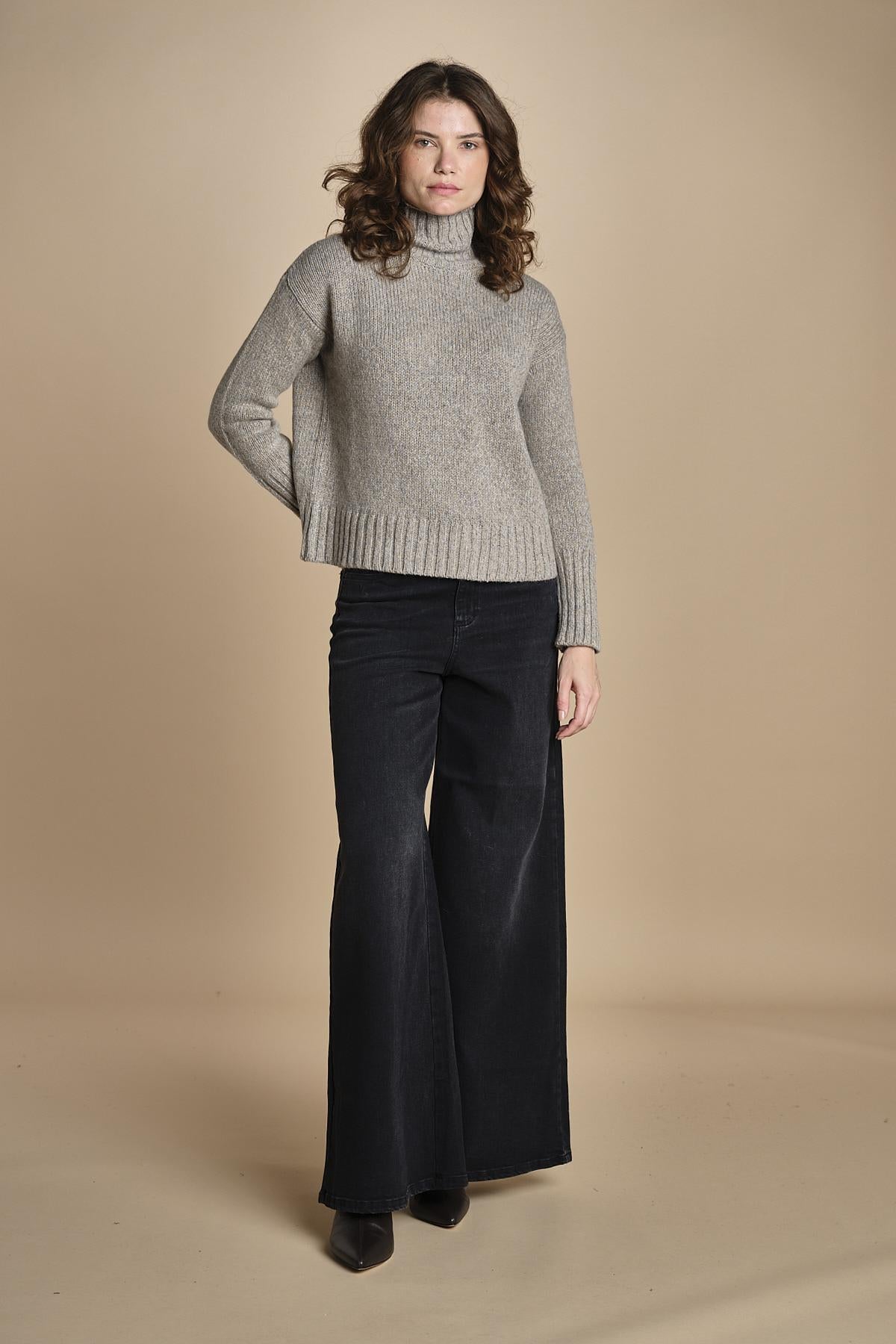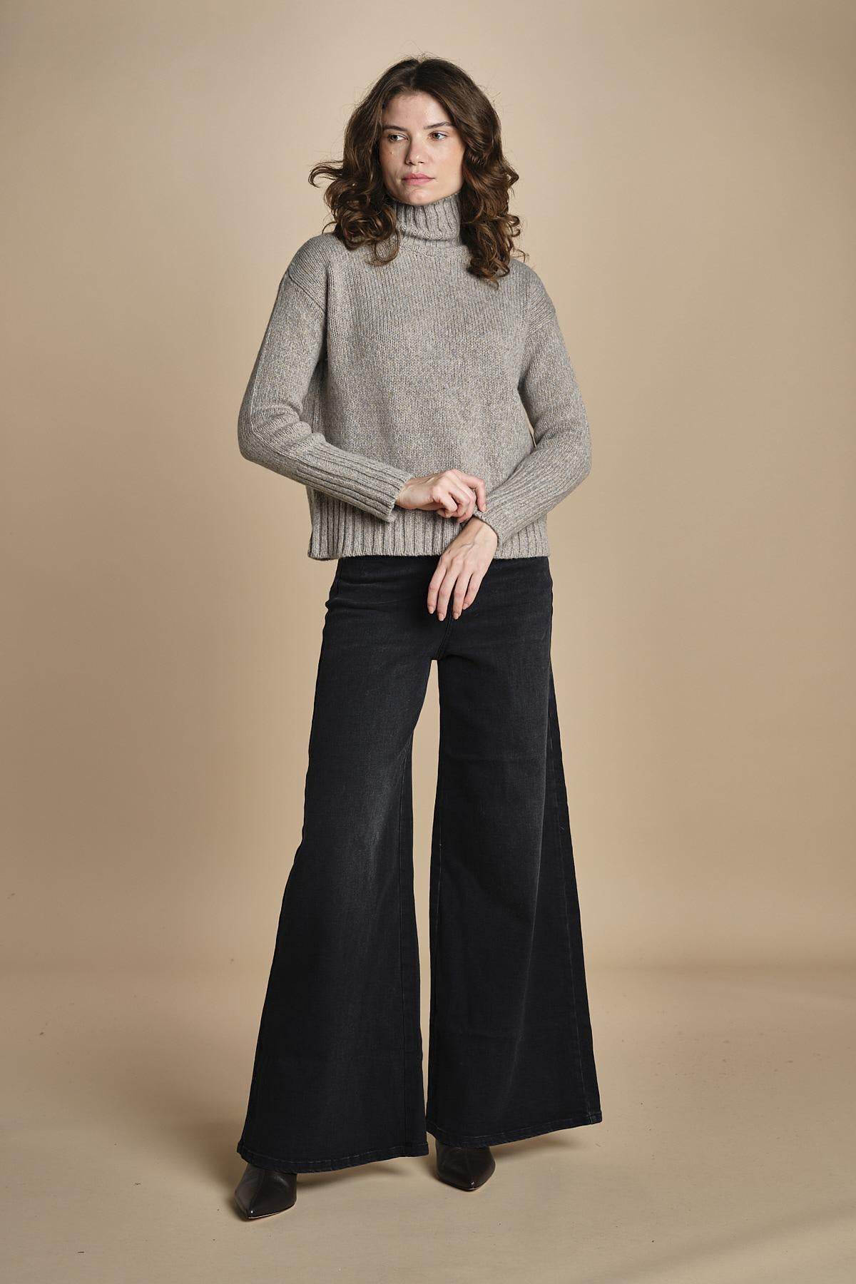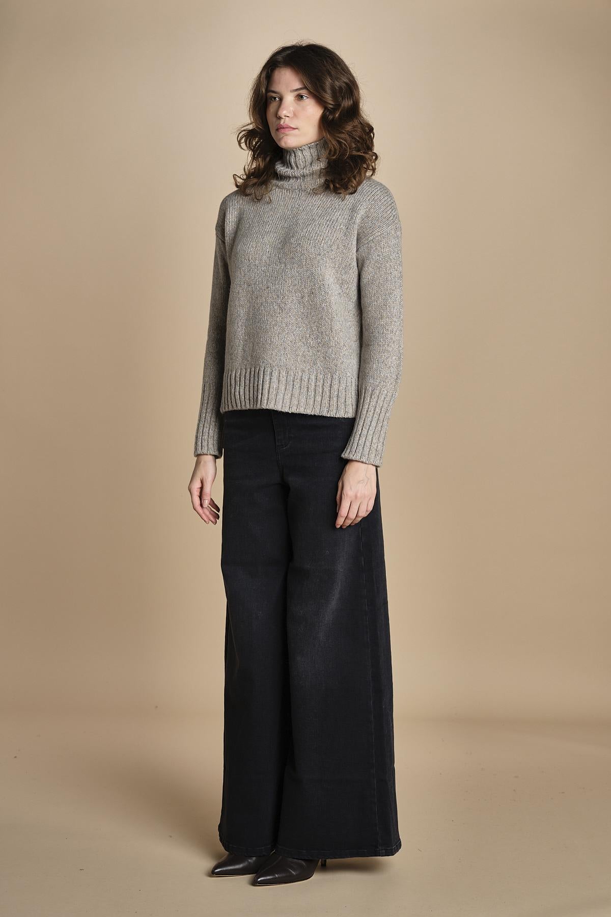 dolcevita in alpamerinos melange by milaura. La modella è alta 176 cm e indossa una taglia 38.50% BABY ALPACA 50% MERINO