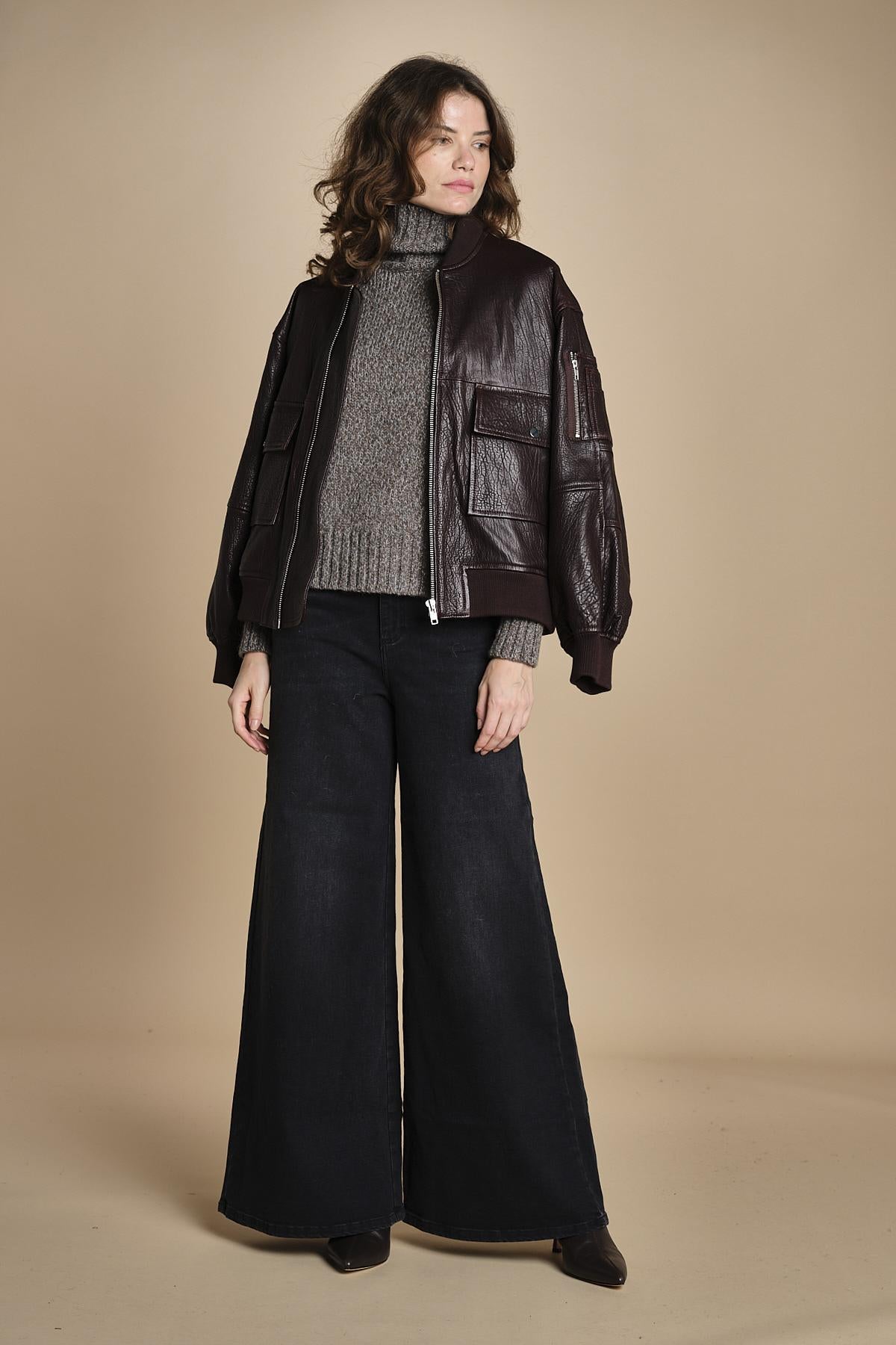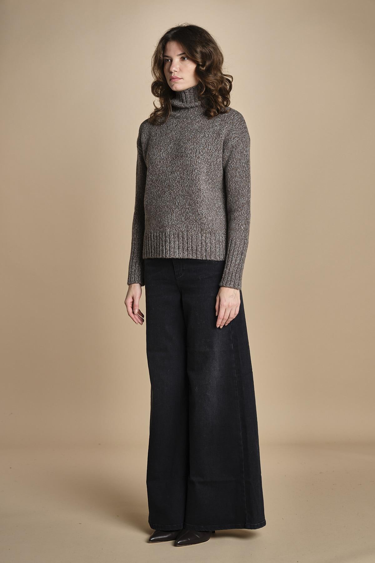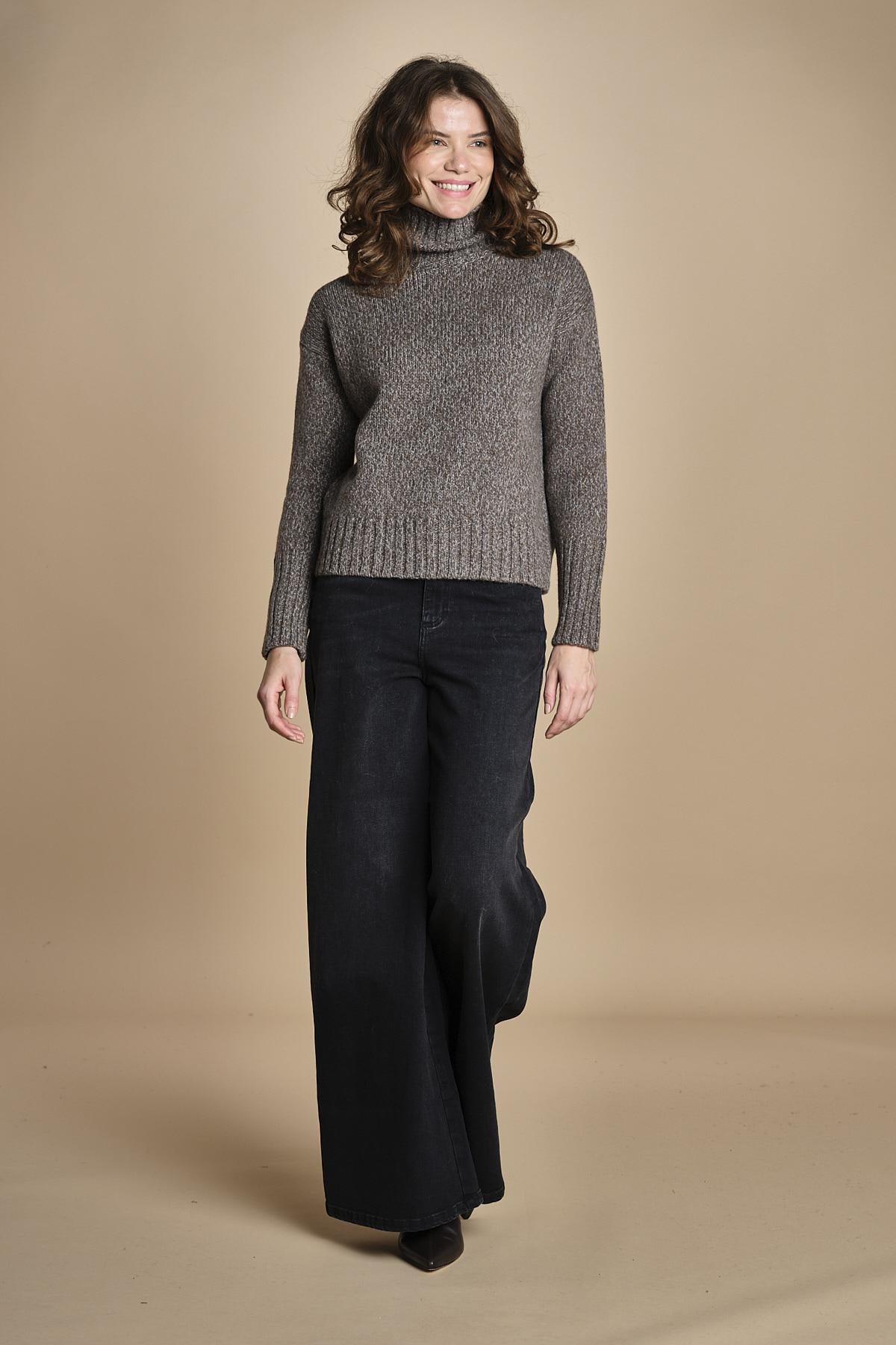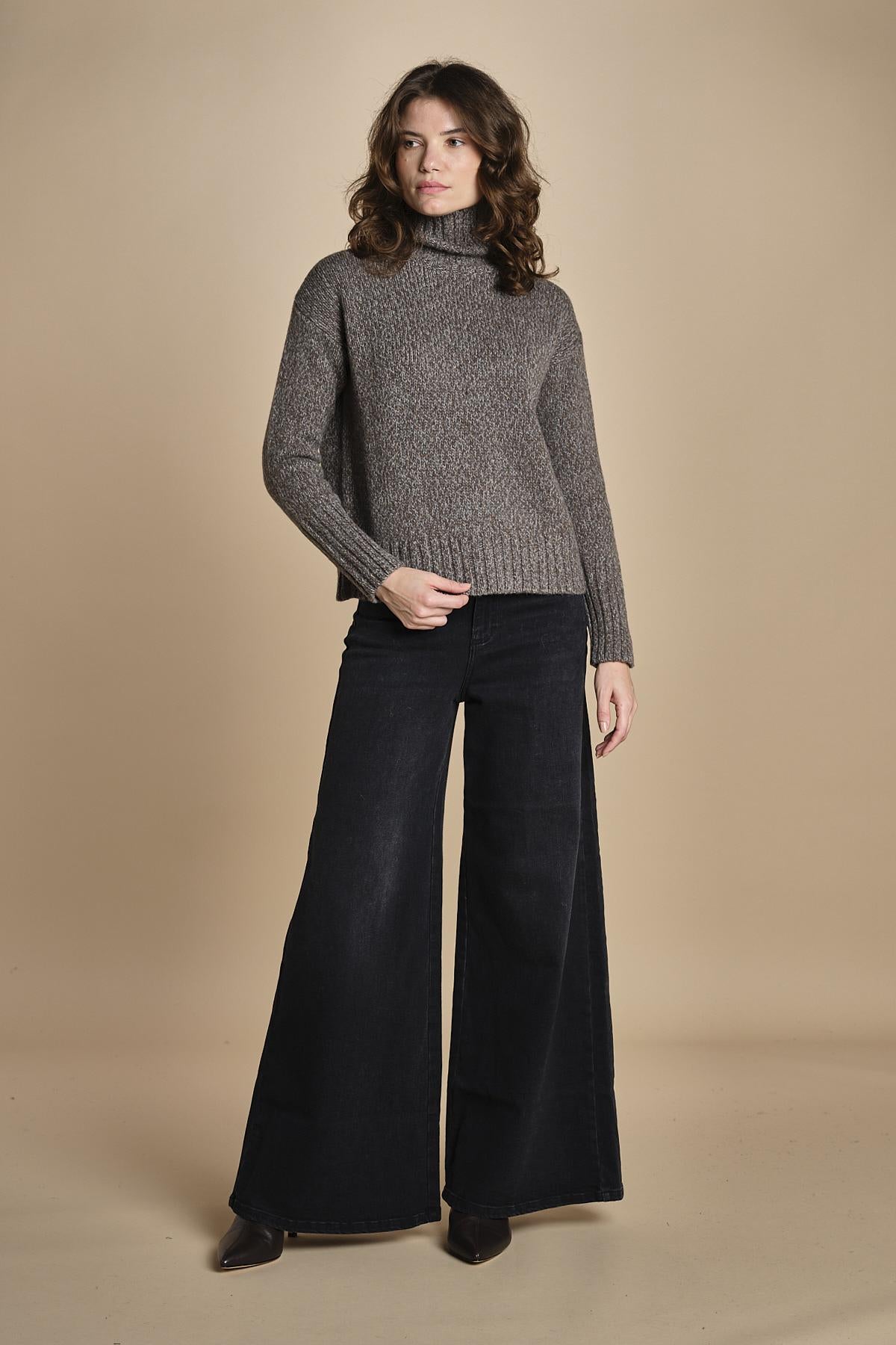 dolcevita in alpamerinos melange by milaura. La modella è alta 176 cm e indossa una taglia 38.50% BABY ALPACA 50% MERINO