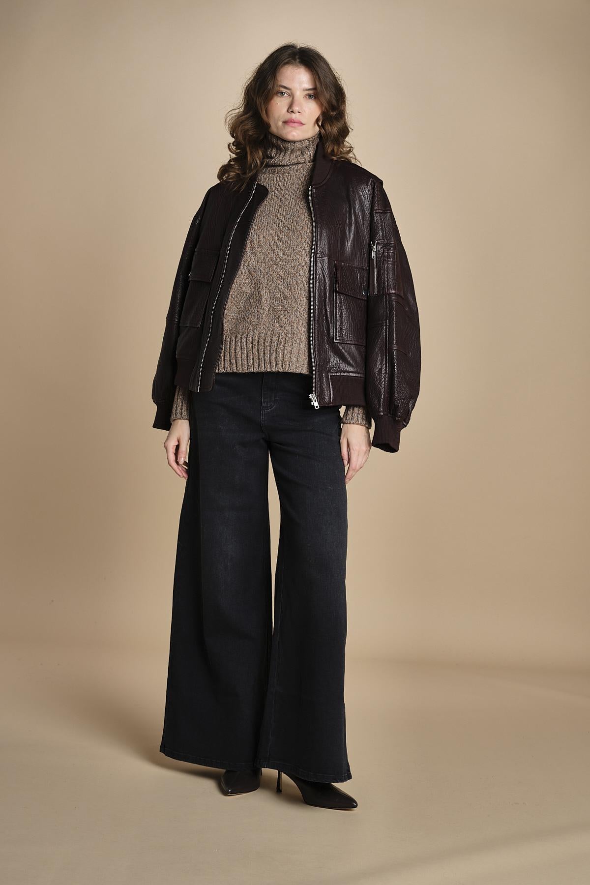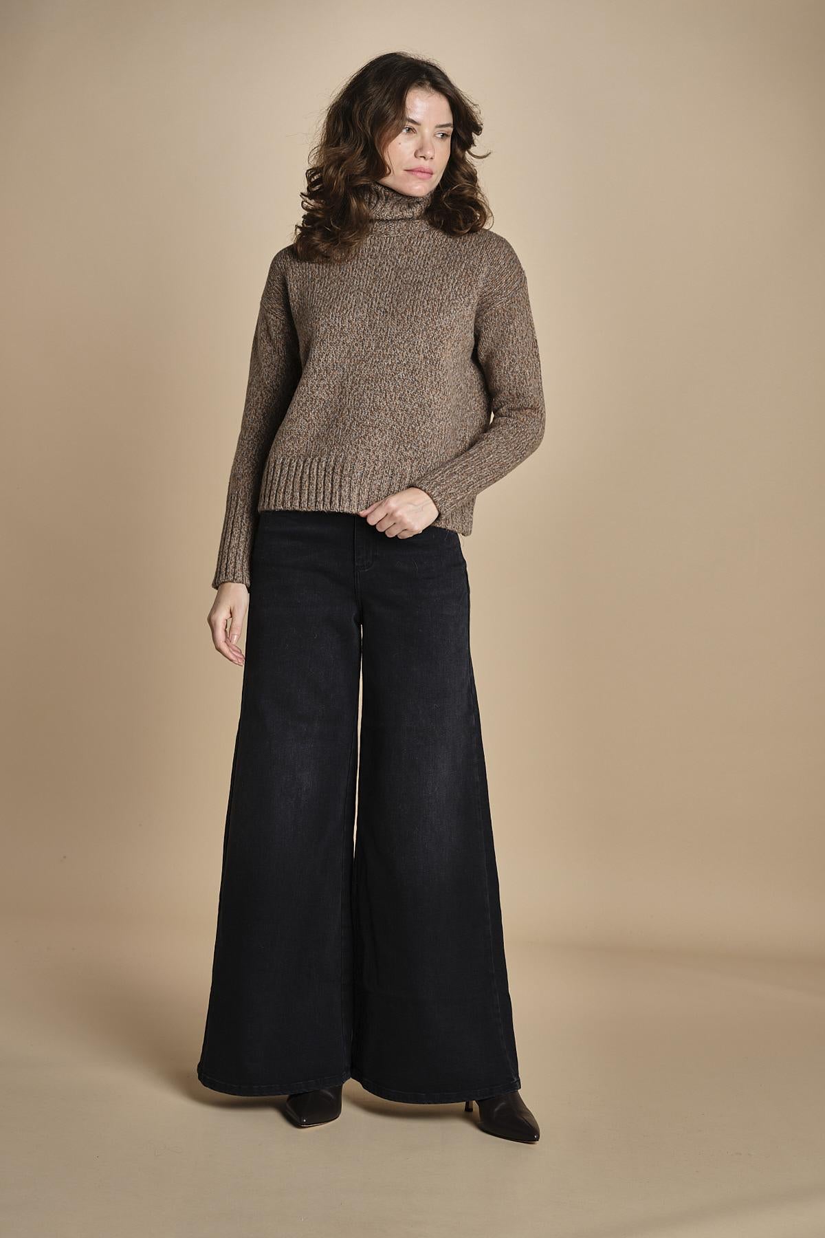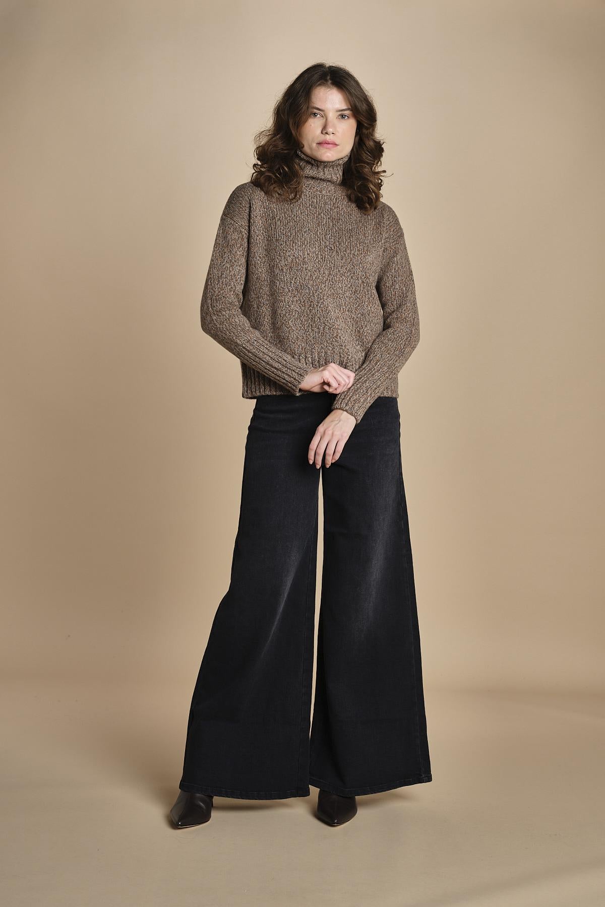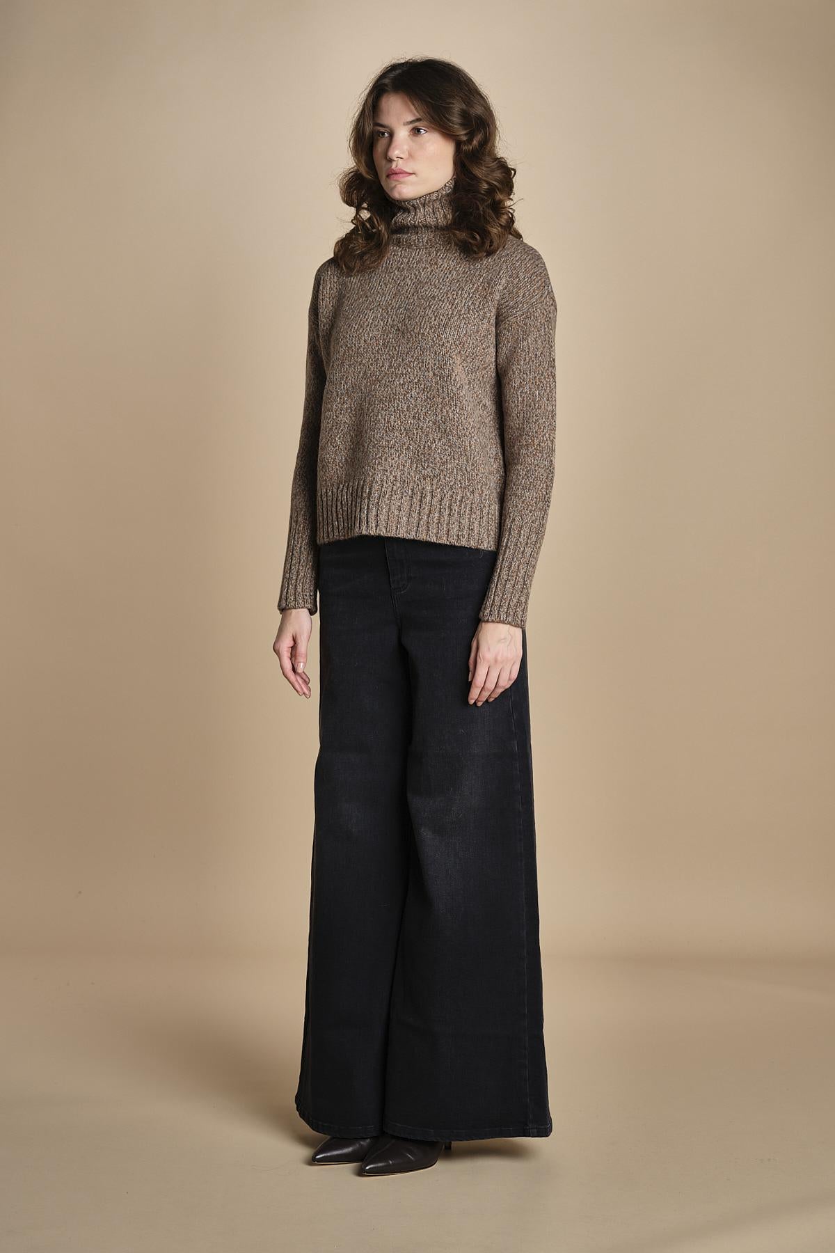 dolcevita in alpamerinos melange by milaura. La modella è alta 176 cm e indossa una taglia 38.50% BABY ALPACA 50% MERINO