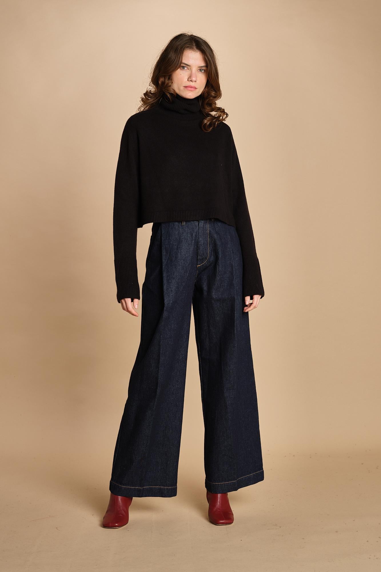 dolcevita over. La modella è alta 174 cm e indossa una taglia S. 100% cachemire
