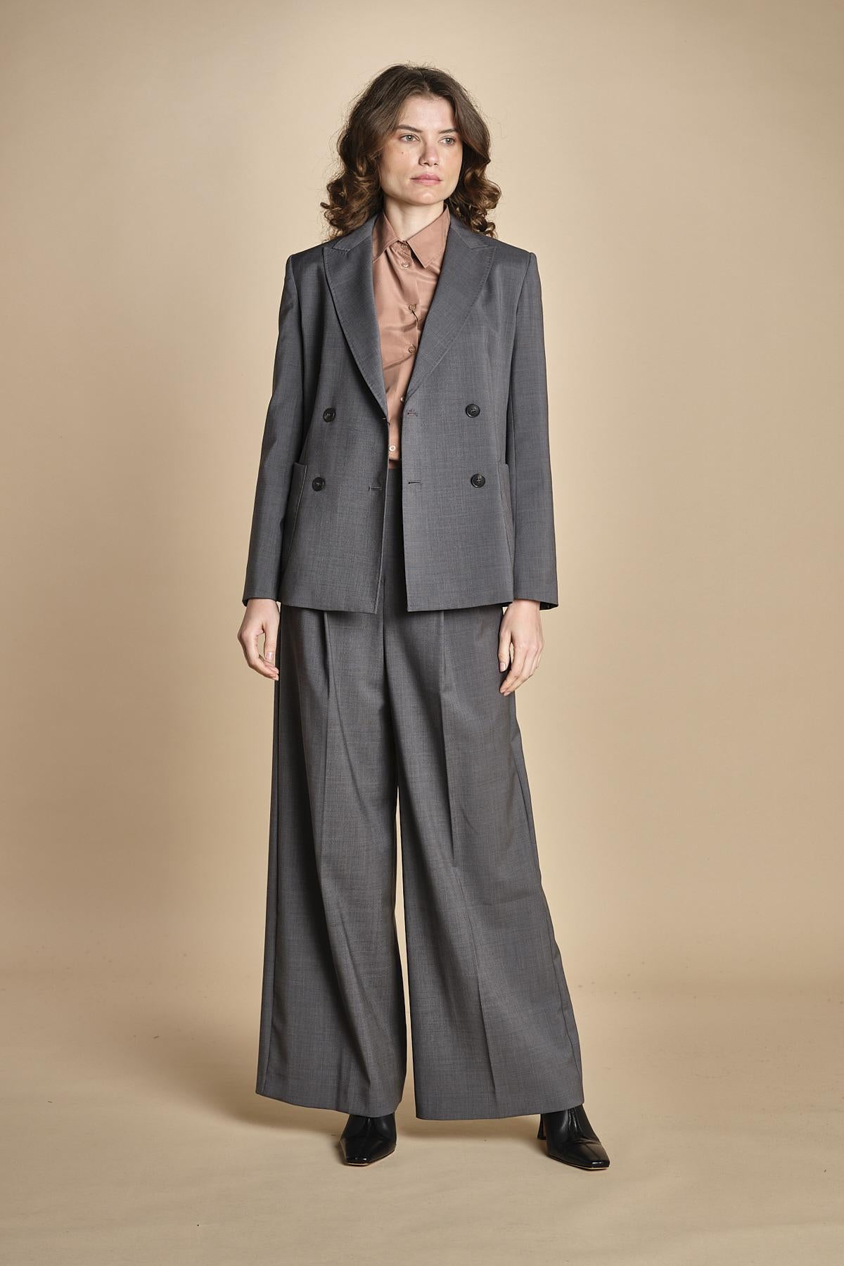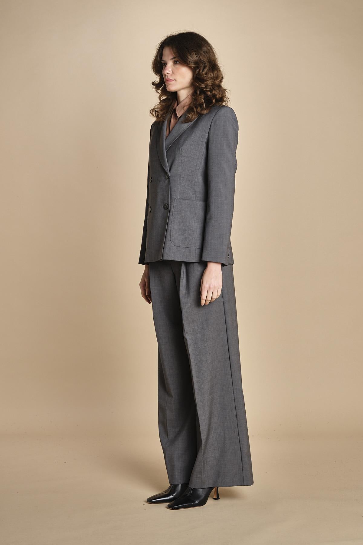 doppiopetto tela lana. La modella è alta 176 cm e indossa una taglia 40. 100% lana