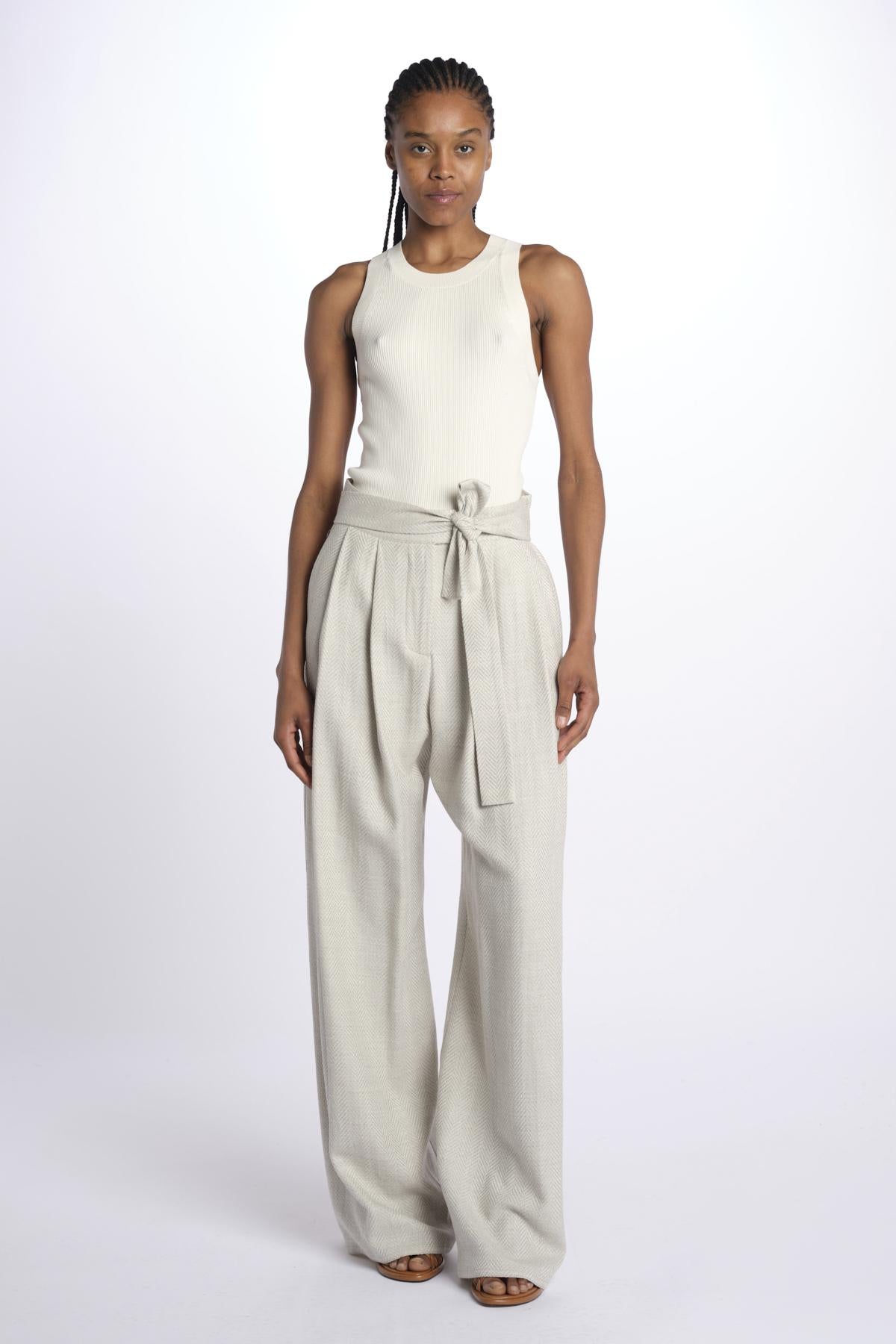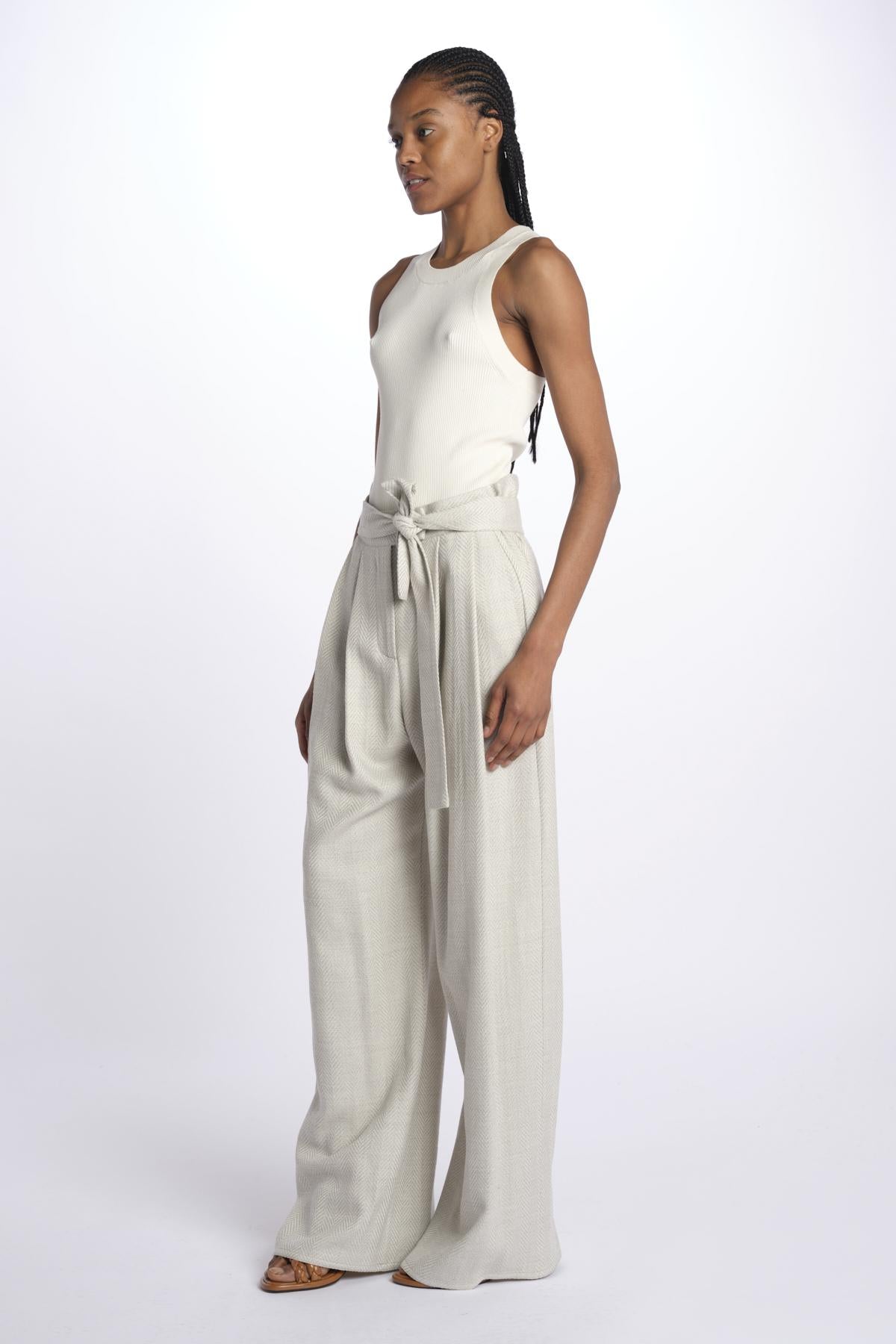 2310 pantaloni wide leg con cintura spigato