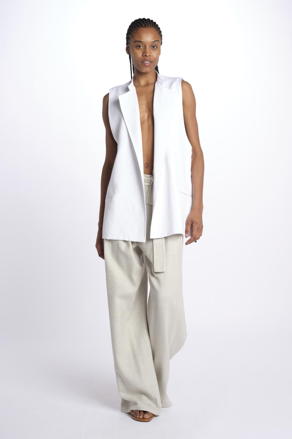 2310 pantaloni wide leg con cintura spigato by dusan. Composizione: 100% lino.