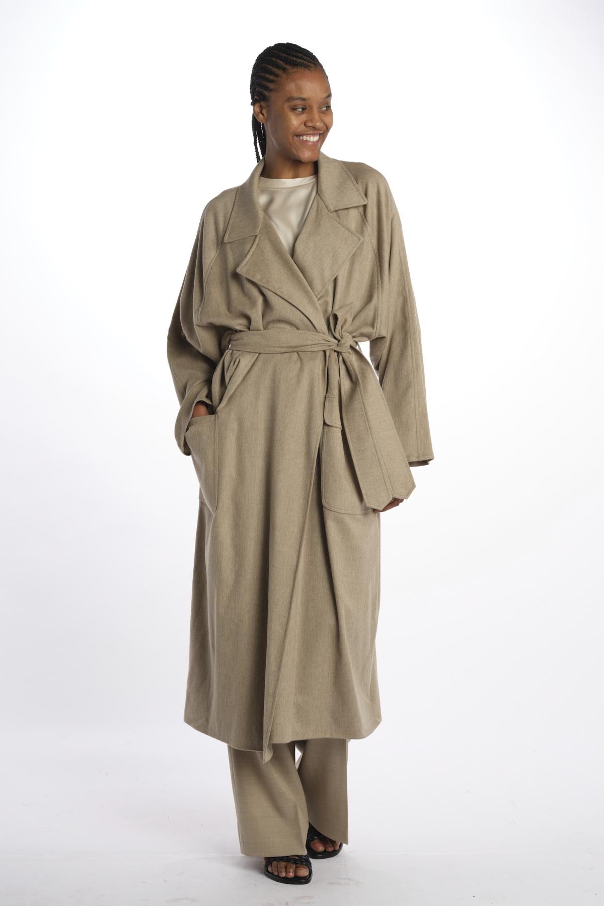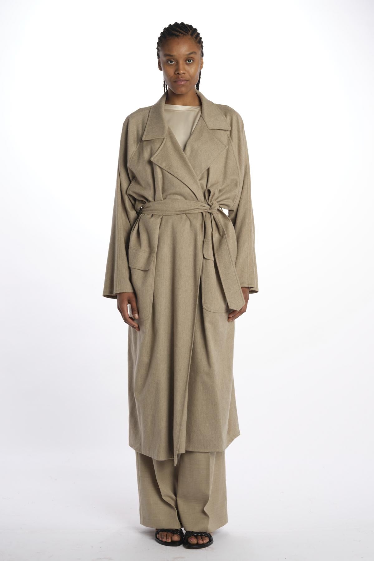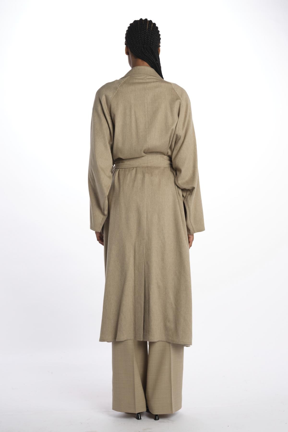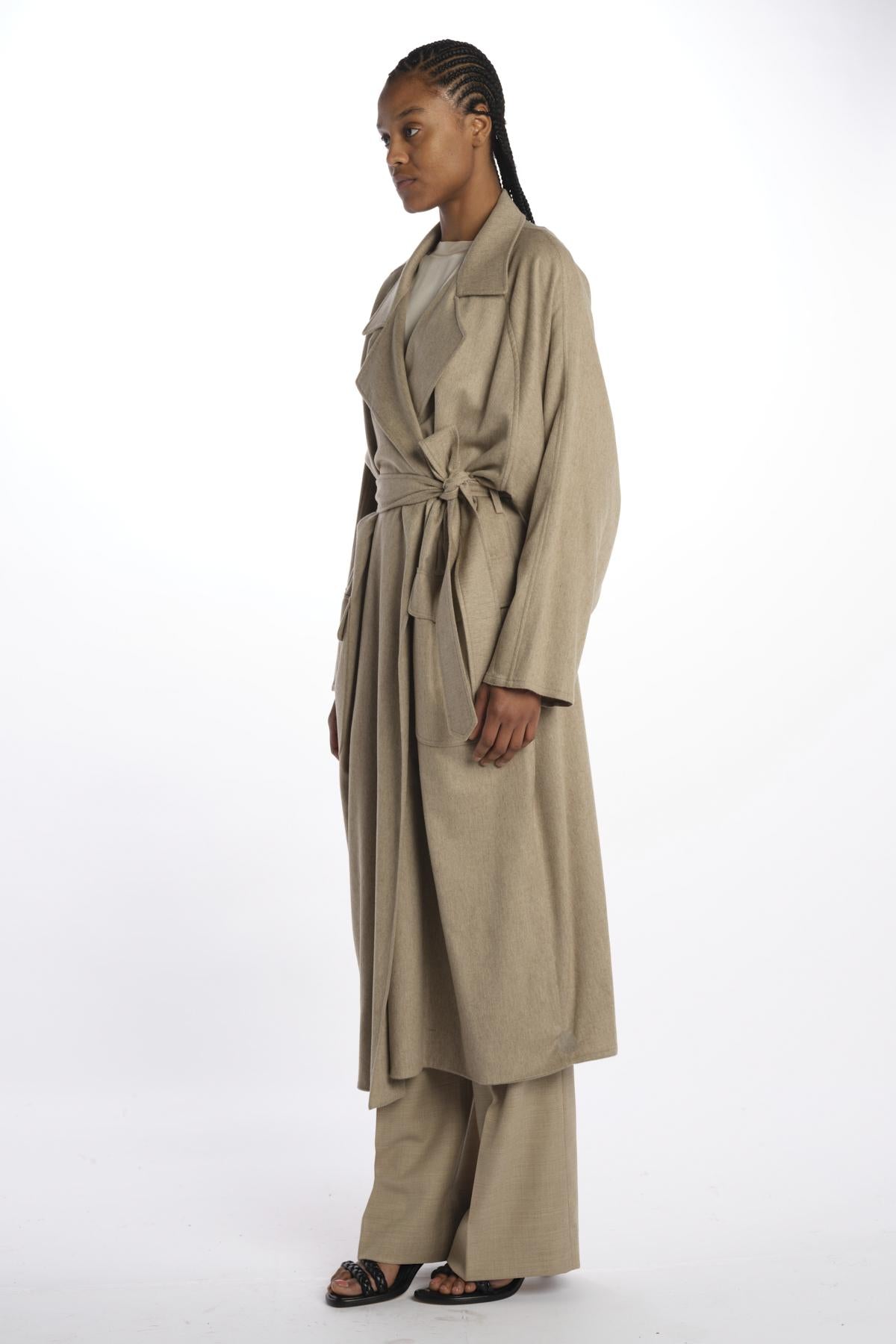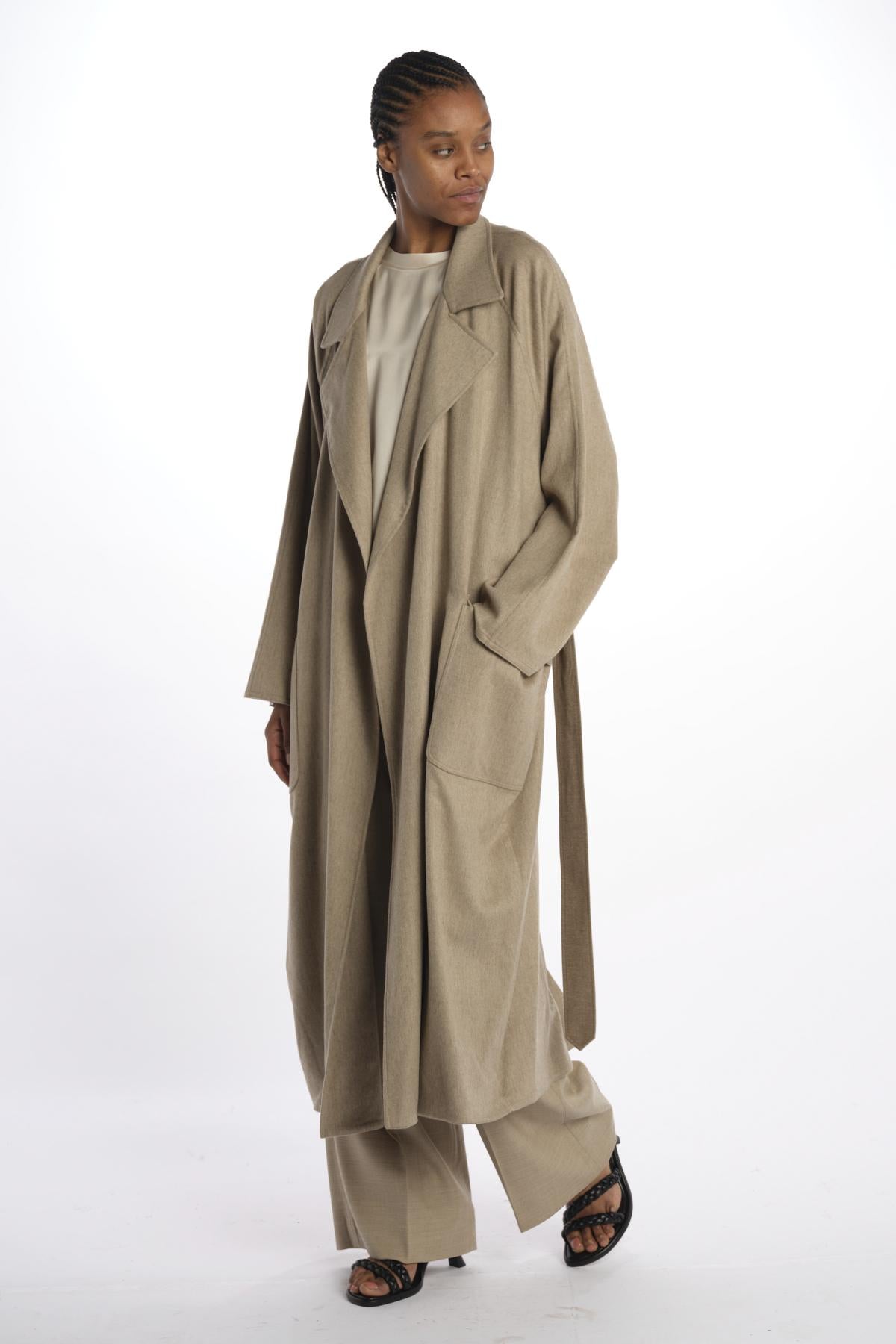 Spolverino cachemire by dusan. La modella è alta 174 cm e indossa una taglia unica. Composizione: 100% cachemire.