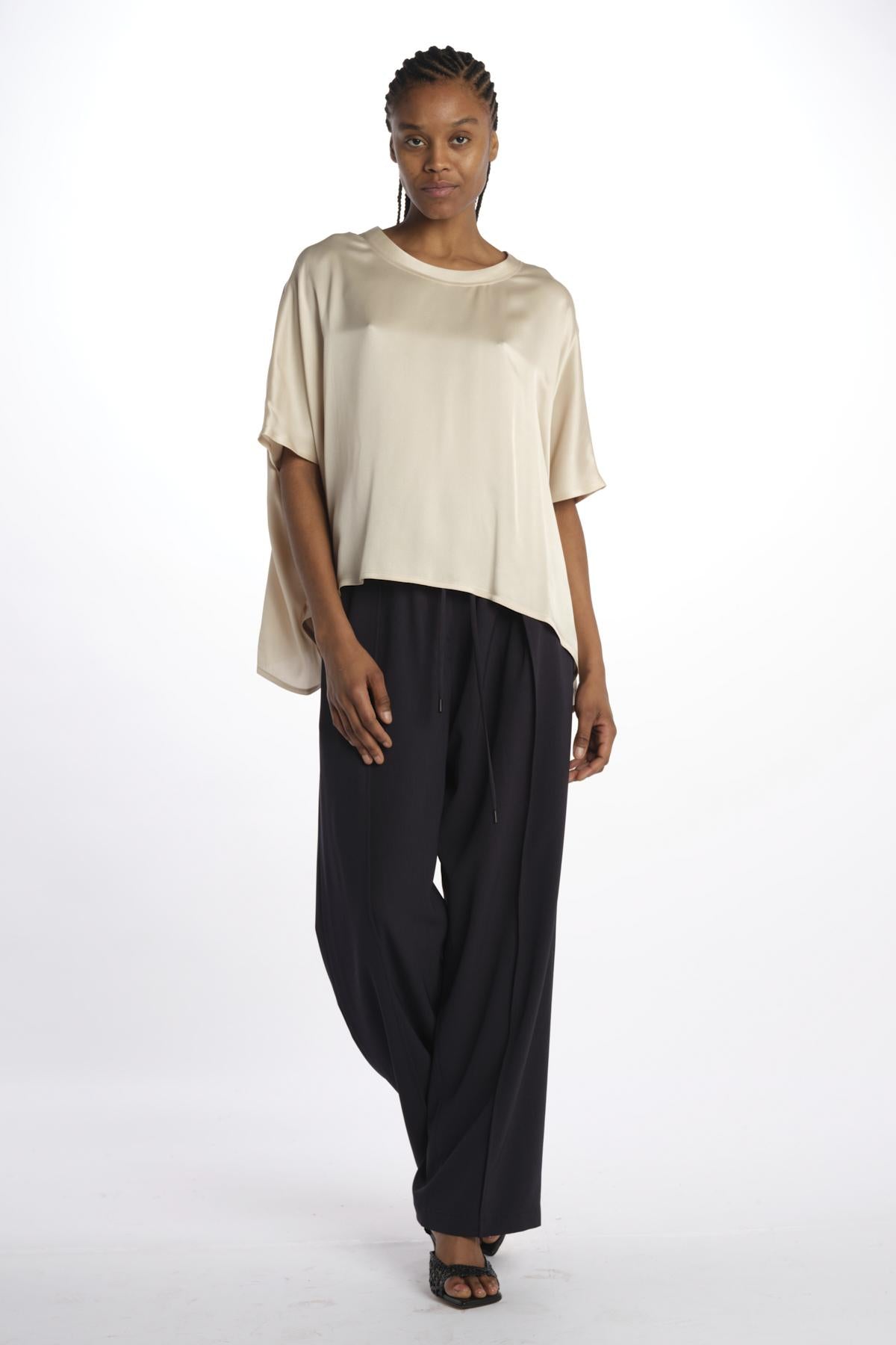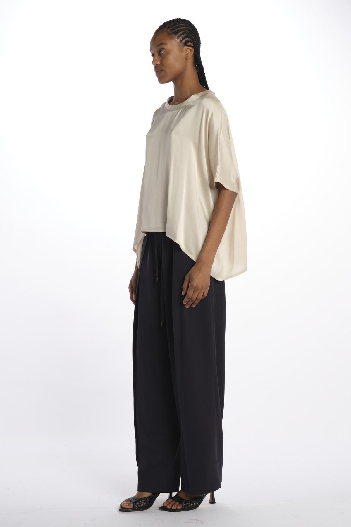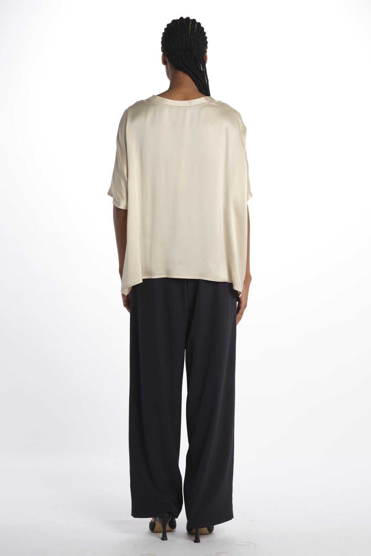 T-shirt raso by dusan. La modella è alta 174 cm e indossa una taglia unica. Composizione: 100% seta.