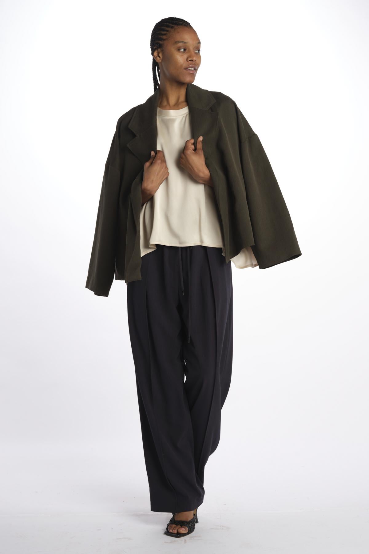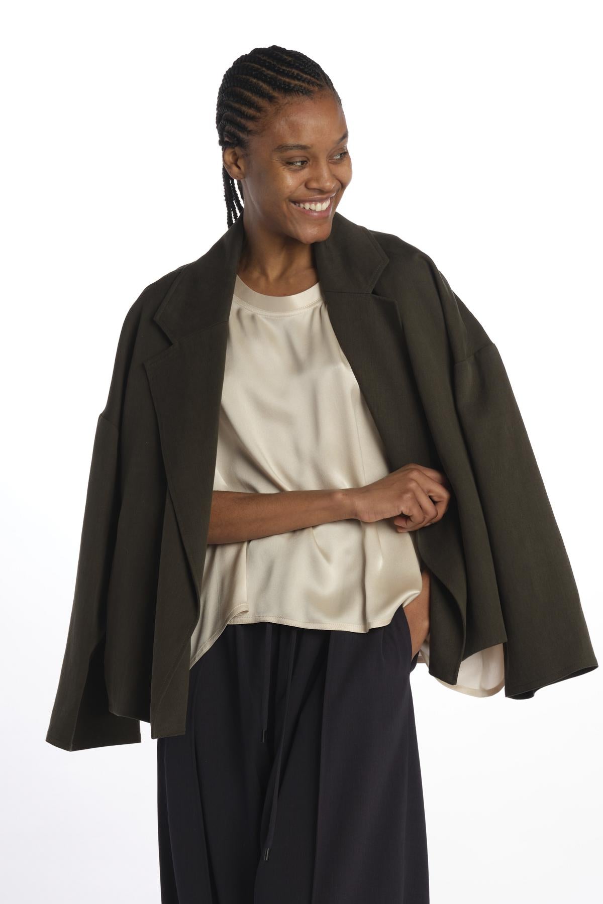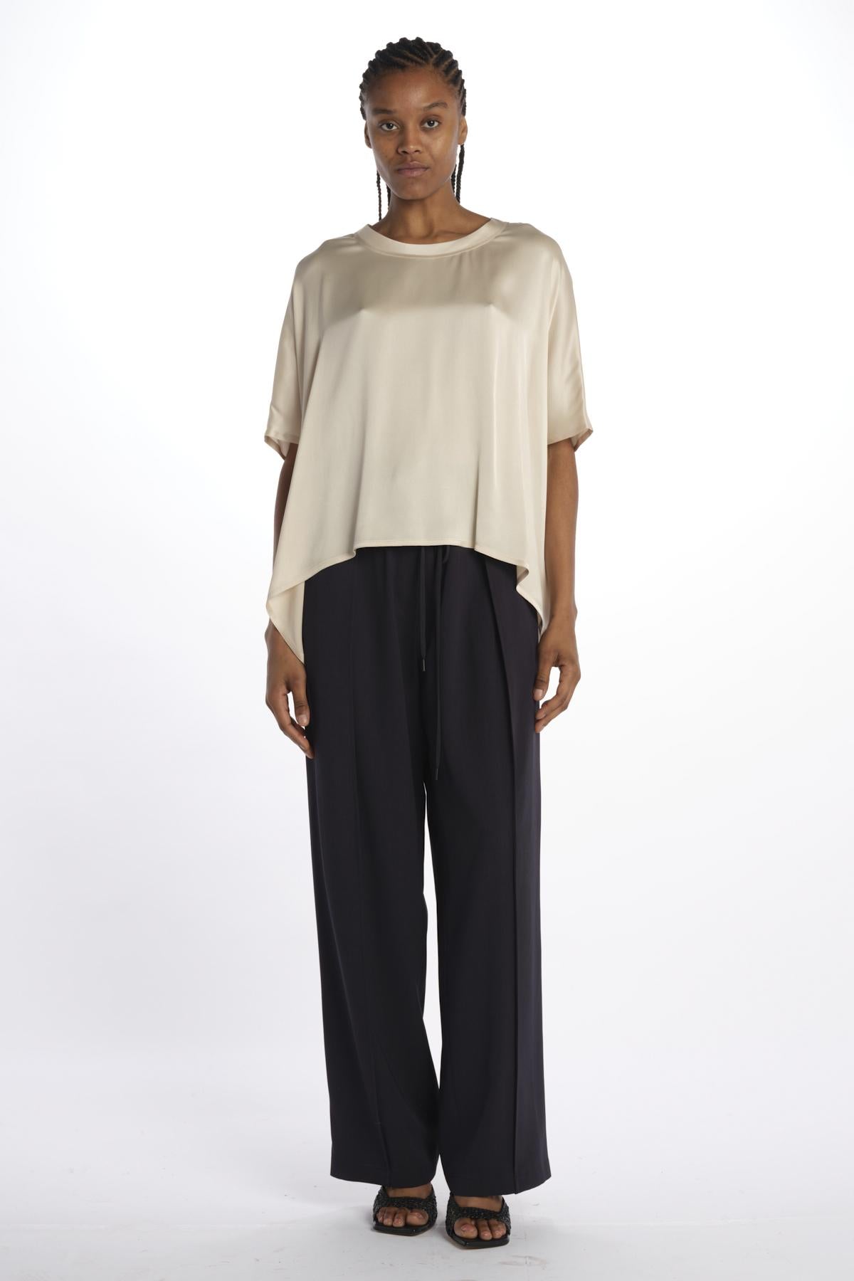 T-shirt raso by dusan. La modella è alta 174 cm e indossa una taglia unica. Composizione: 100% seta.