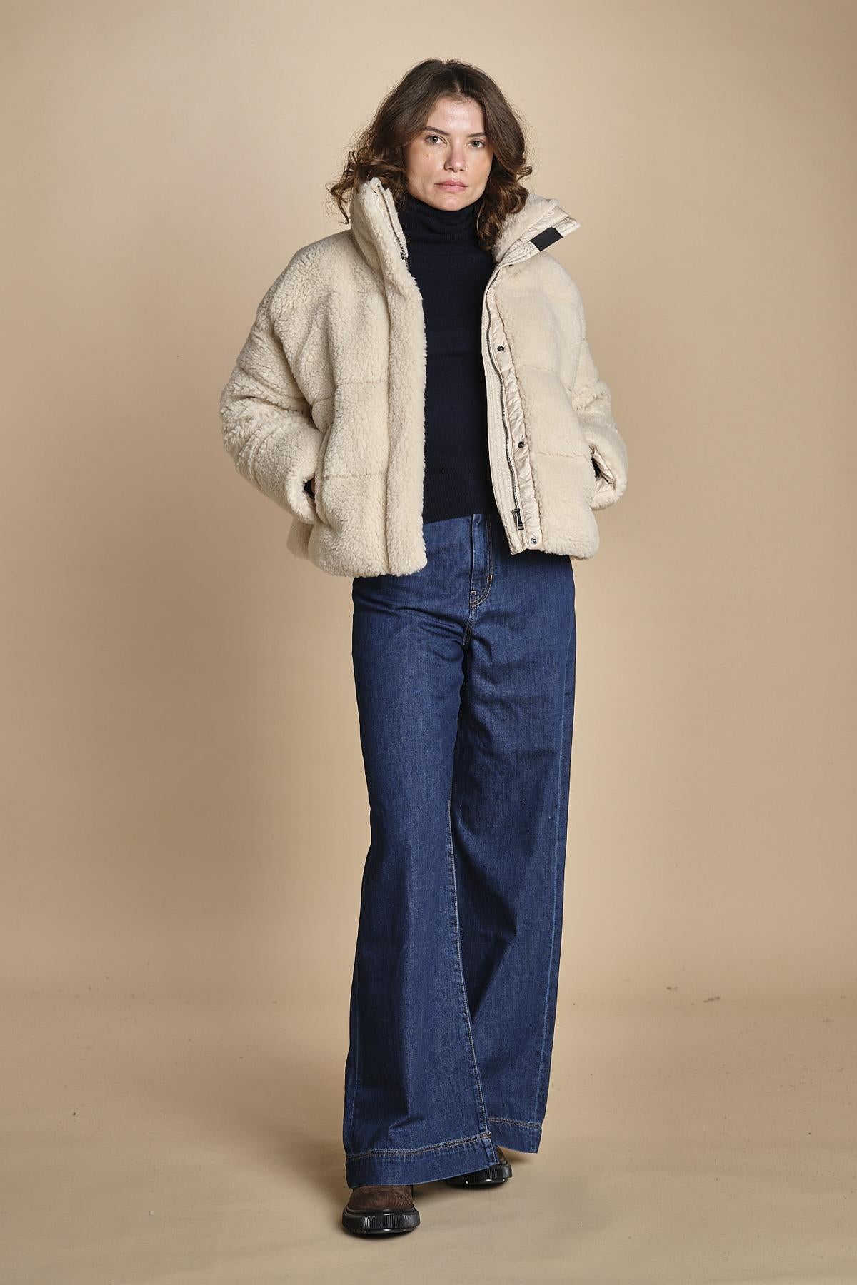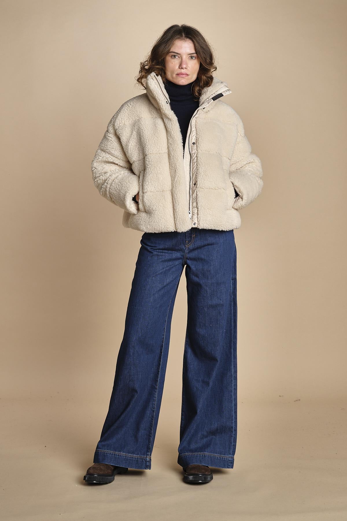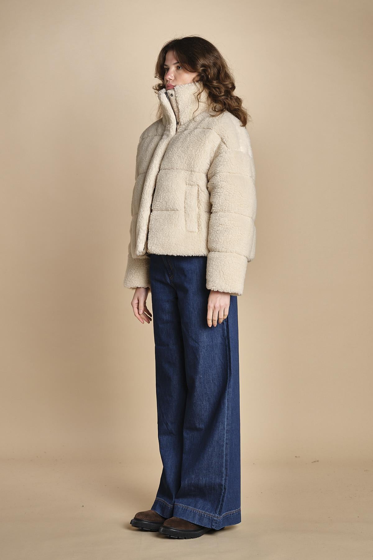 duvet riccio.La modella è alta 176 cm e indossa una taglia 40. 67% poliestere 33% lana