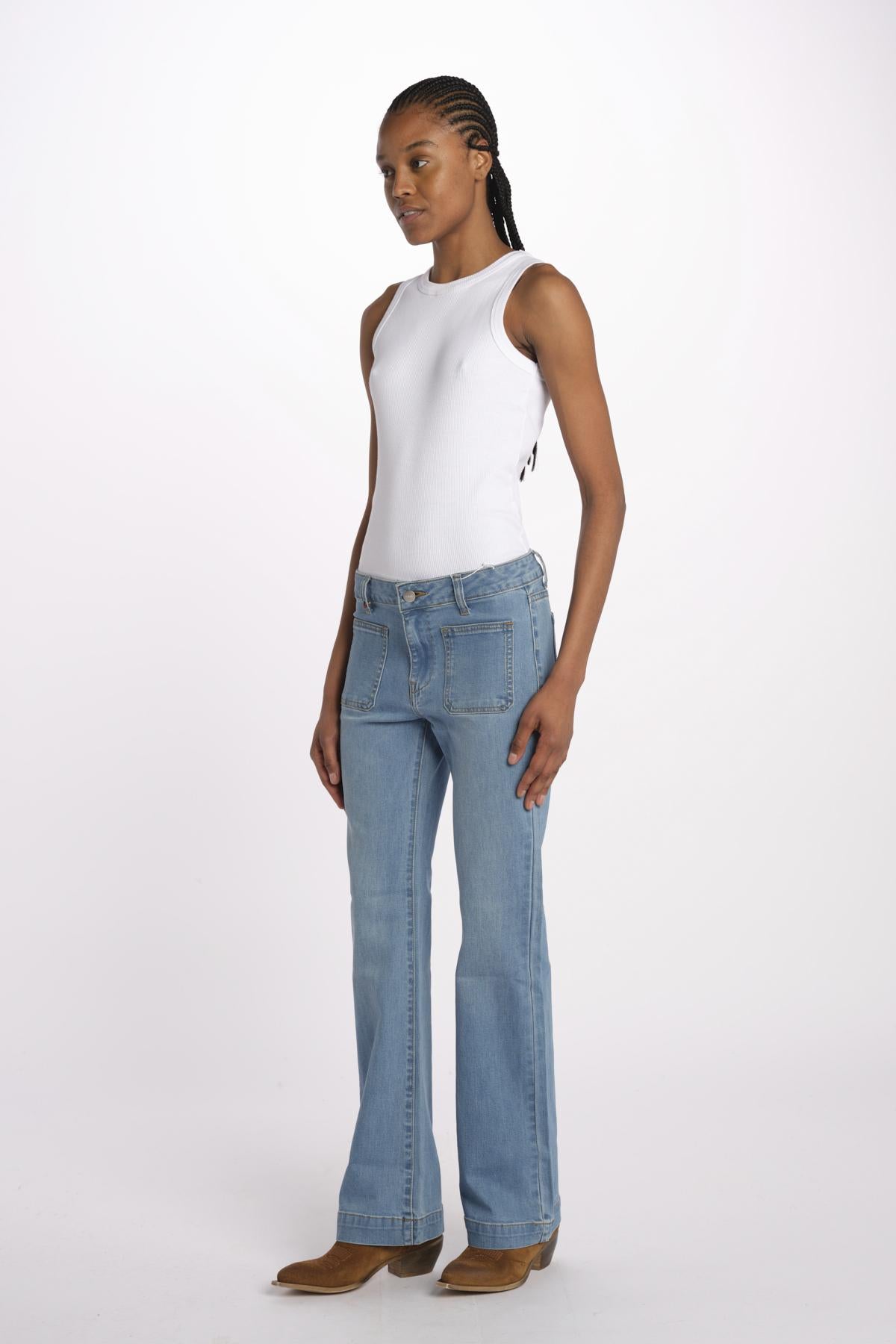 BELLA jeans bootcut hr 09 bc by fam. La modella è alta 174 cm e indossa una taglia 28. Composizione: 98,5% cotone, 1,5% elastane.