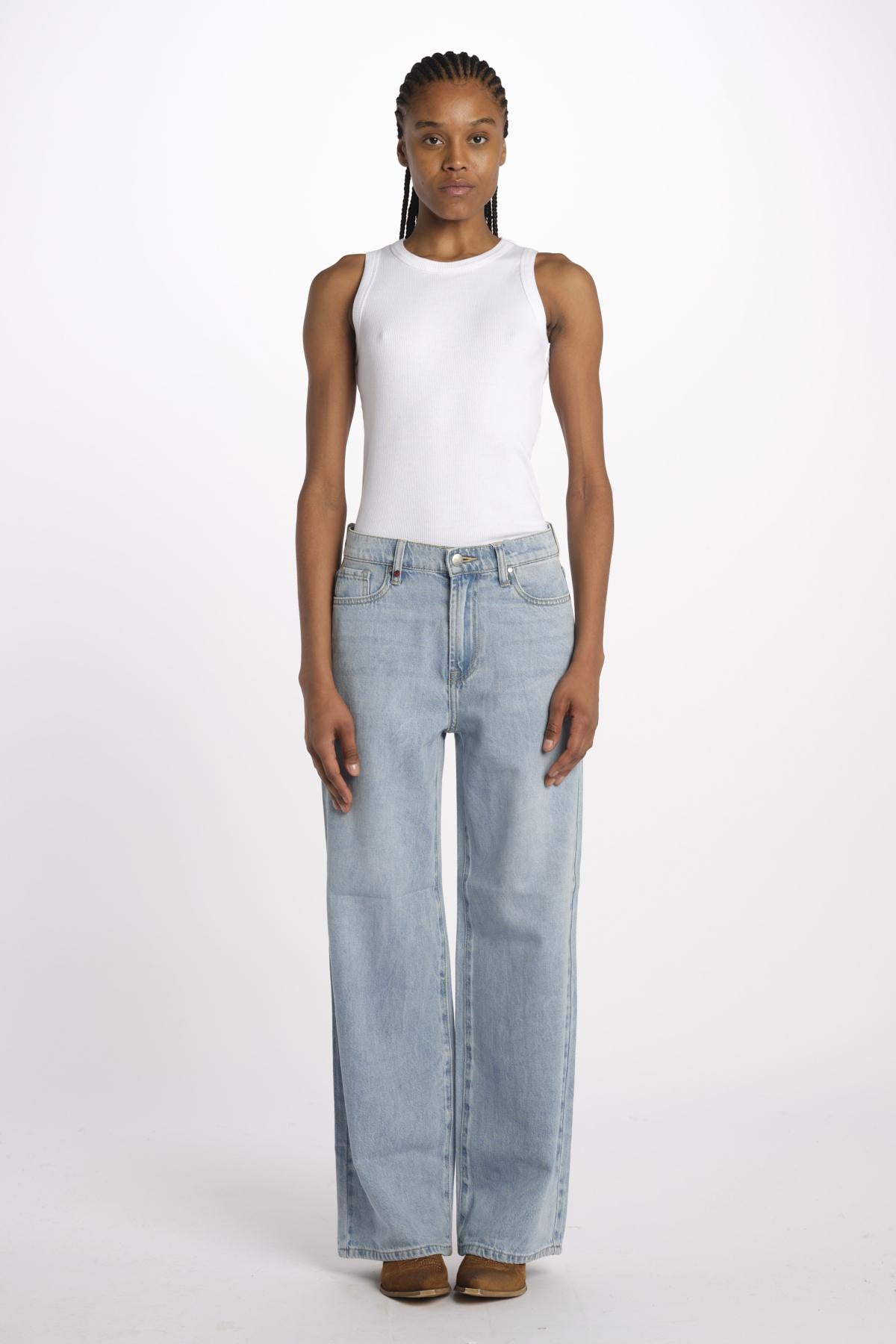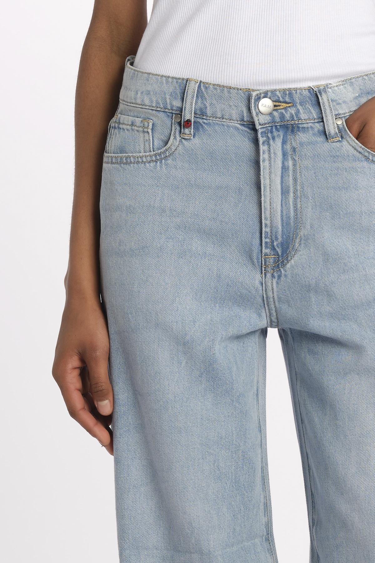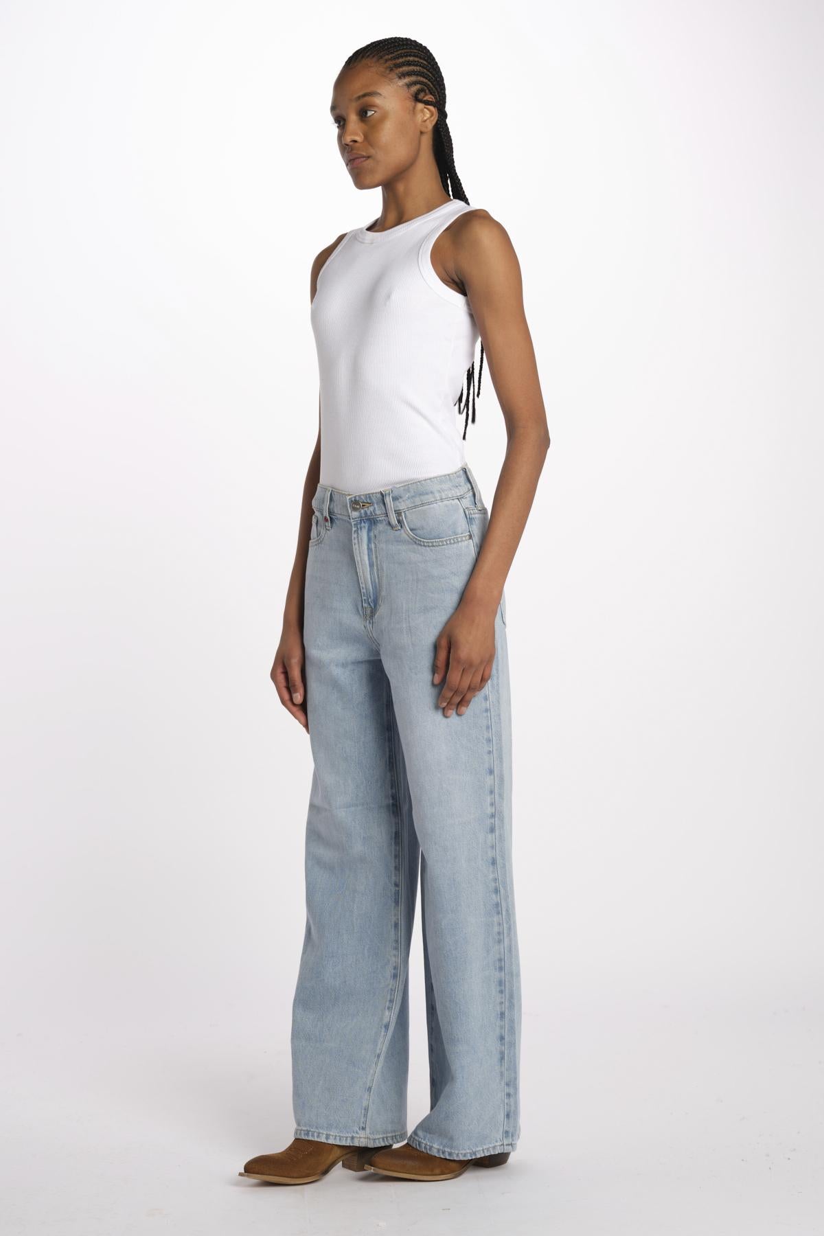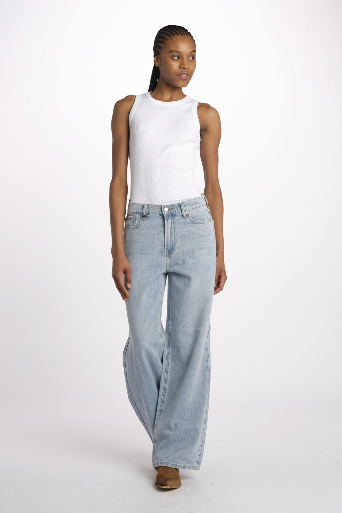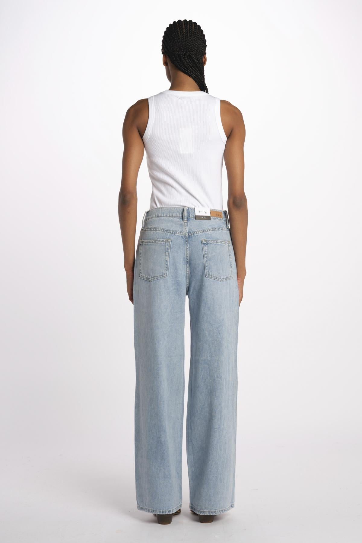 FLORA denim large fl 18 l by fam. La modella è alta 174 cm e indossa una taglia S. Composizione: 85% cotone, 15% poliestere.