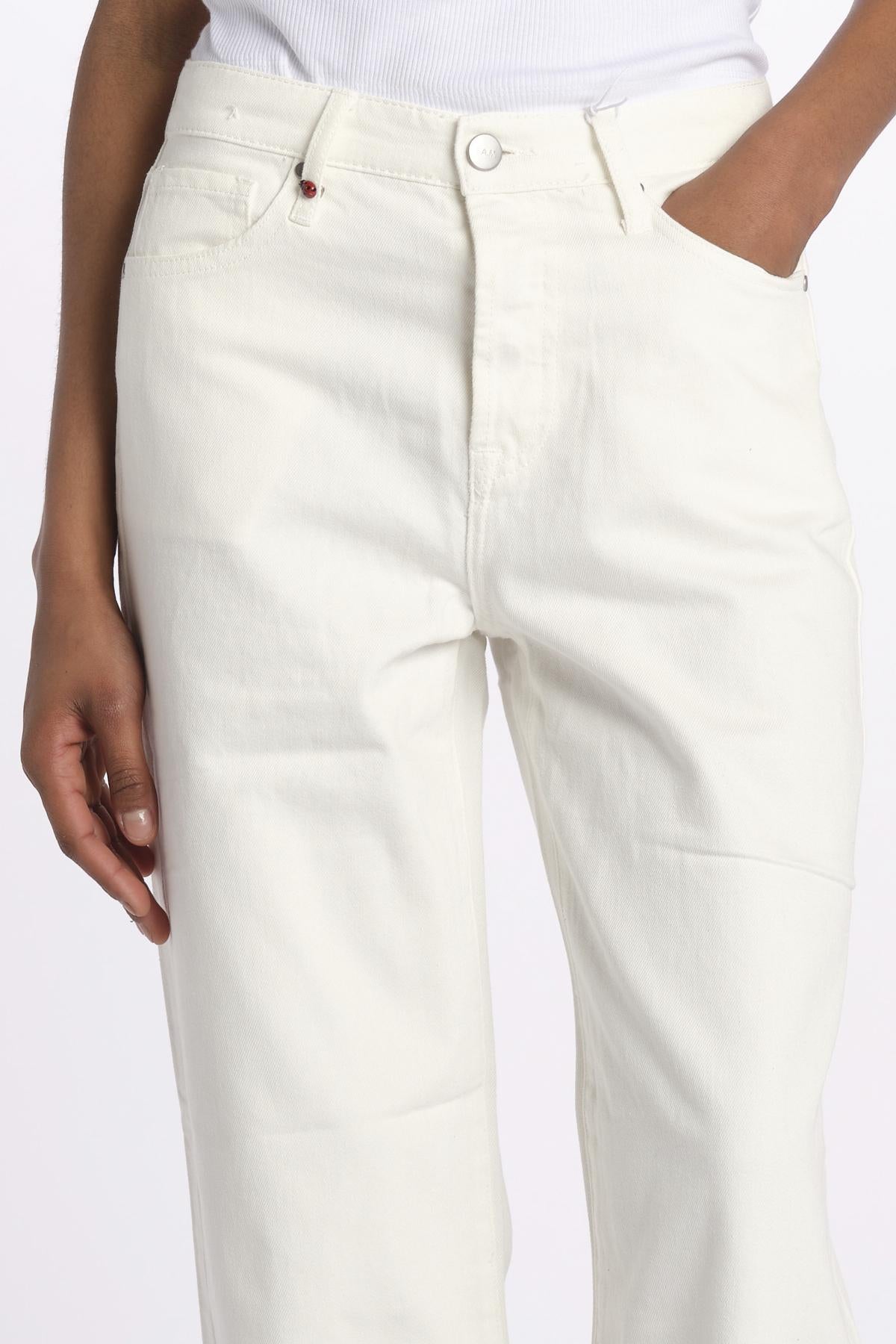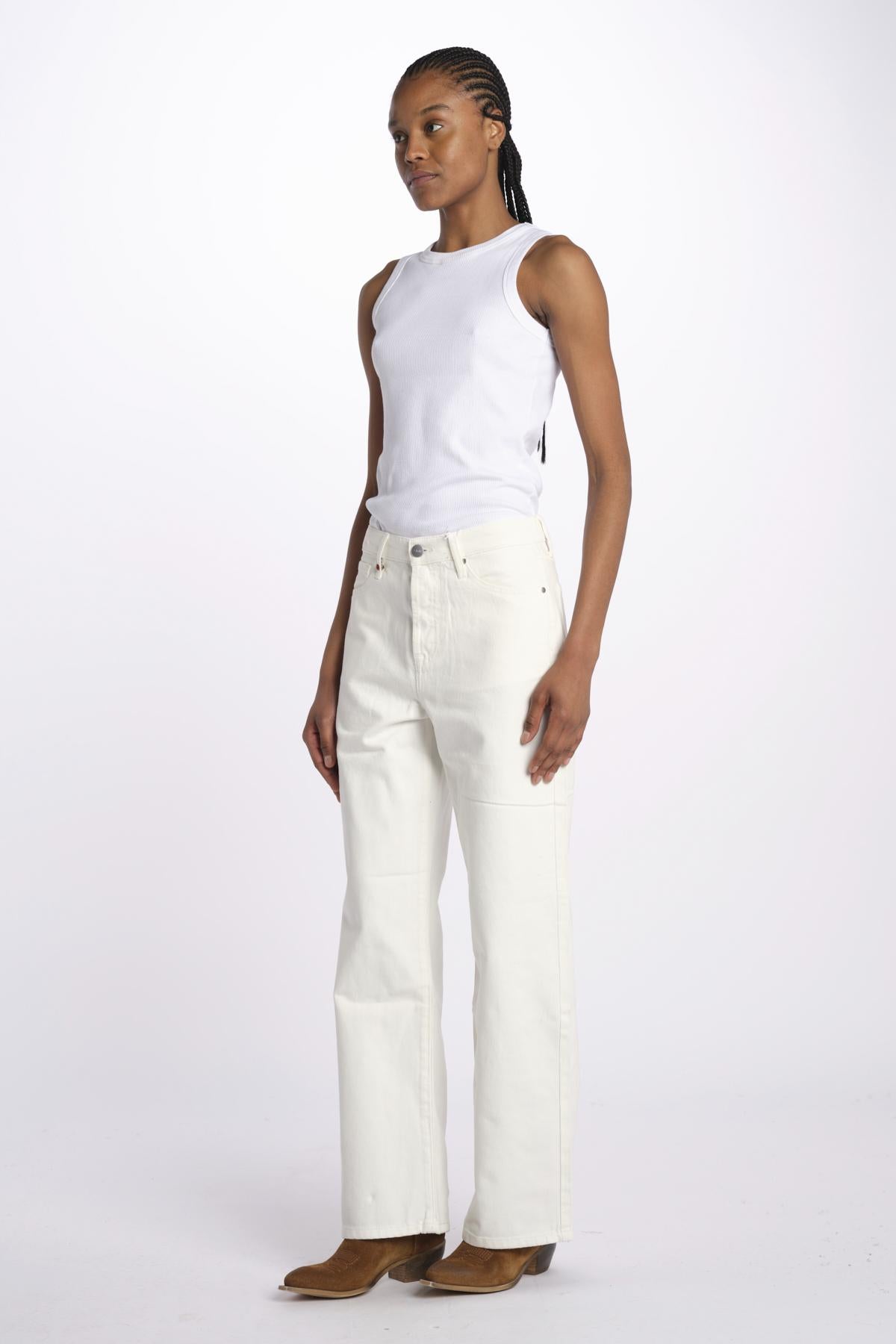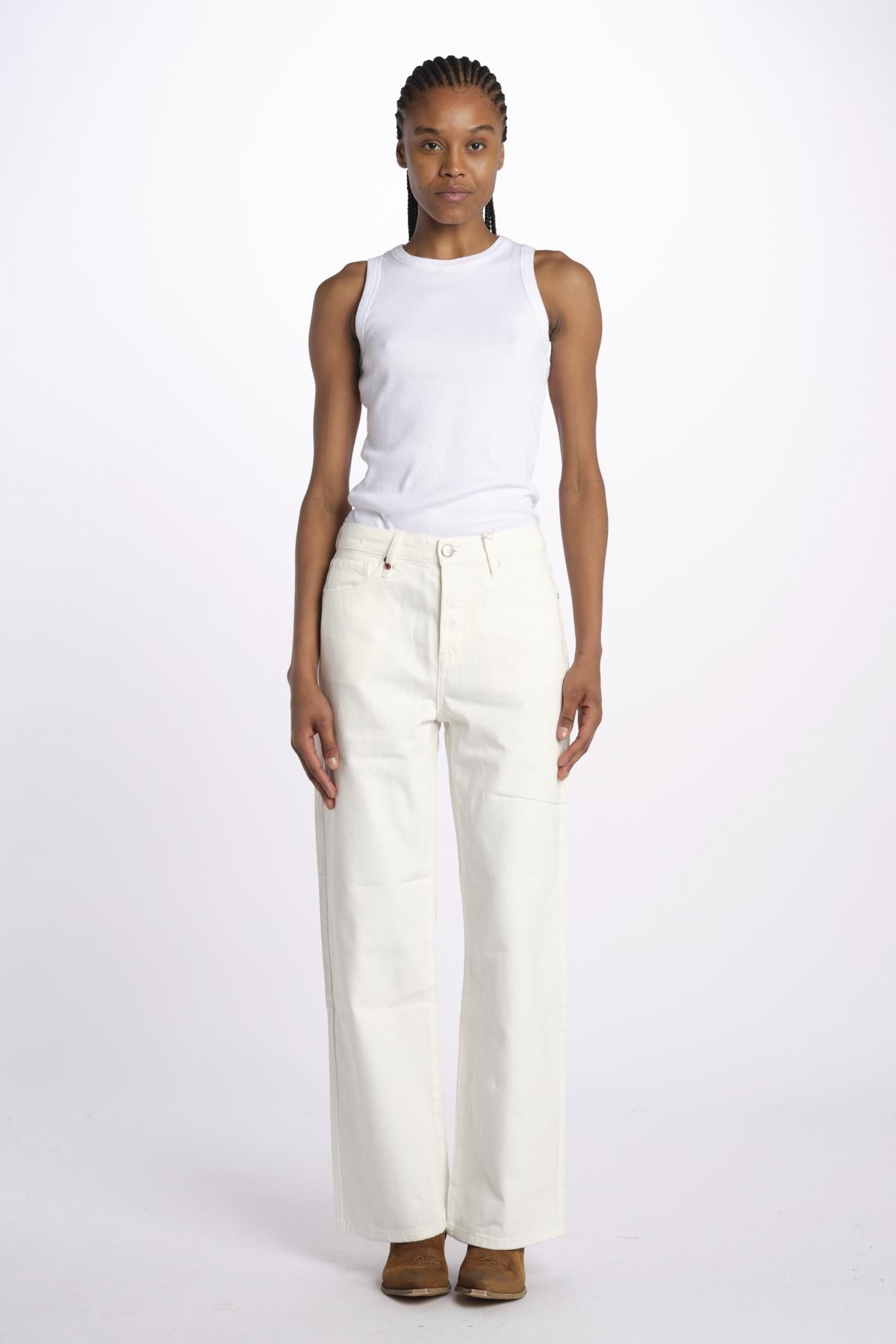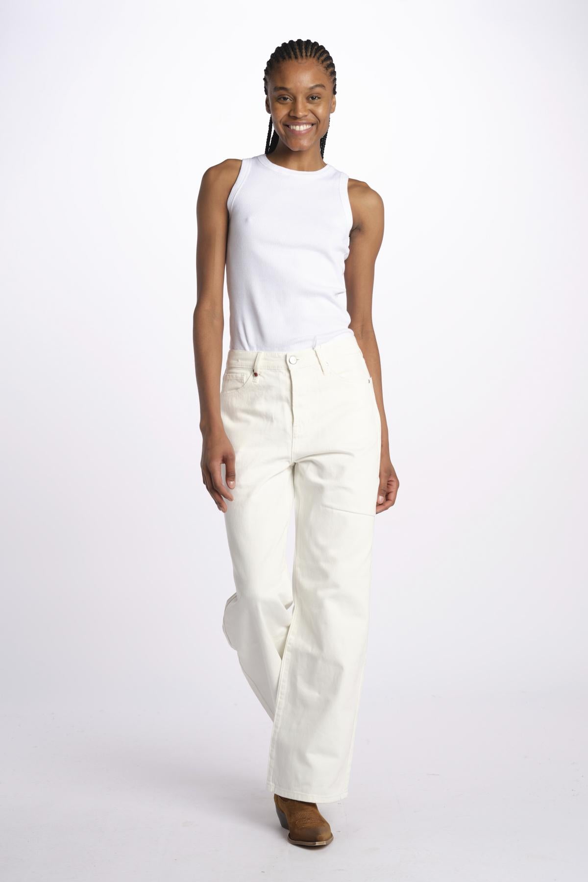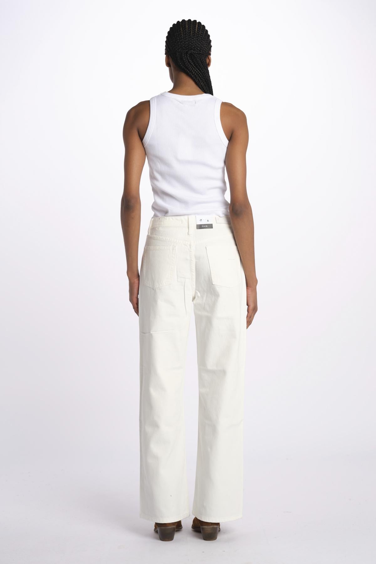 FOREST jeans wide FL 96 W by fam. La modella è alta 174 cm e indossa una taglia S. Composizione: 100% cotone.