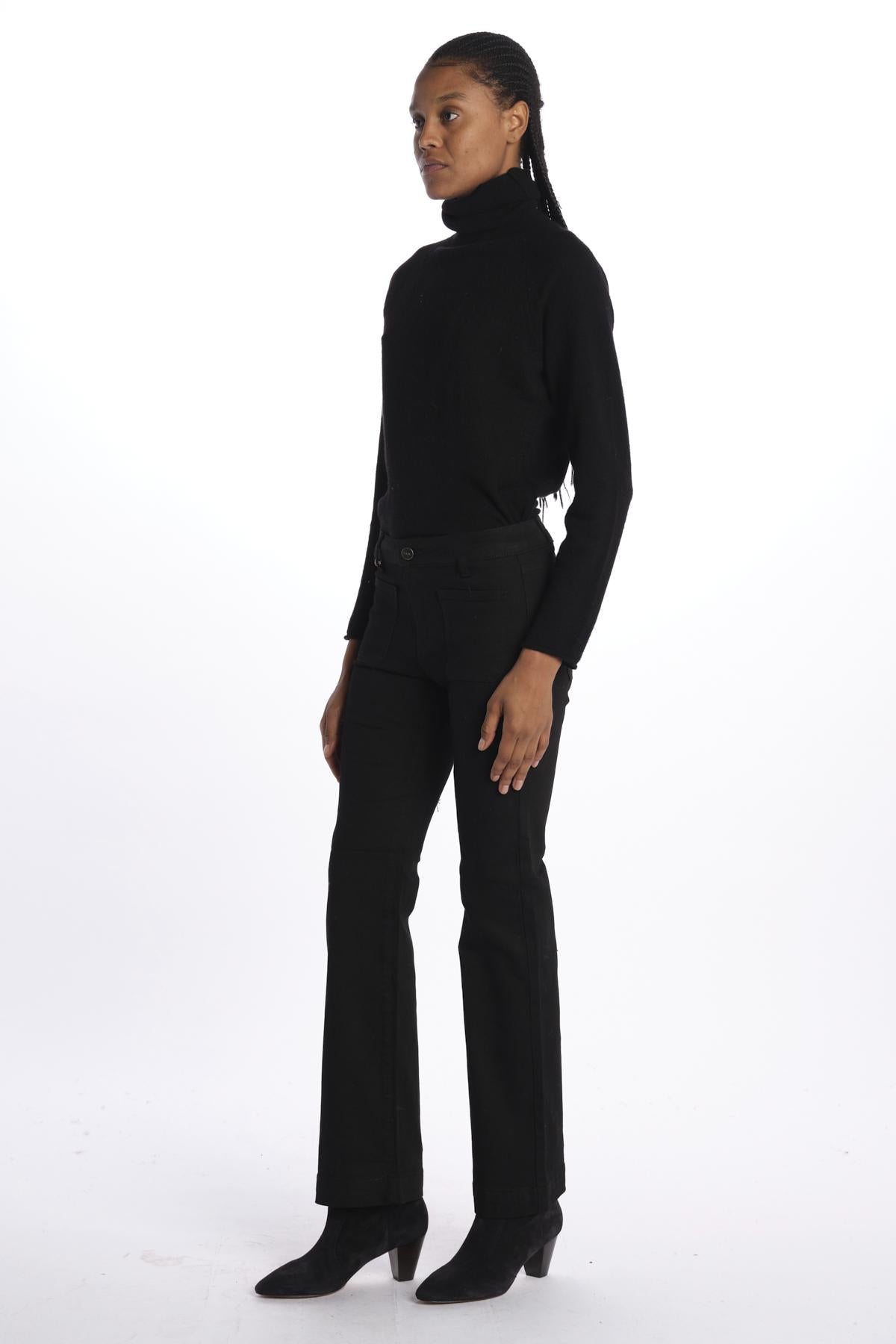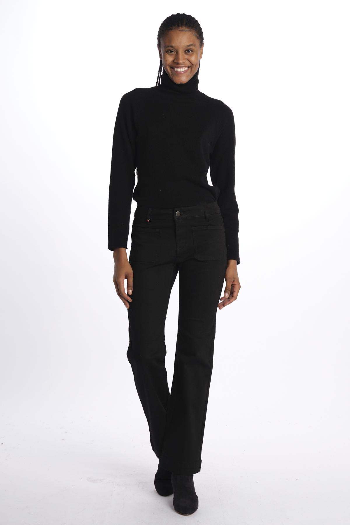BELLA JEANS BOOT CUT by fam. La modella è alta 174 cm e indossa una taglia 26. Composizione: 99% cotone, 1% elastane.