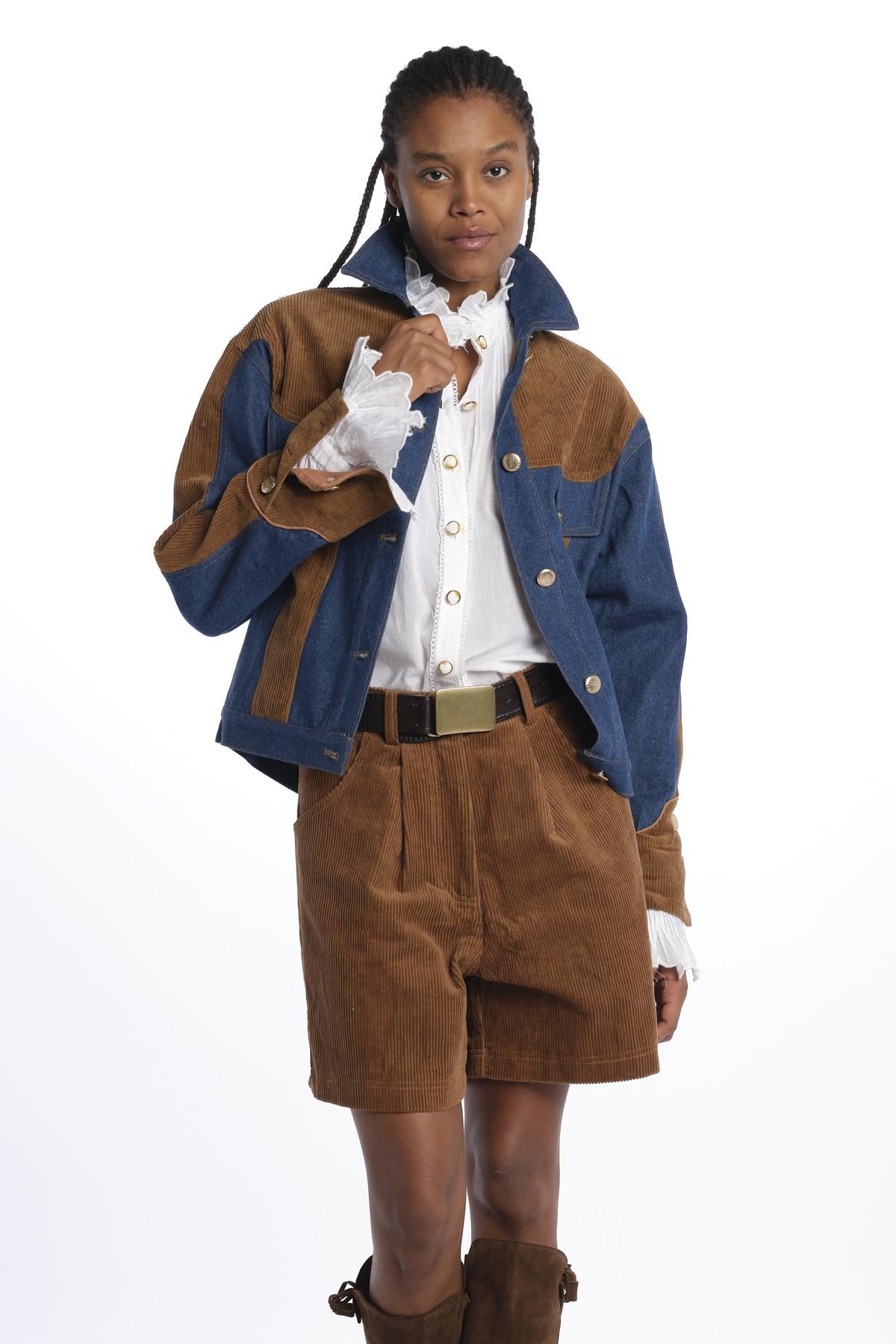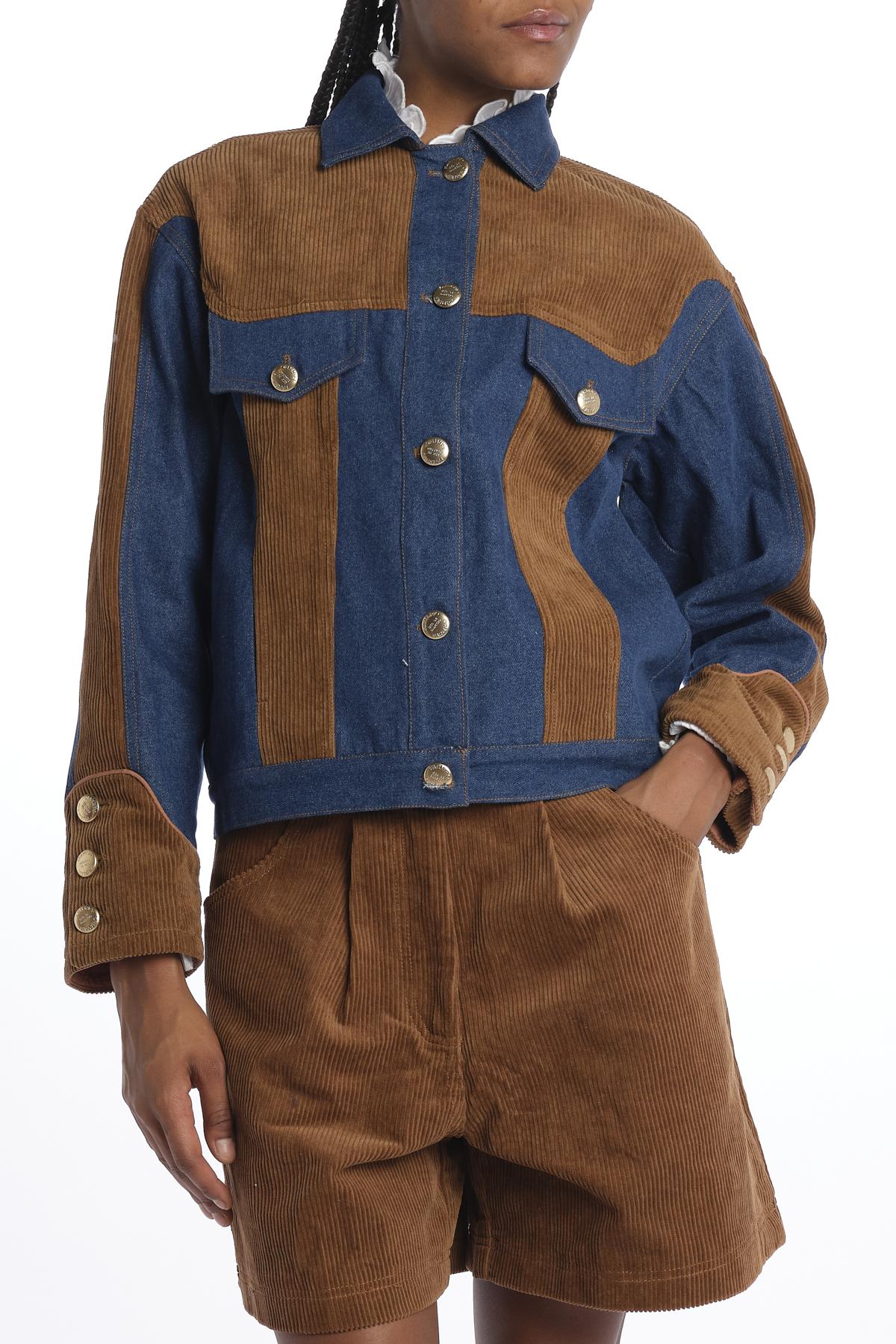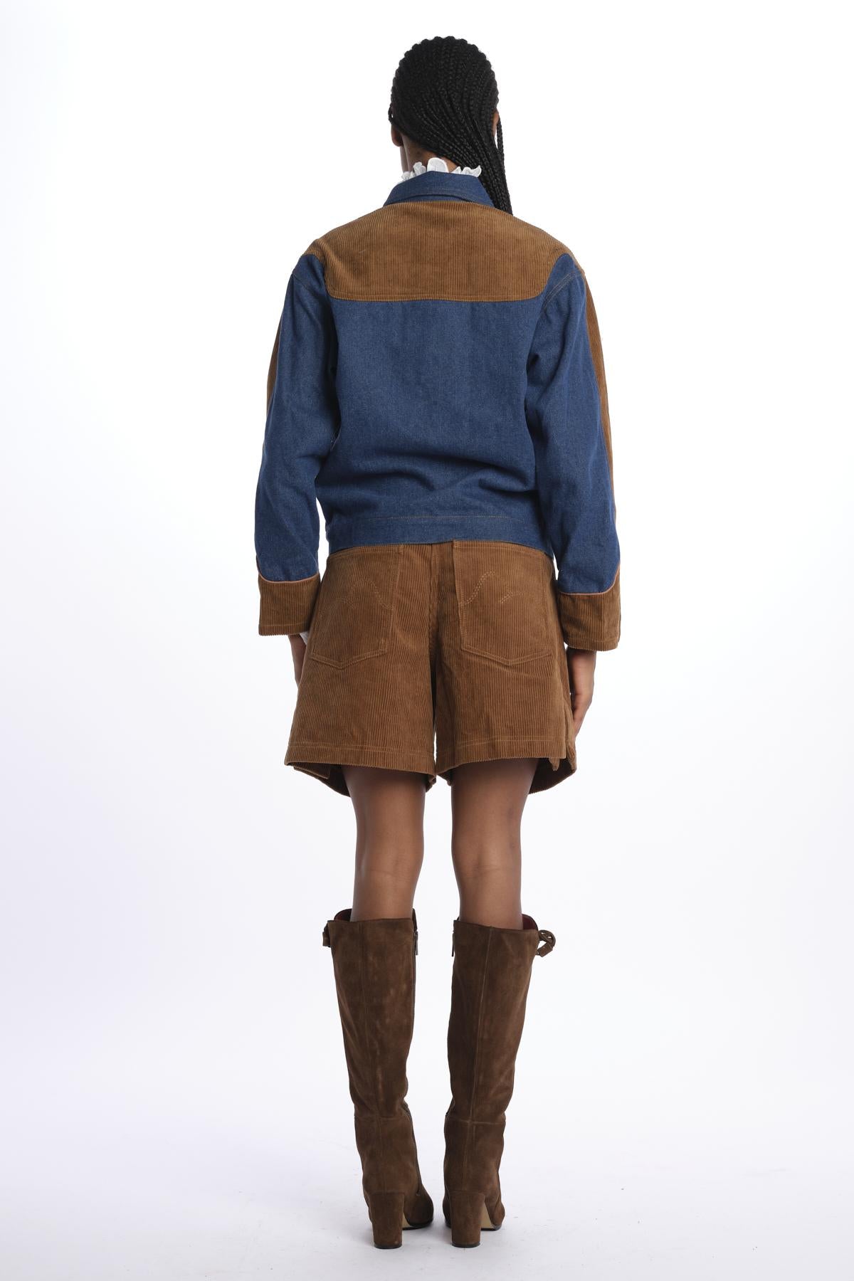 Giacca denim + velluto by farm rio. La modella è alta 174 cm e indossa una taglia XS. Composizione: 100% cotone.