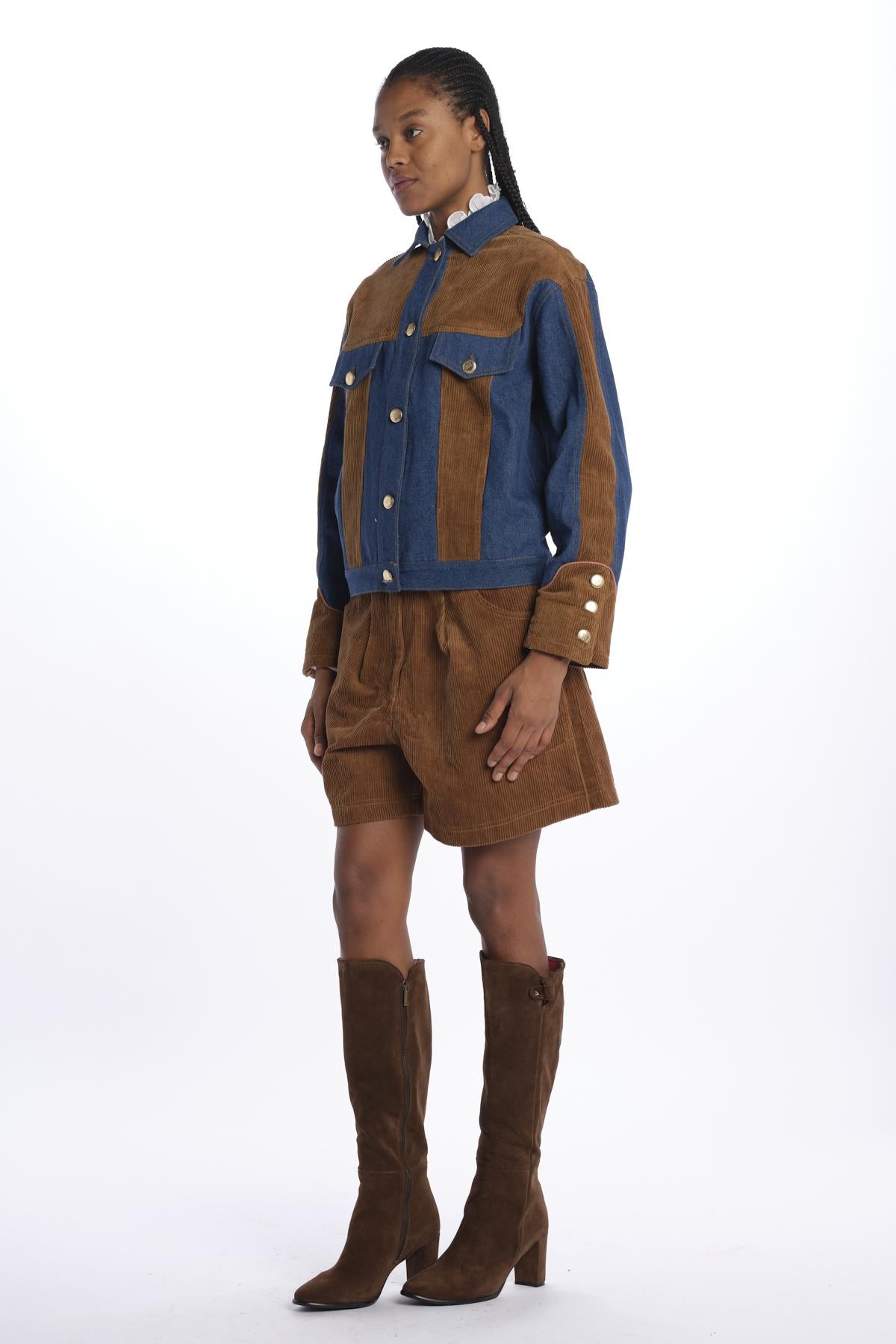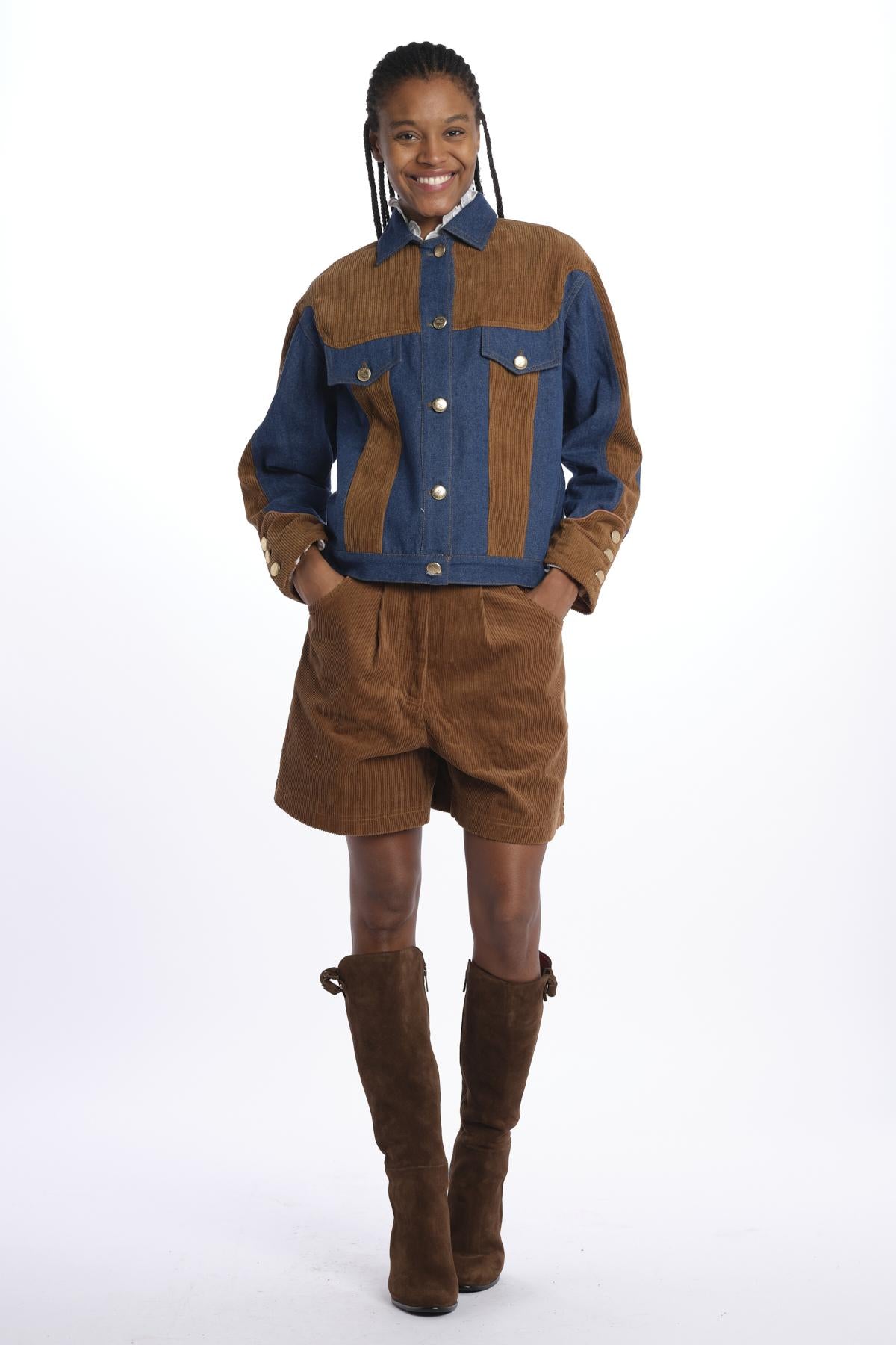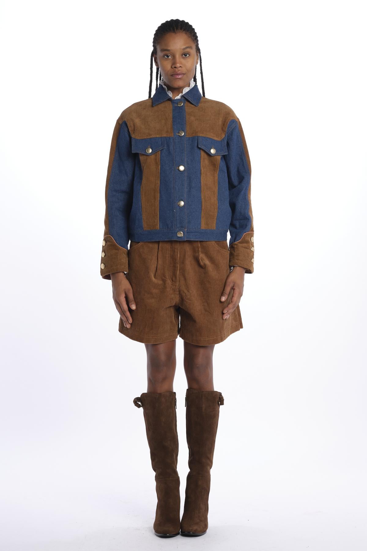 Giacca denim + velluto by farm rio. La modella è alta 174 cm e indossa una taglia XS. Composizione: 100% cotone.
