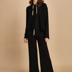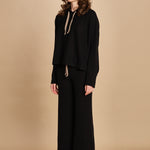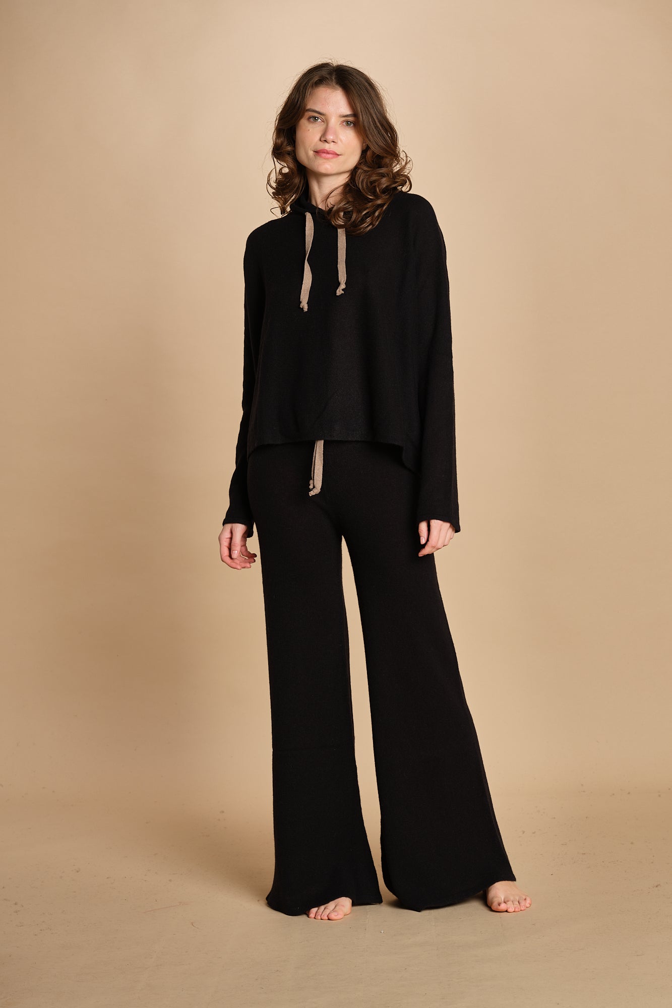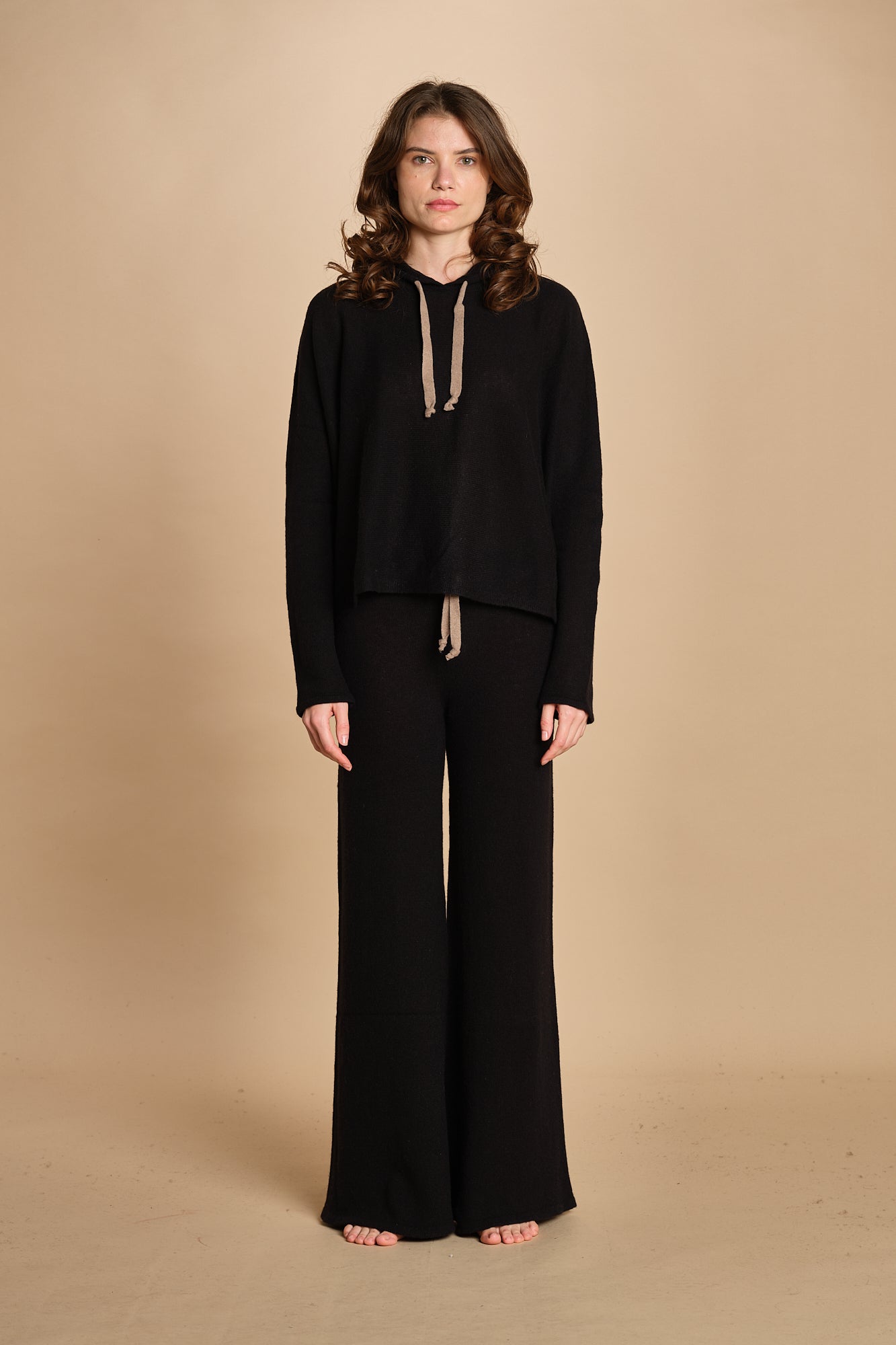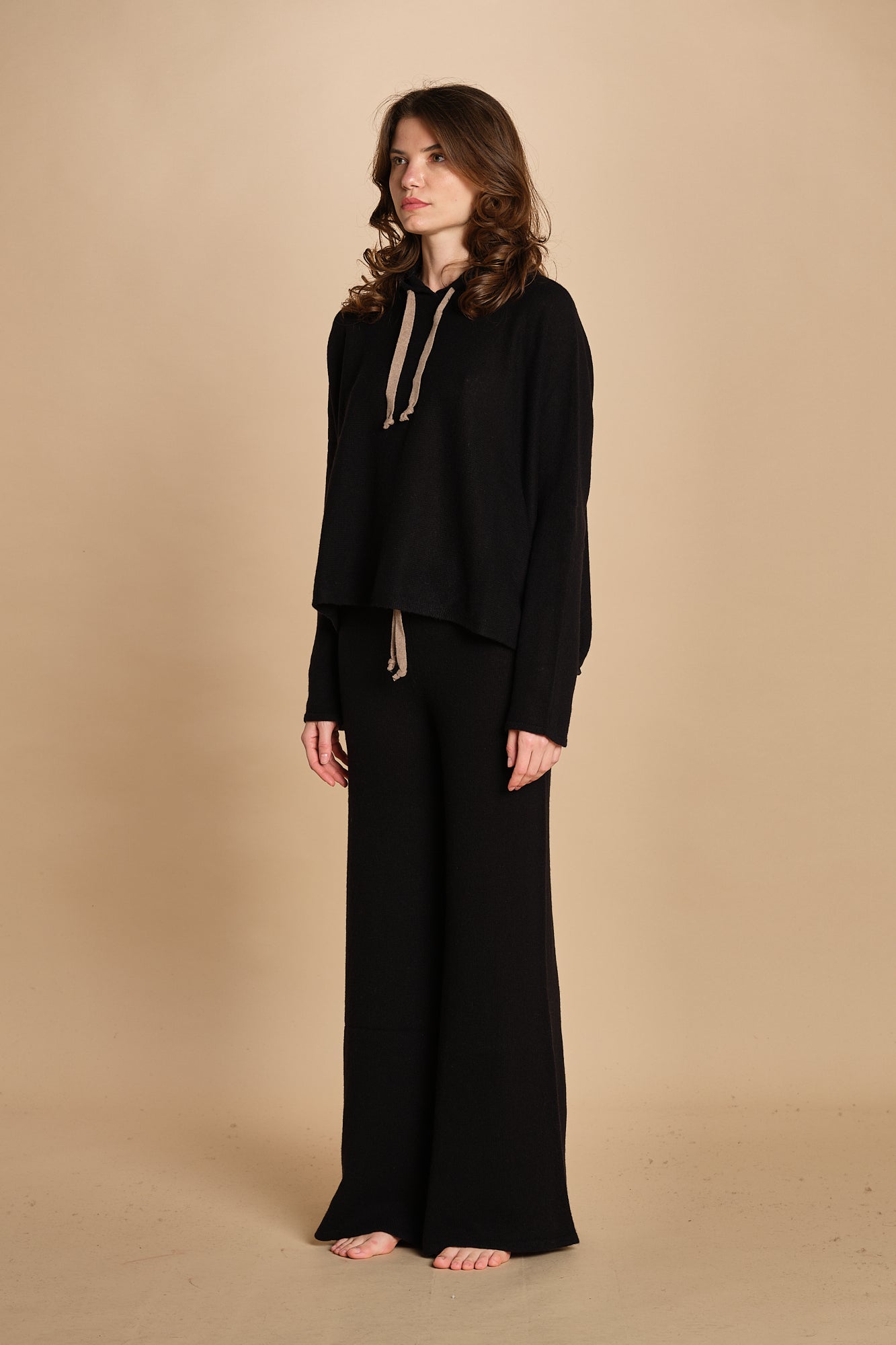 Felpa con cappuccio. La modella è alta 174 cm e indossa una taglia M/L. 100% cachemire