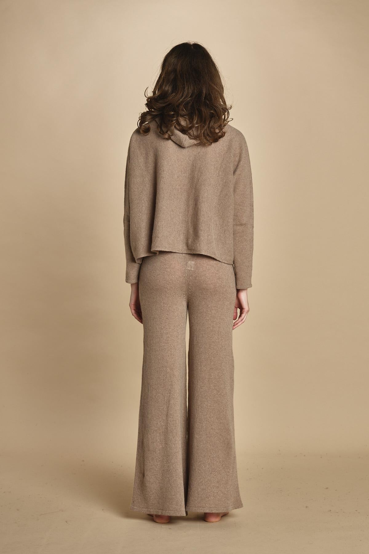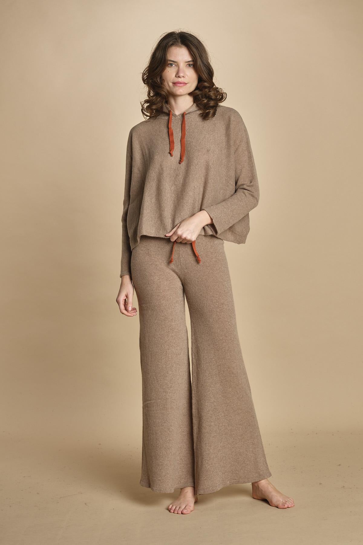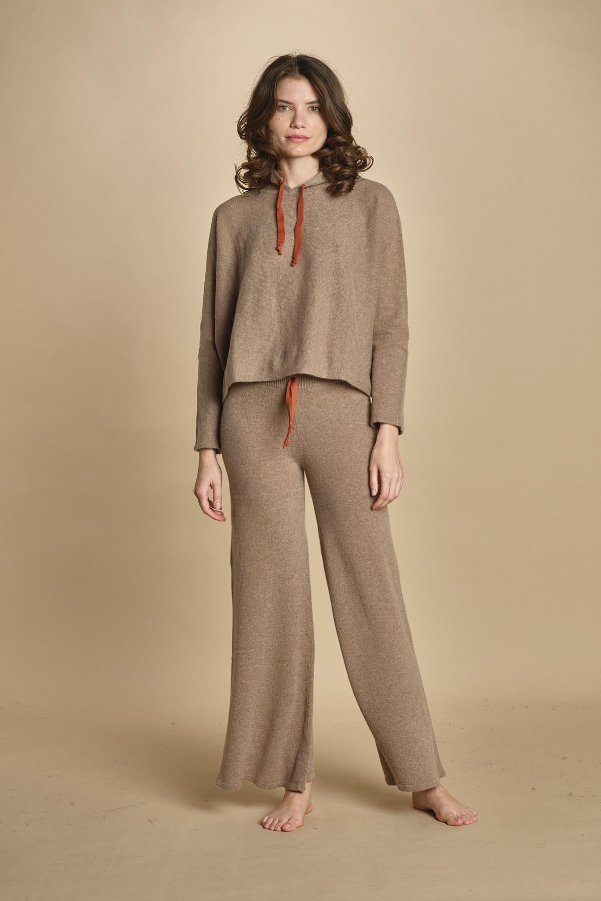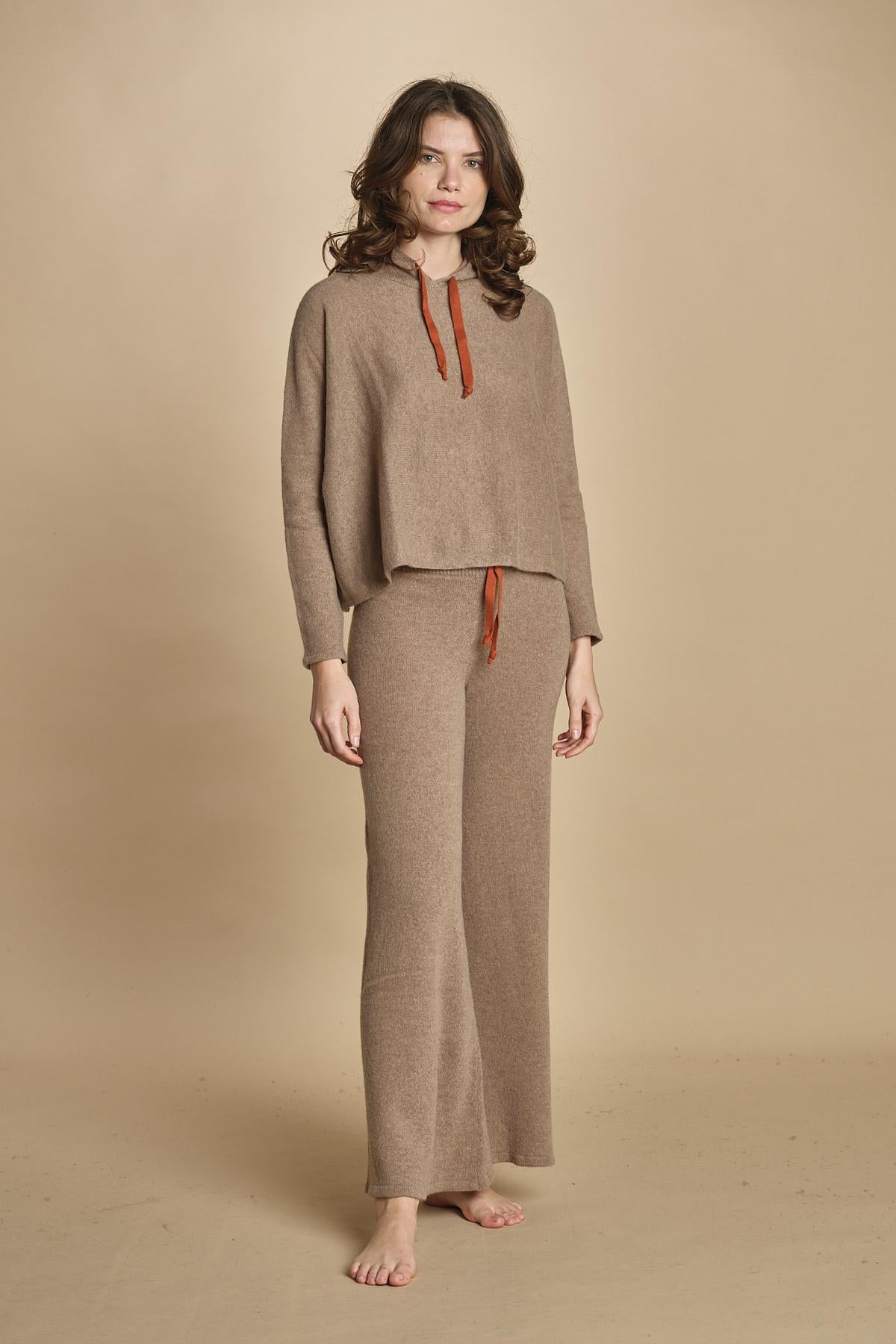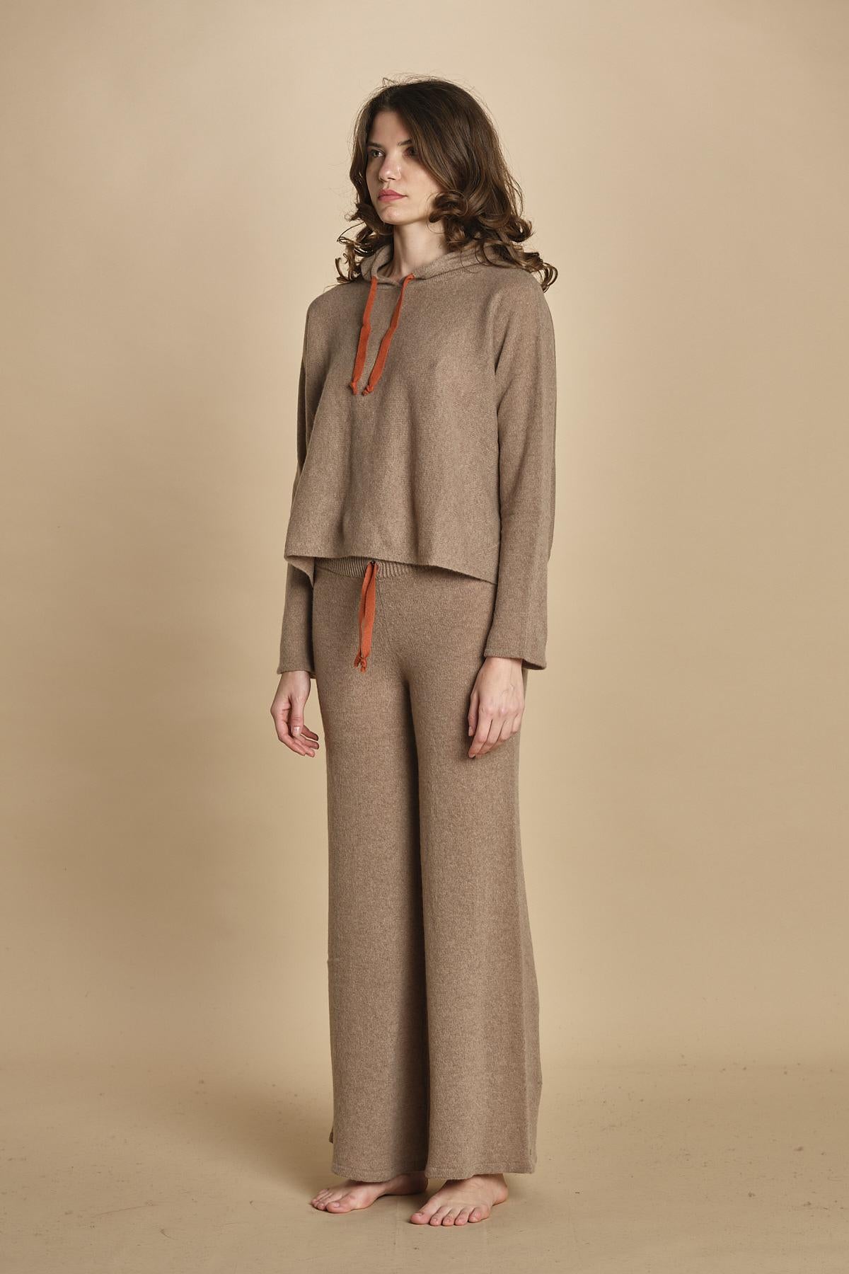 Felpa con cappuccio. La modella è alta 174 cm e indossa una taglia M/L. 100% cachemire