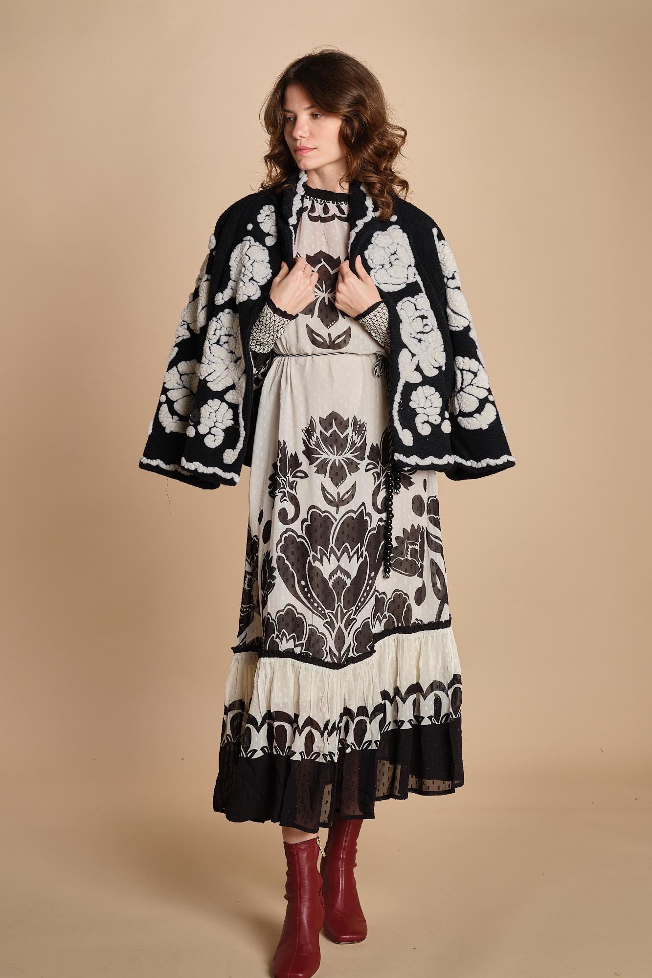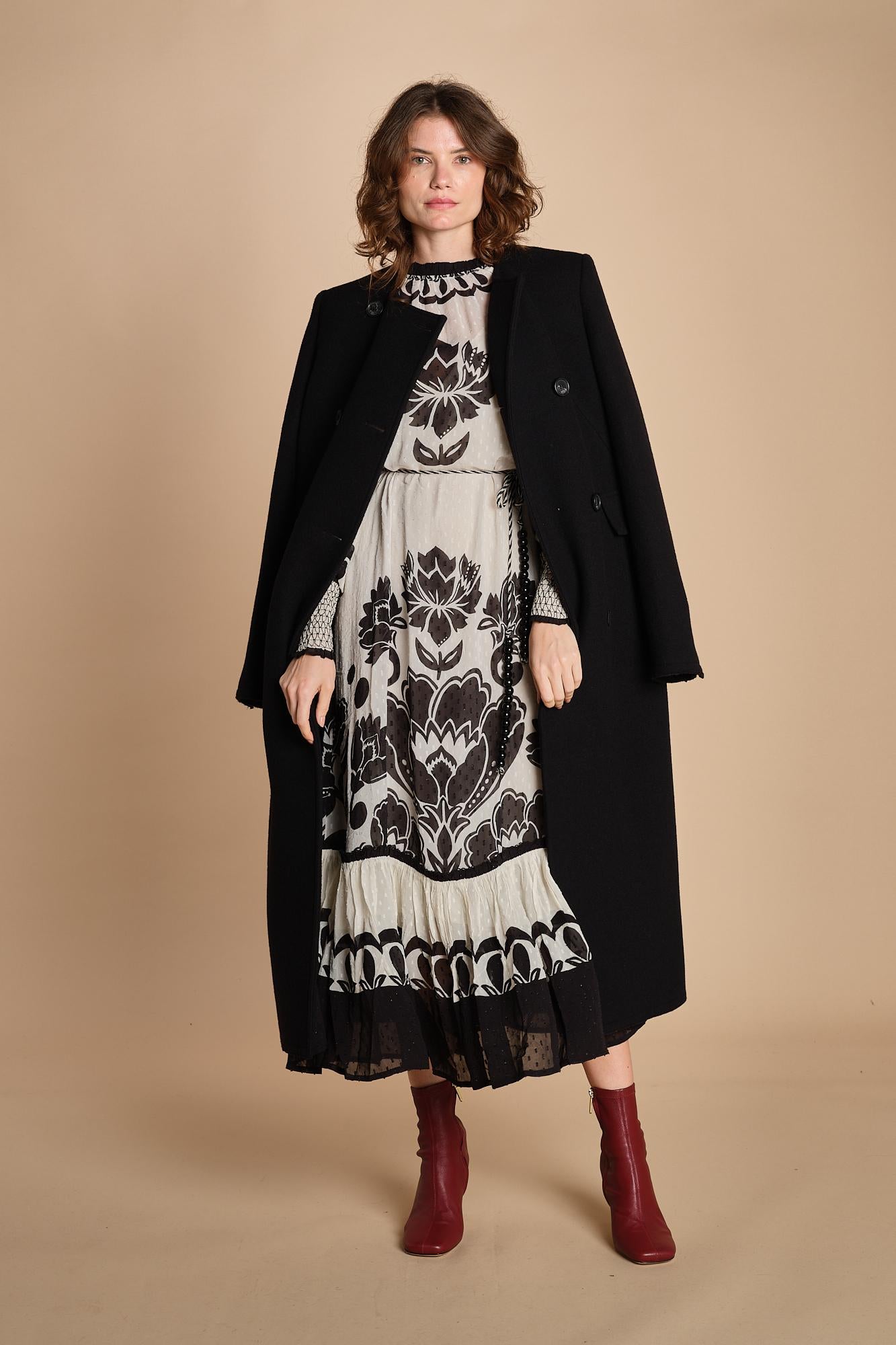 abito lungo con stampa a fiori. La modella è alta 176 cm e indossa una taglia S.