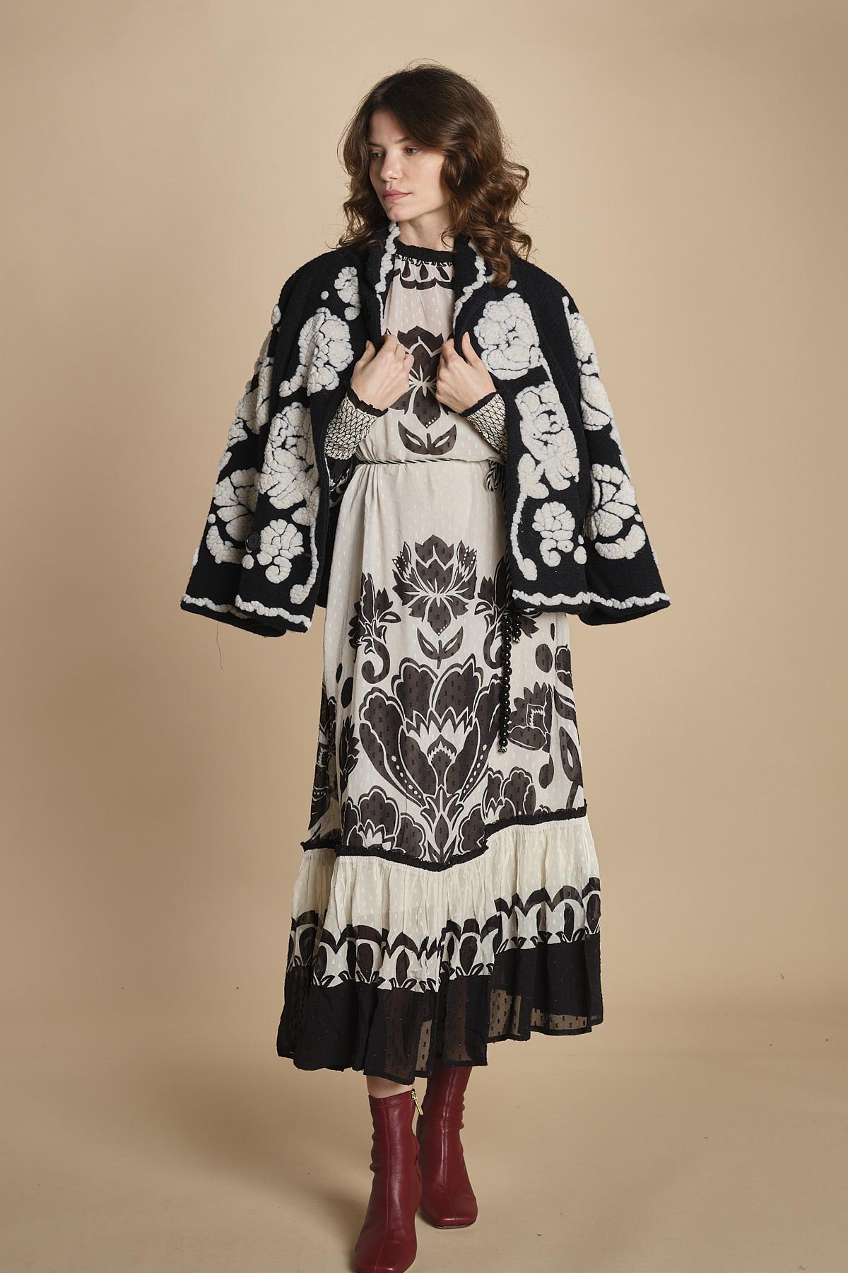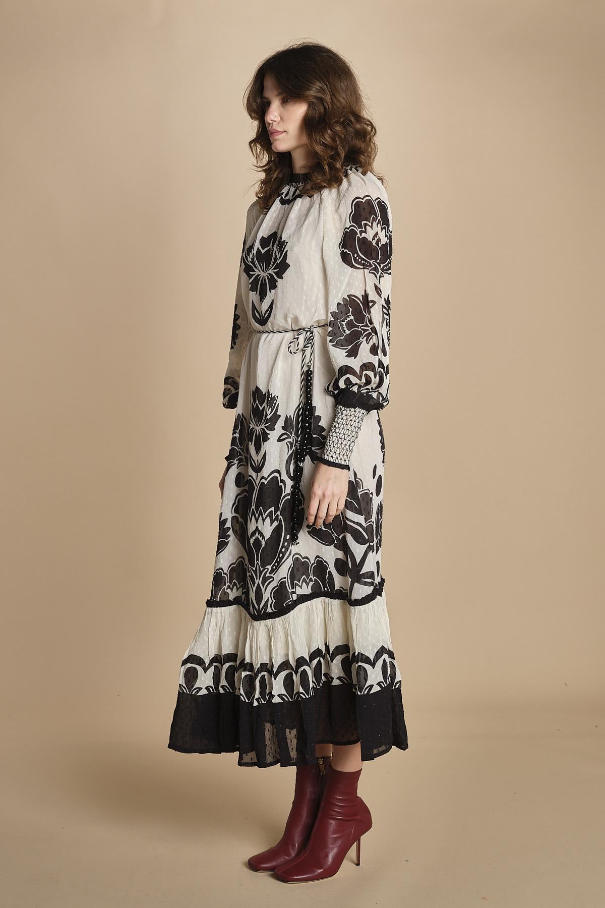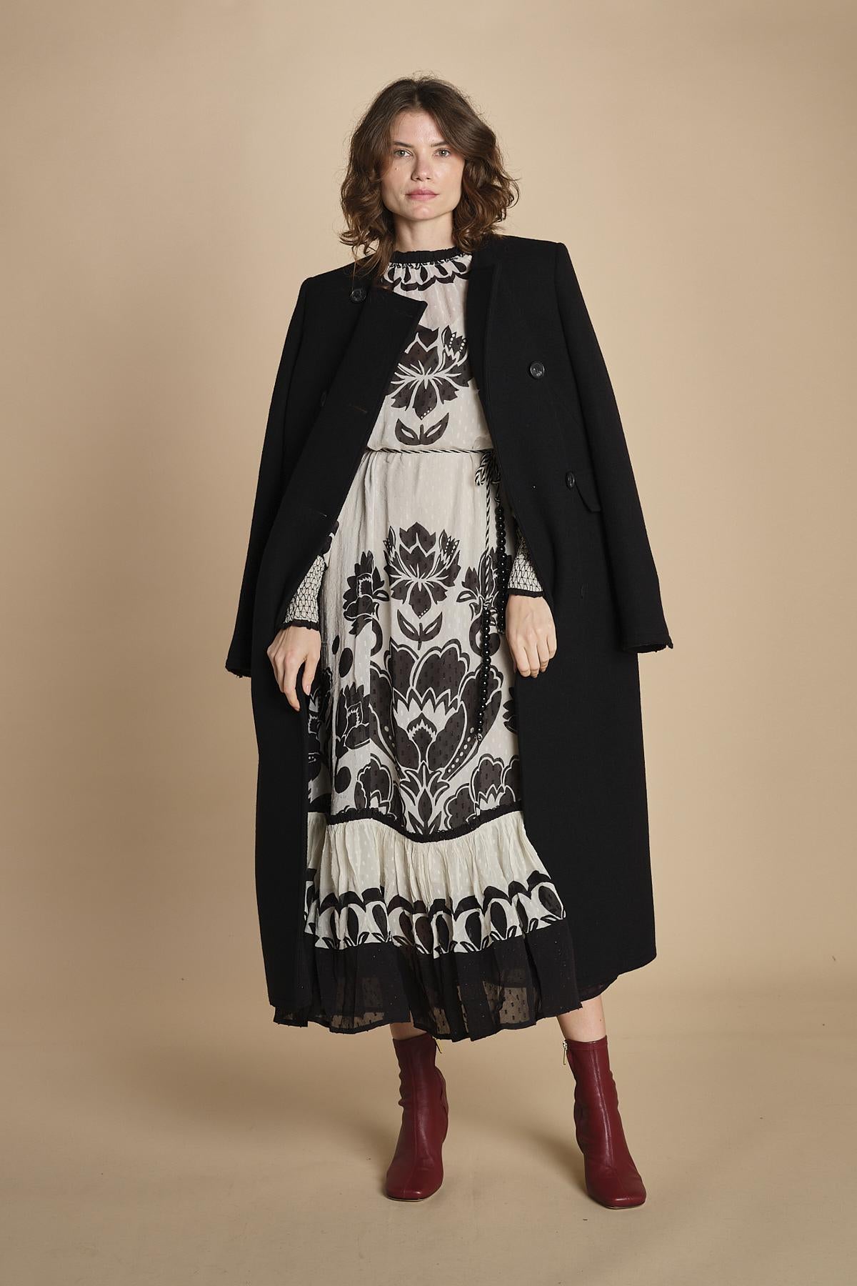 abito lungo con stampa a fiori. La modella è alta 176 cm e indossa una taglia XS. 100% VISCOSA