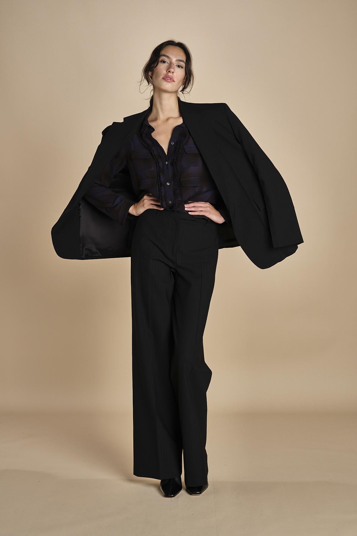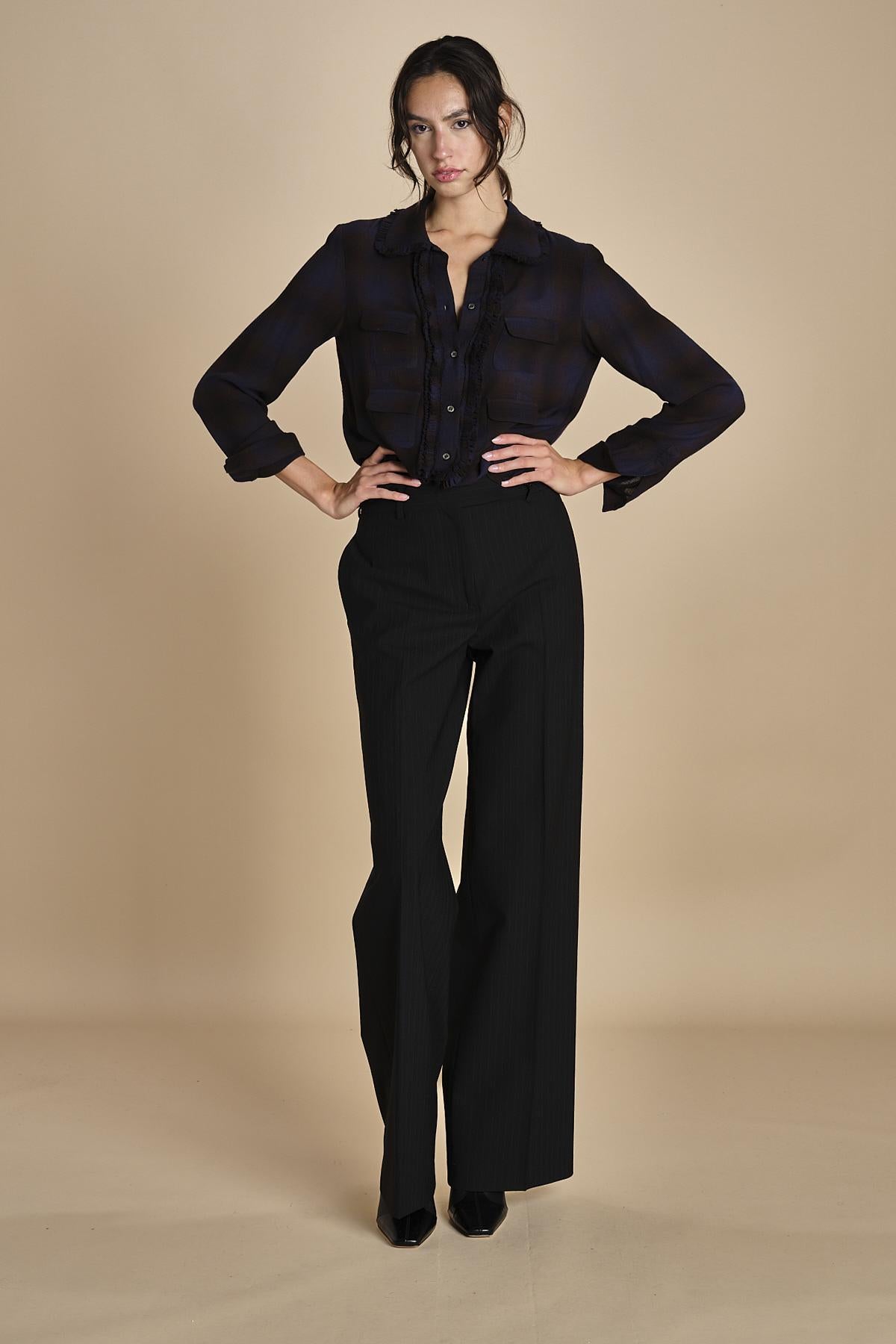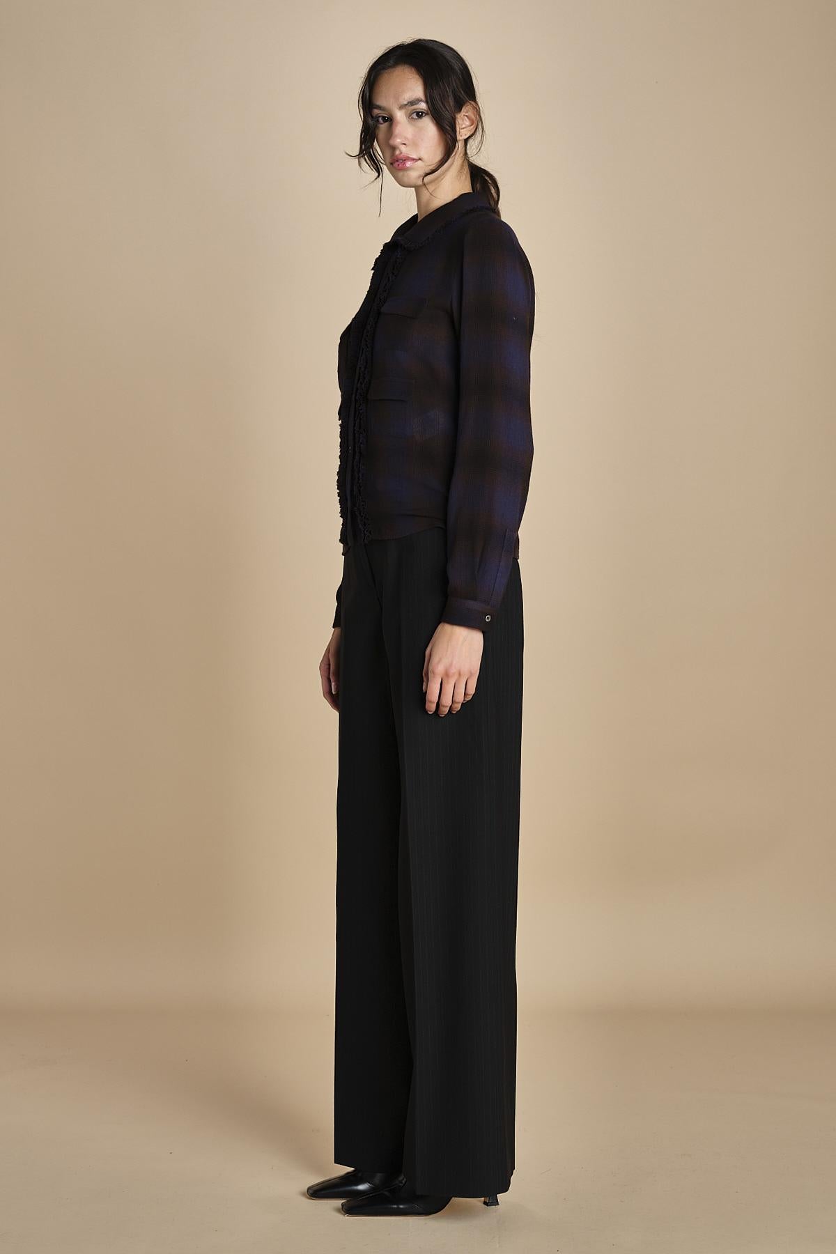 camicia a quadri con taschine. La modella è alta 180 cm e indossa una taglia 38. 75% VISCOSA 25% LANA