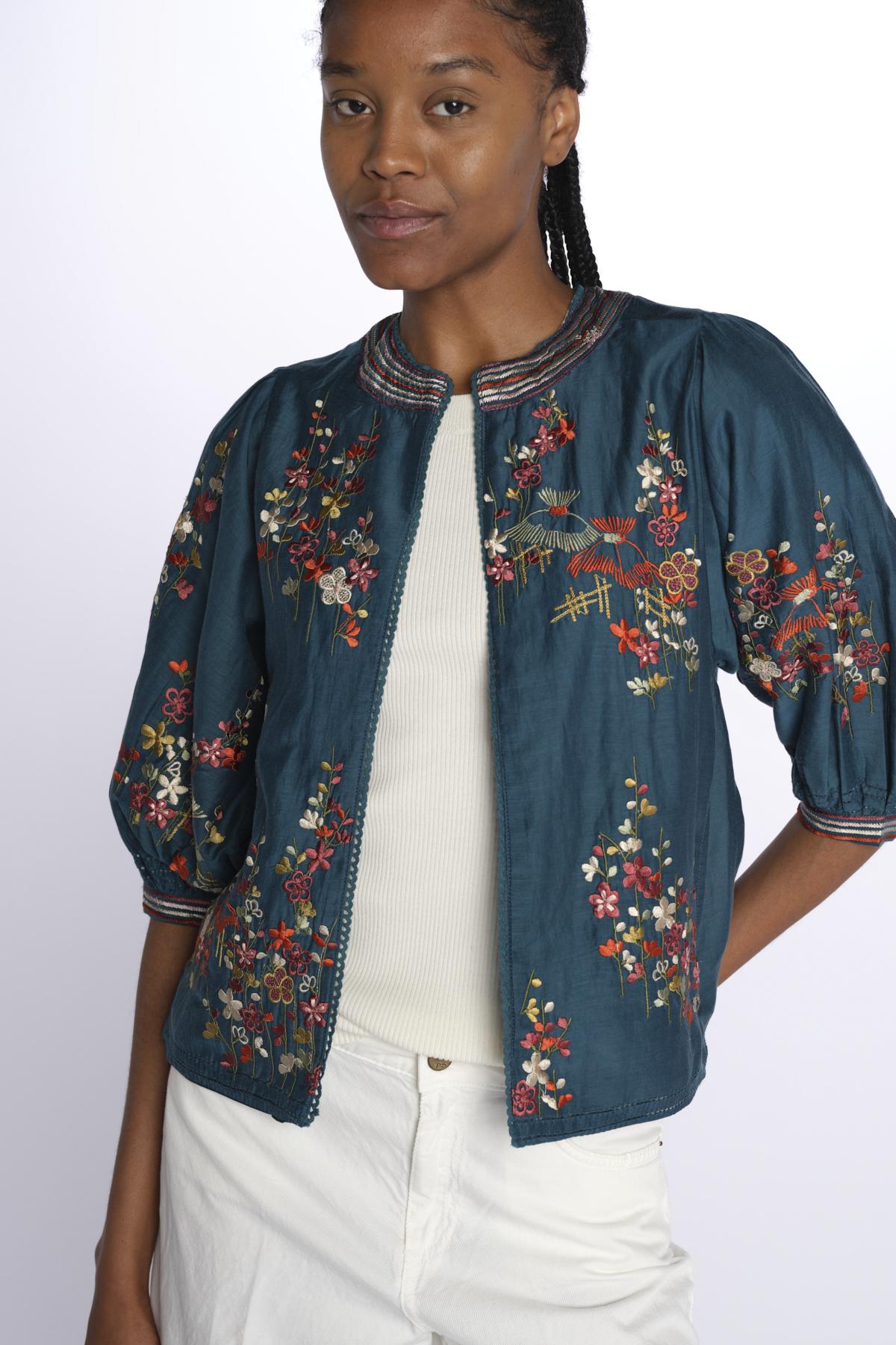 Giacca EMI m/c farfallineLa modella è alta 174 cm e indossa una S. Composizione: 78% cotone, 22% seta.