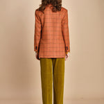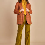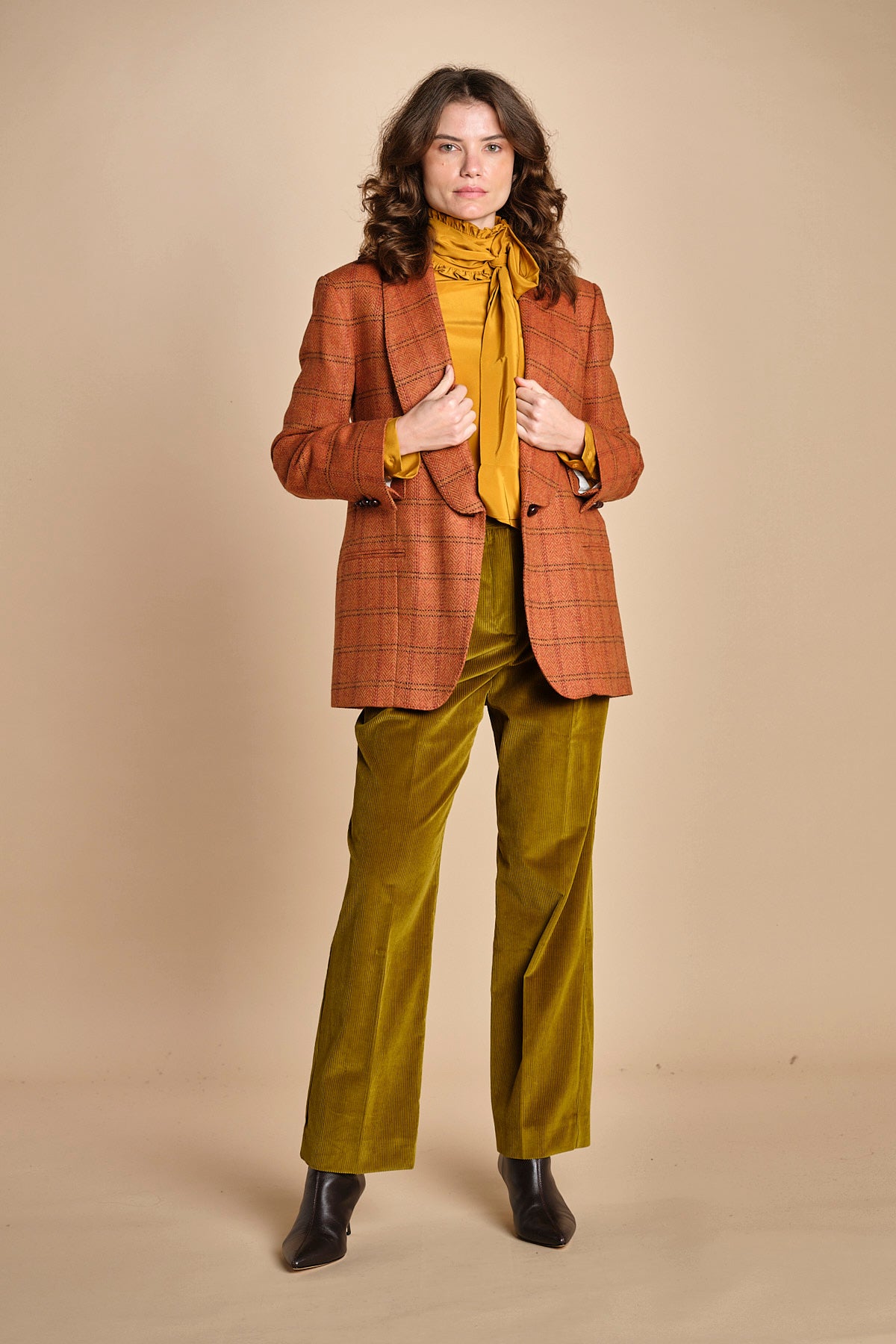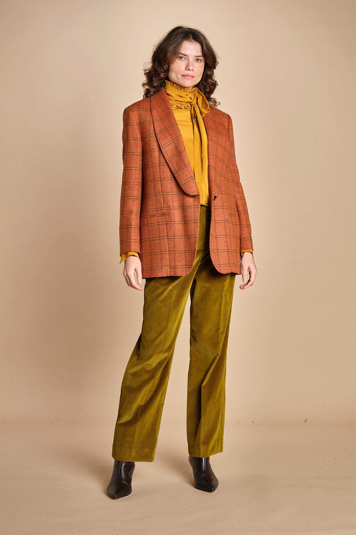 giacca shetland a quadri. La modella è alta 176 cm e indossa una taglia 38. 96% lana 4% poliammide