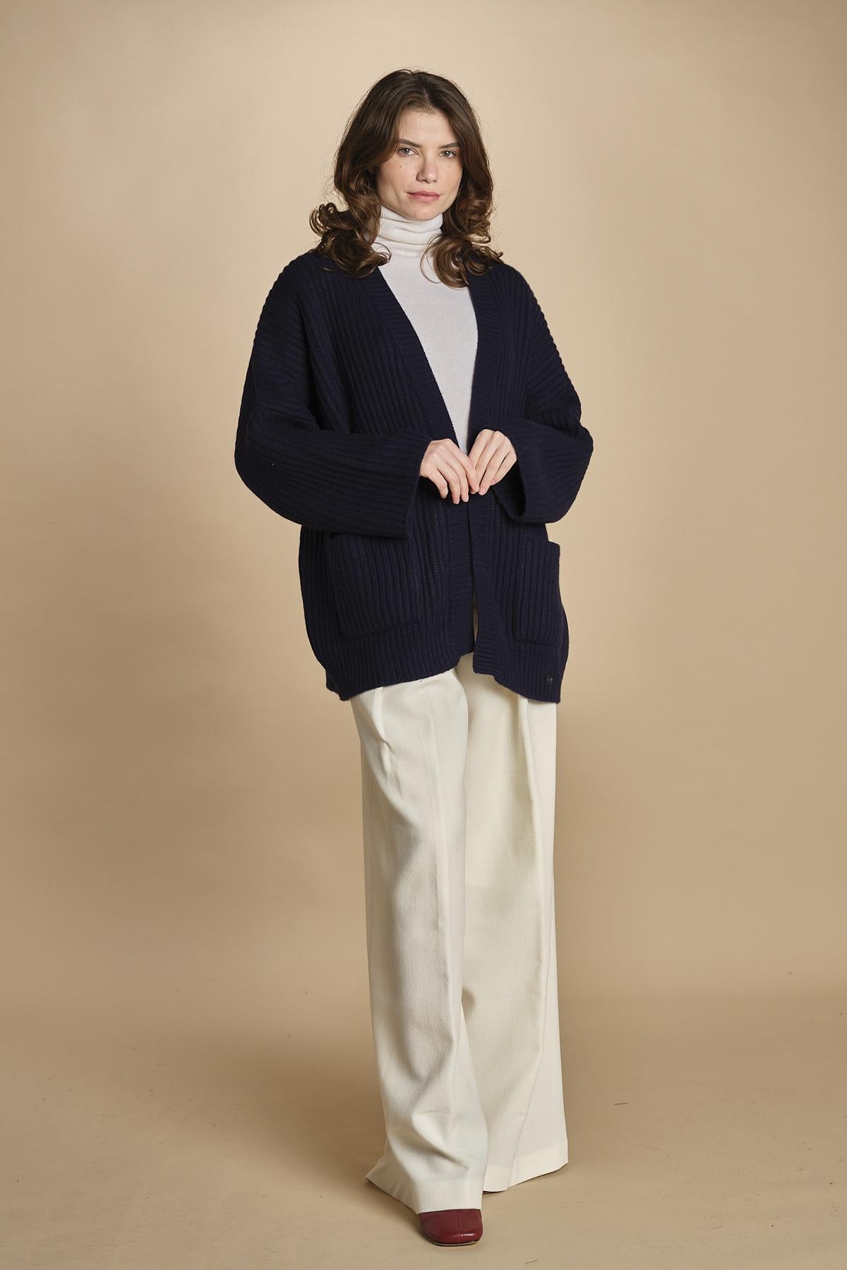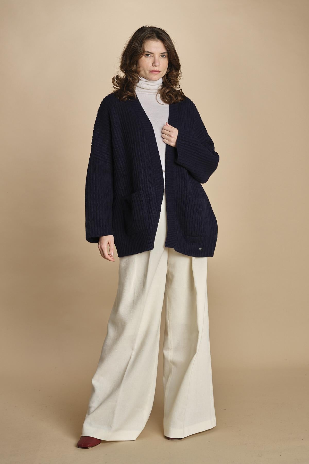 giaccone over in costa inglese. La modella è alta 174 cm e indossa una taglia L. 100% cachemire
