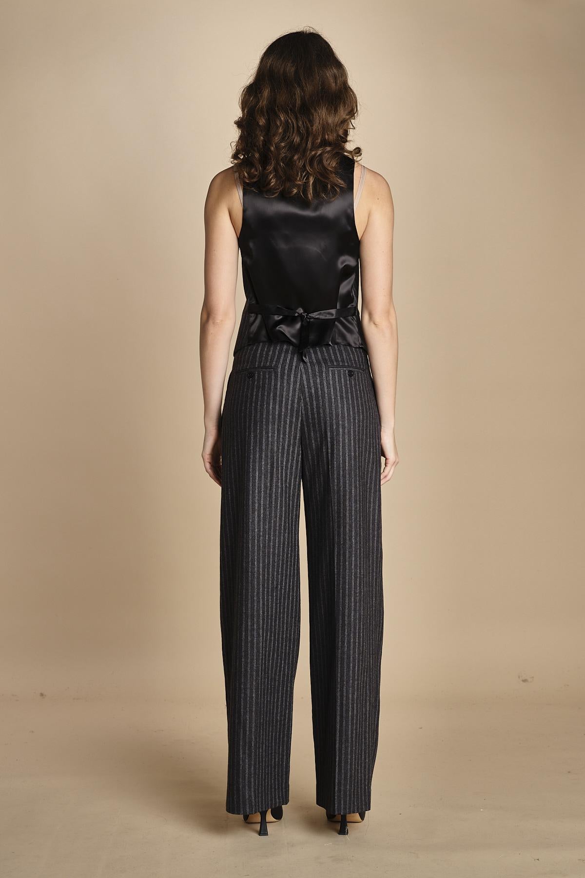 gilet gessato. La modella è alta 176 cm e indossa una taglia 36. 42% cotone 38% lana 17% poliestere 3% elastane