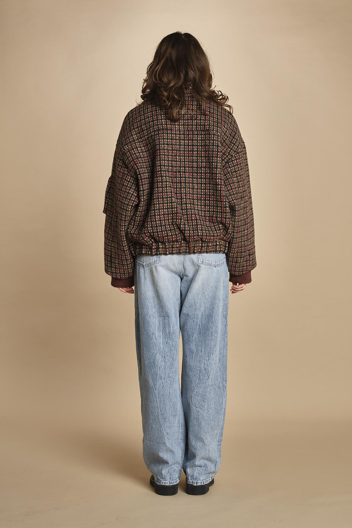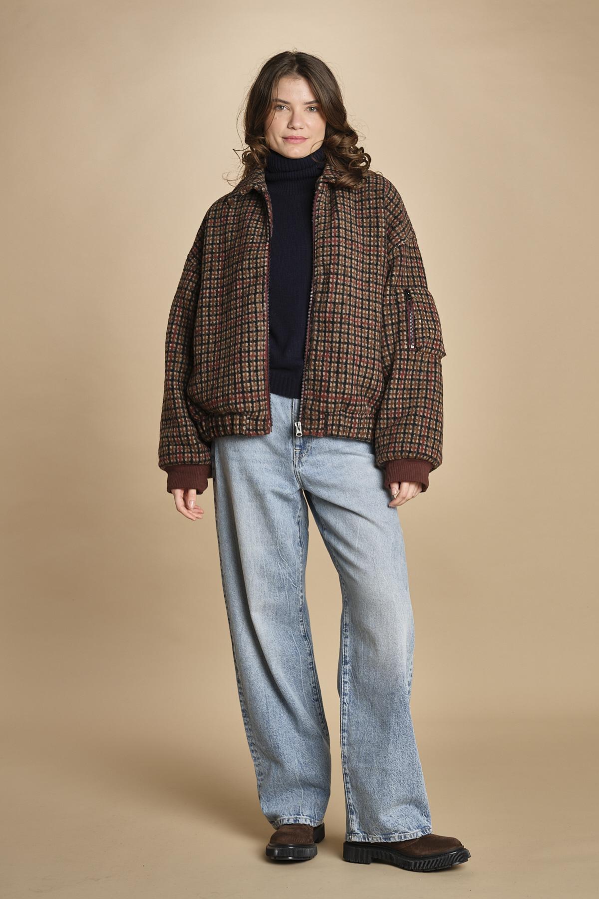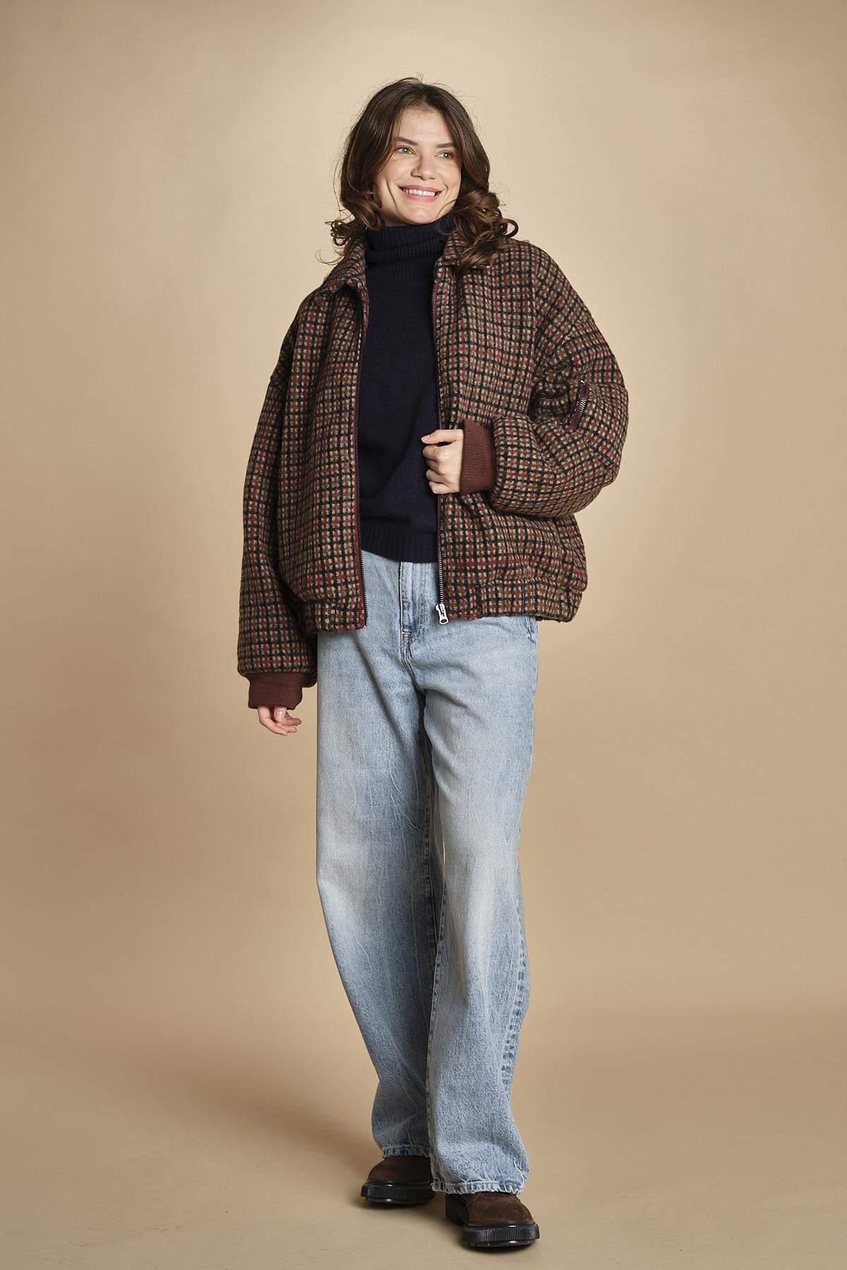 giubbino in piede de poule. La modella è alta 174 cm e indossa una taglia l. 60% poliestere 40% wool