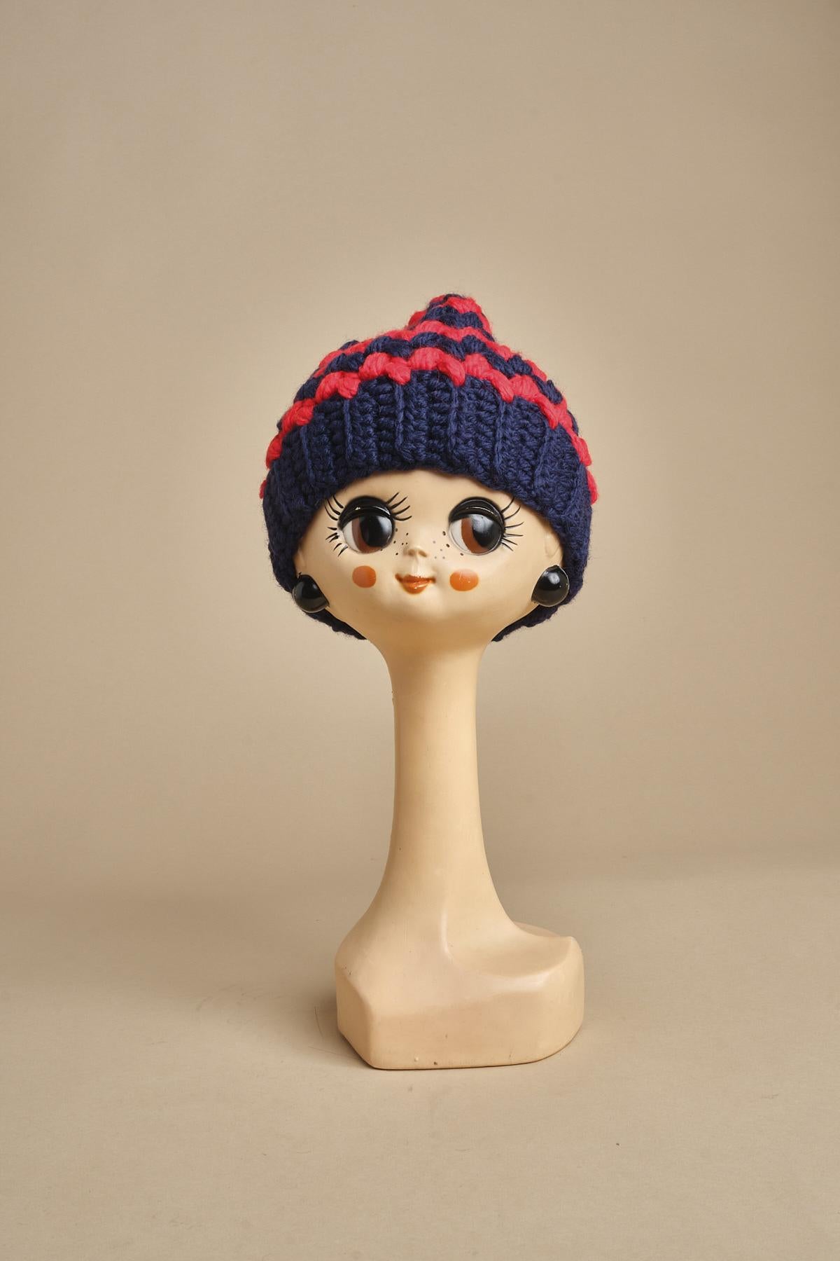 cappello lana a righe con pon pon