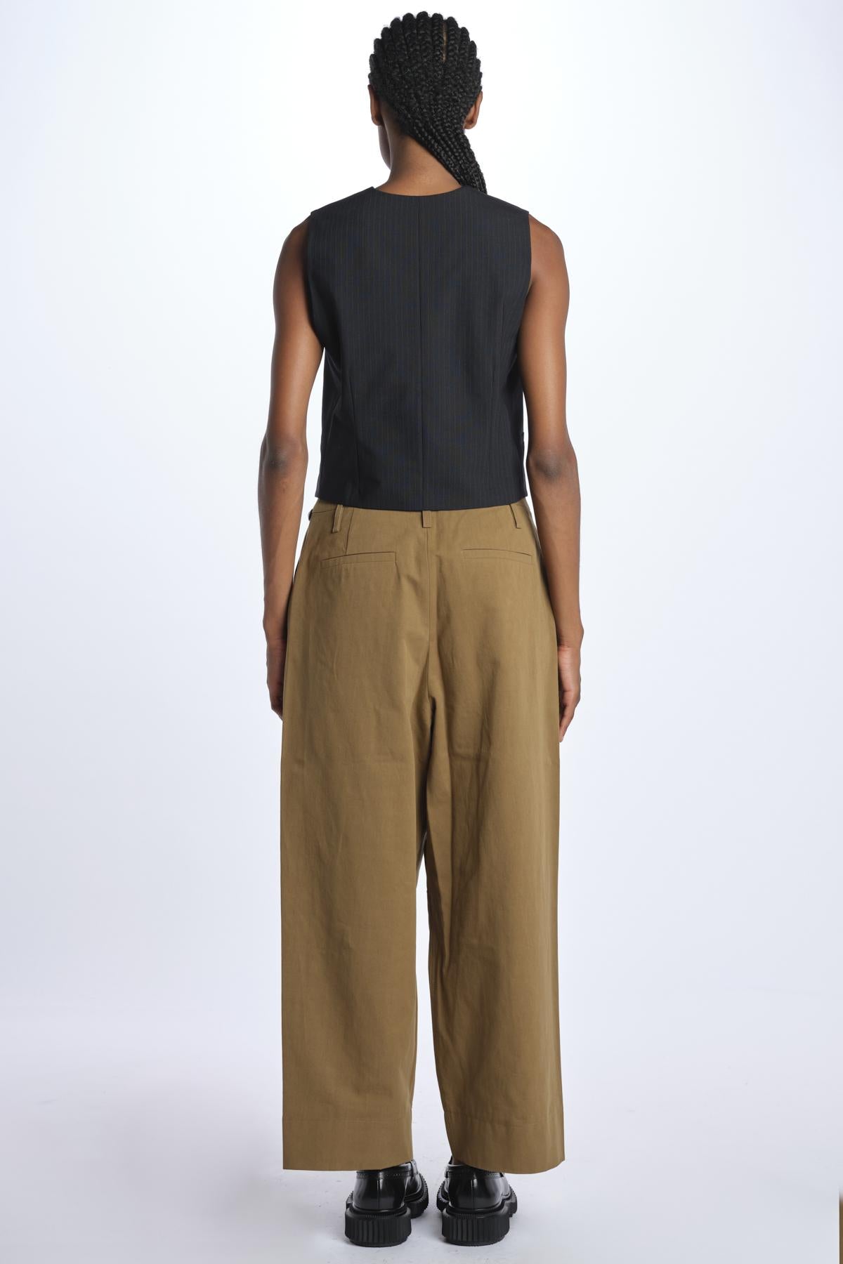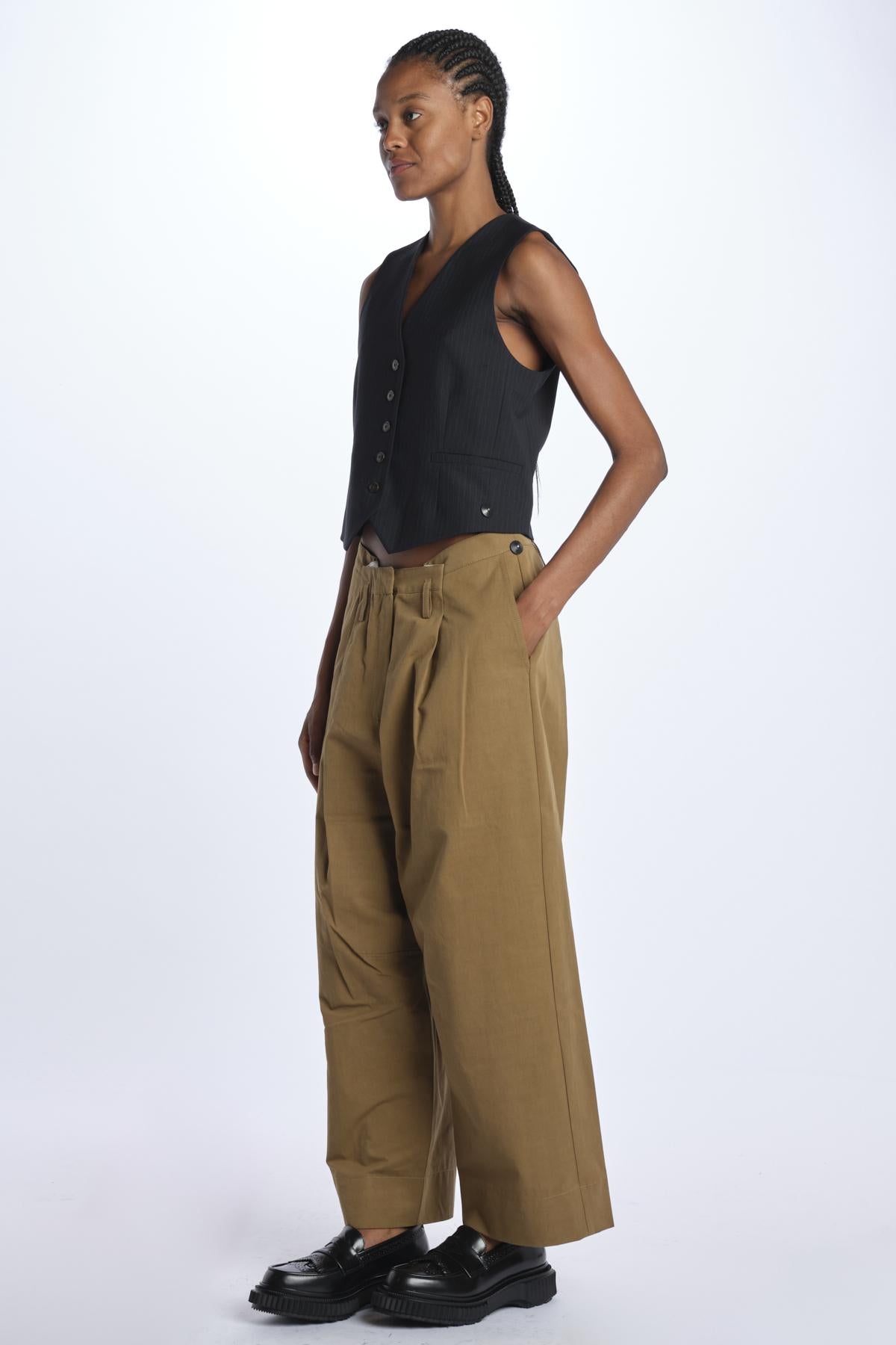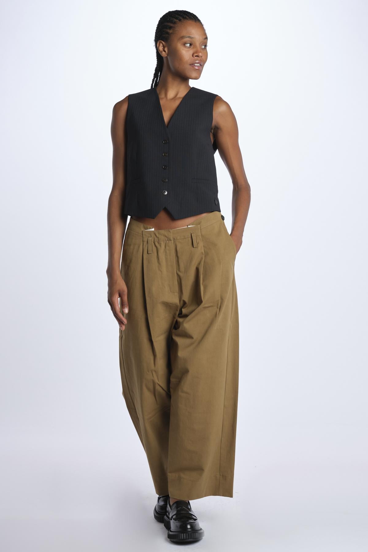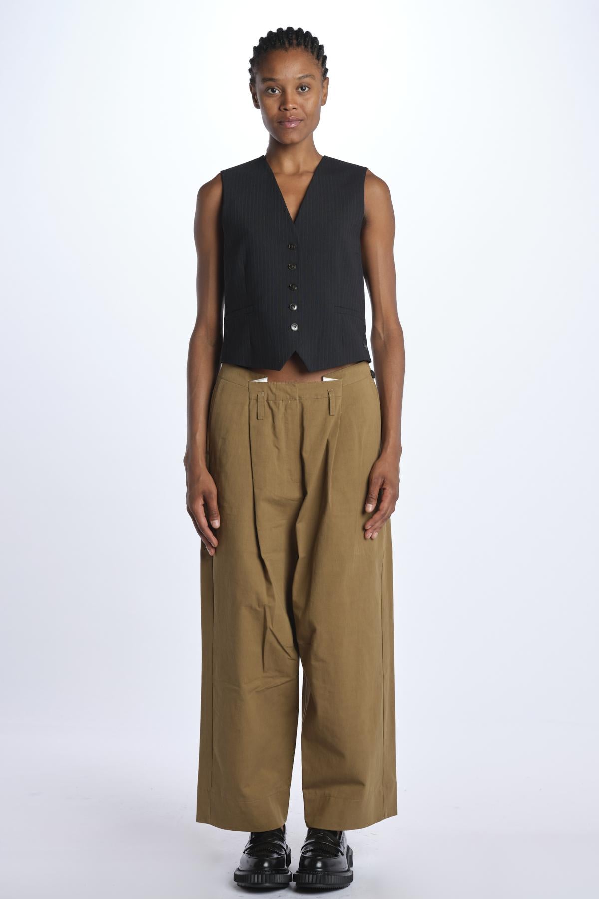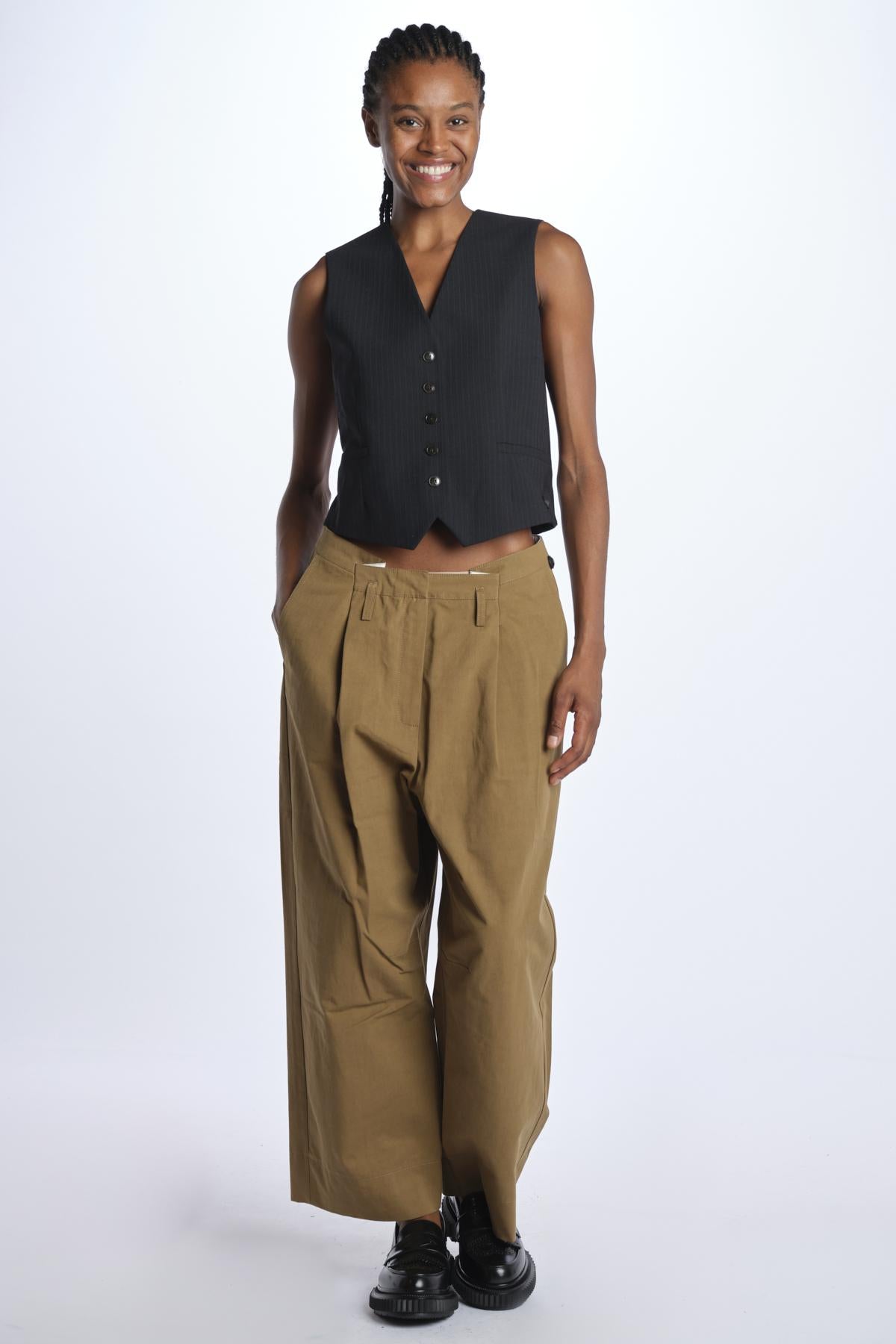 Pantalone CARL by Herskind con pinces. La modella è alta 174 cm e indossa una 38. Composizione: 100% cotone.