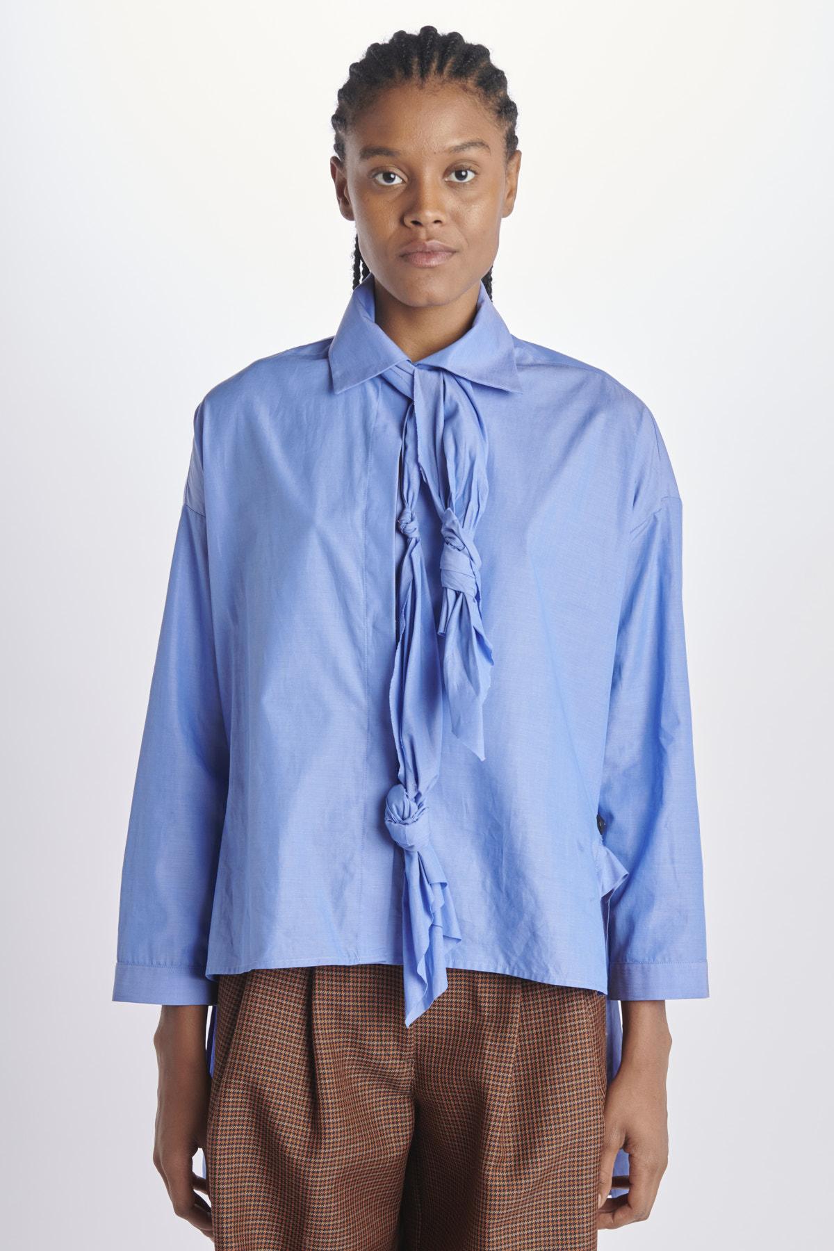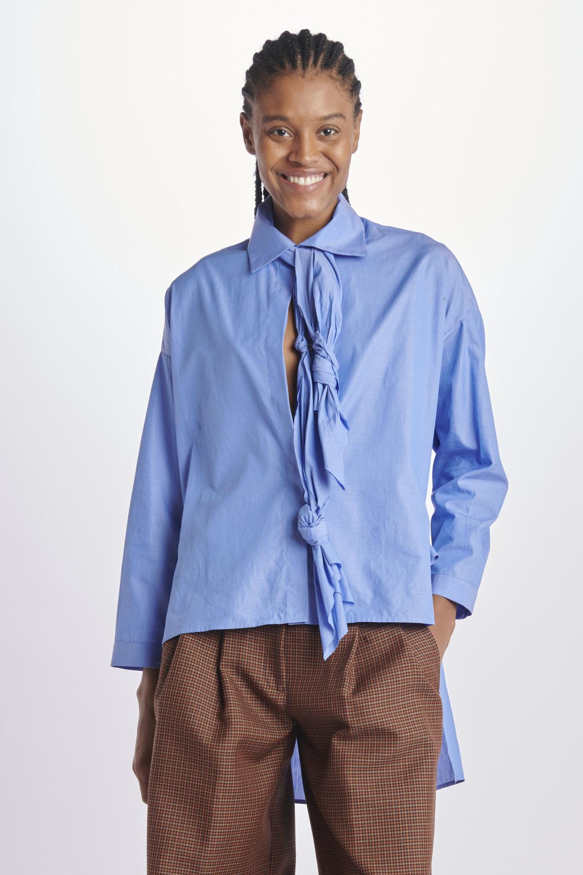 Camicia by Jejia con i nodi. La modella è alta 174 cm e indossa la taglia 38. Composizione: 100% Cotone.