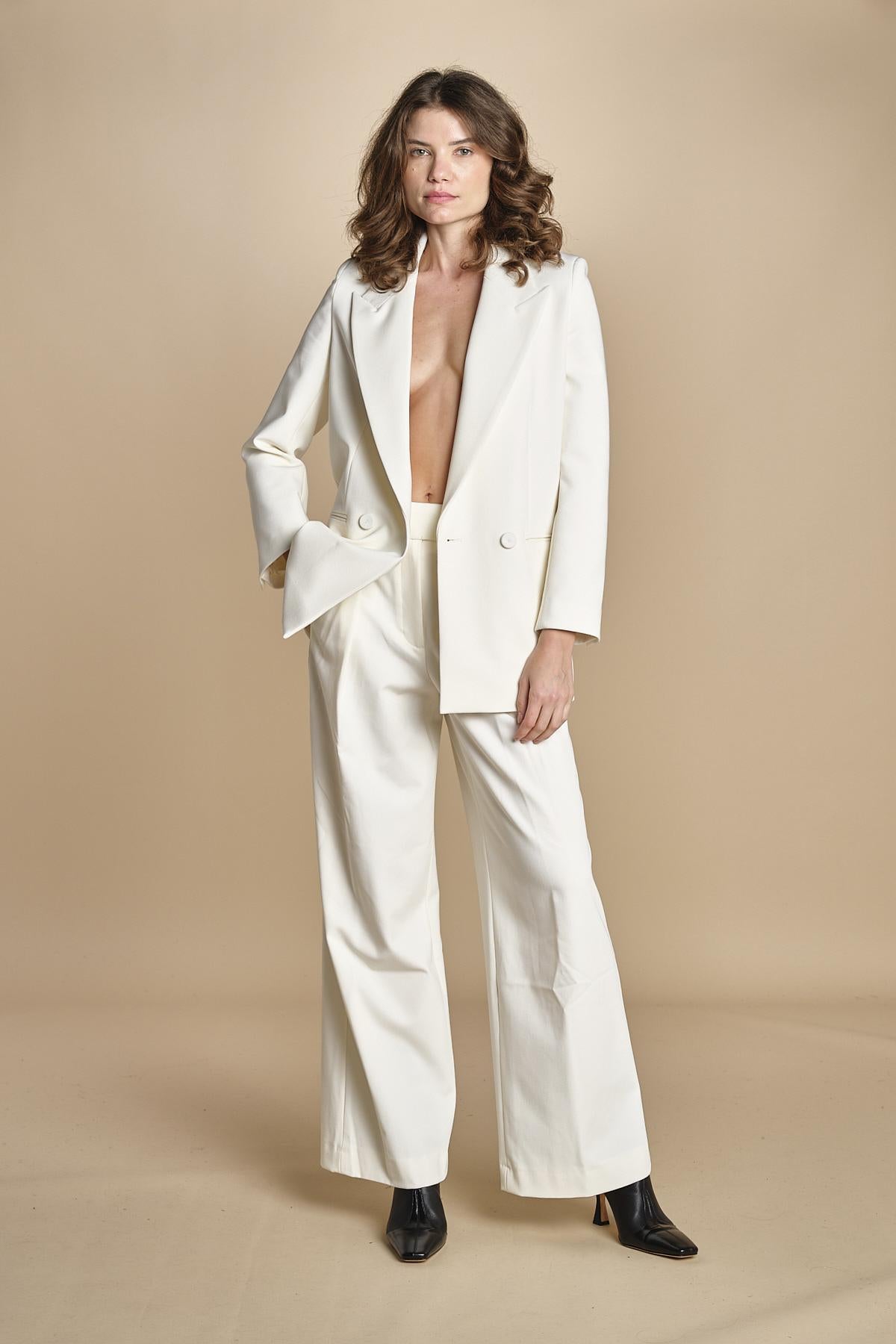 giacca smoking. La modella è alta 176 cm e indossa una taglia 34. 69% POLIESTERE 23% VISCOSA 8% ELASTANE