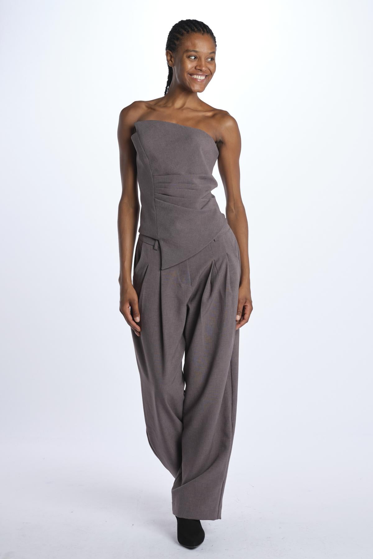 Pantalone BROOKLYN con pences by just bee queen. La modella è alta 174 cm e indossa una taglia S. Composizione: 100% poliestere.