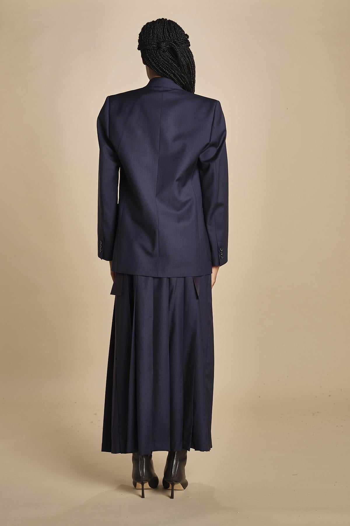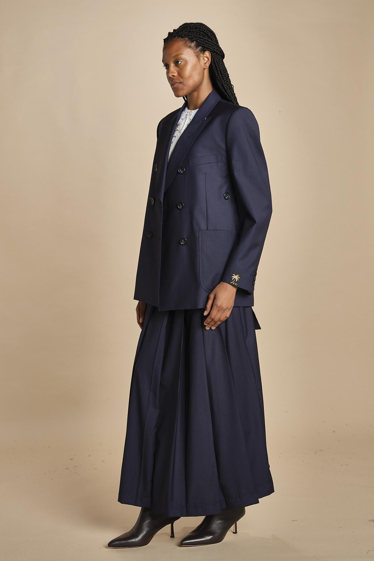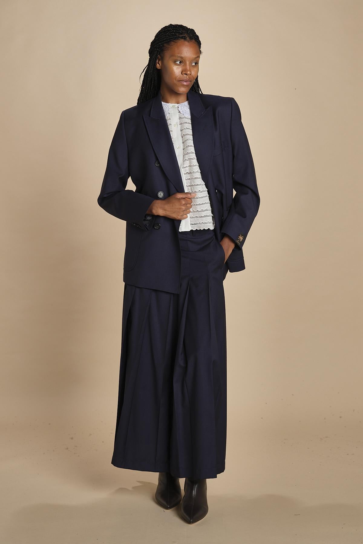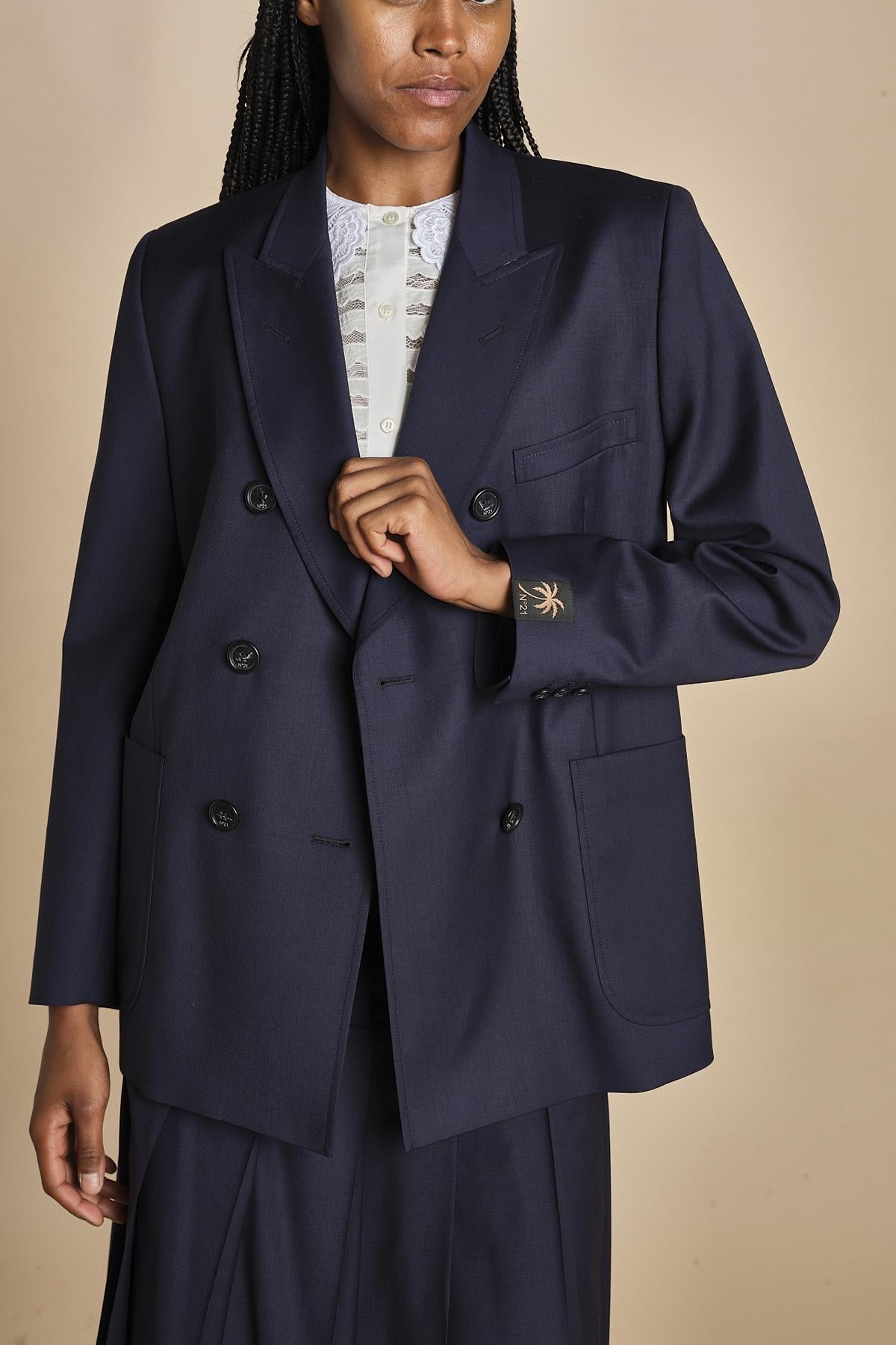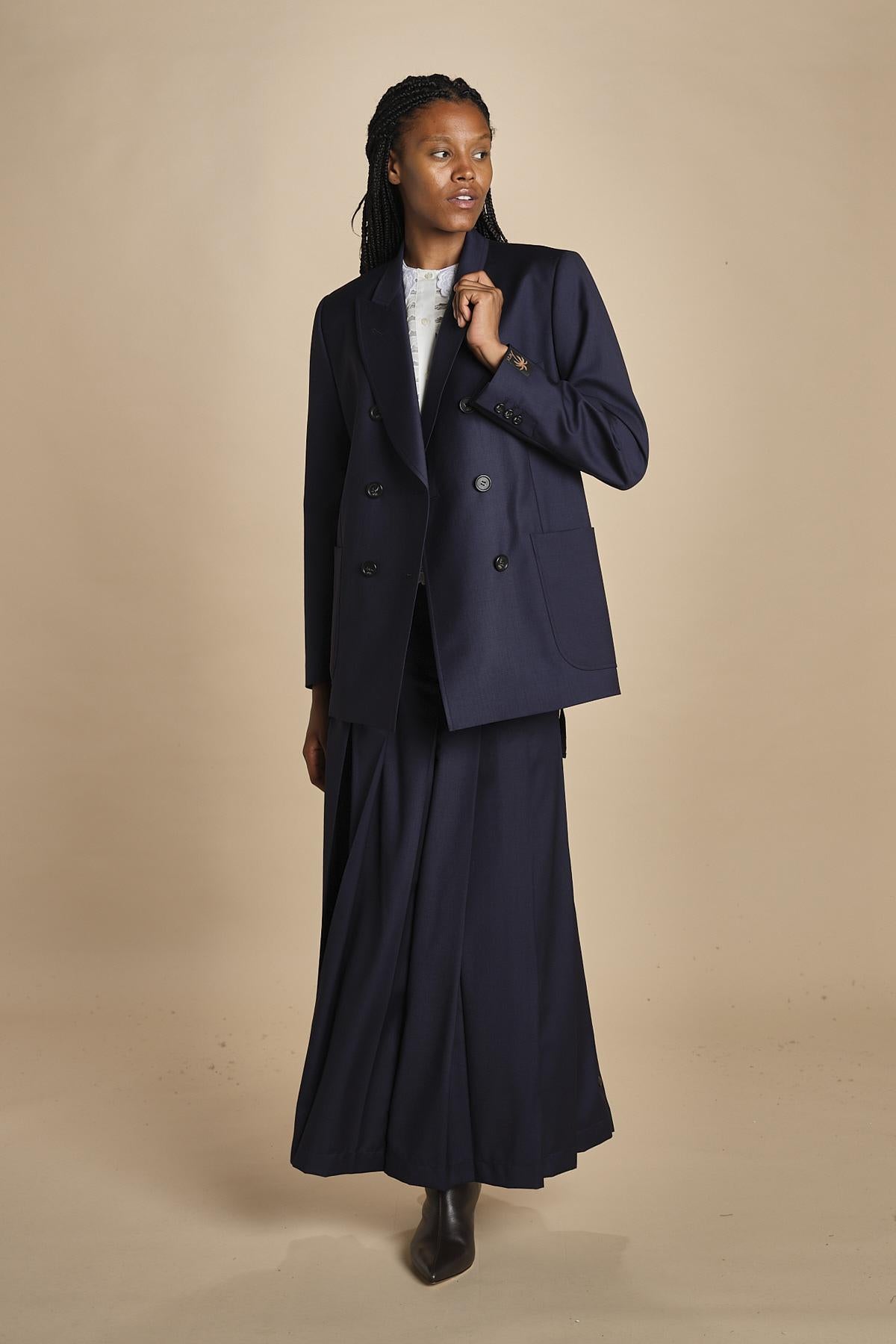 blazer over doppiopetto. La modella è alta 174 cm e indossa una taglia 38.