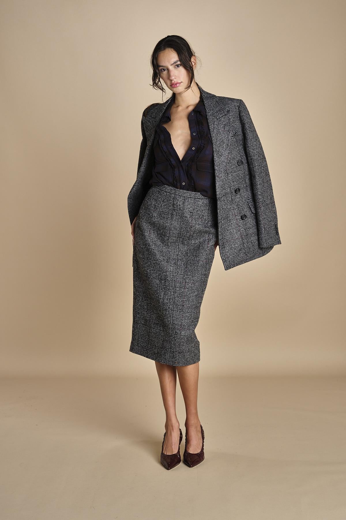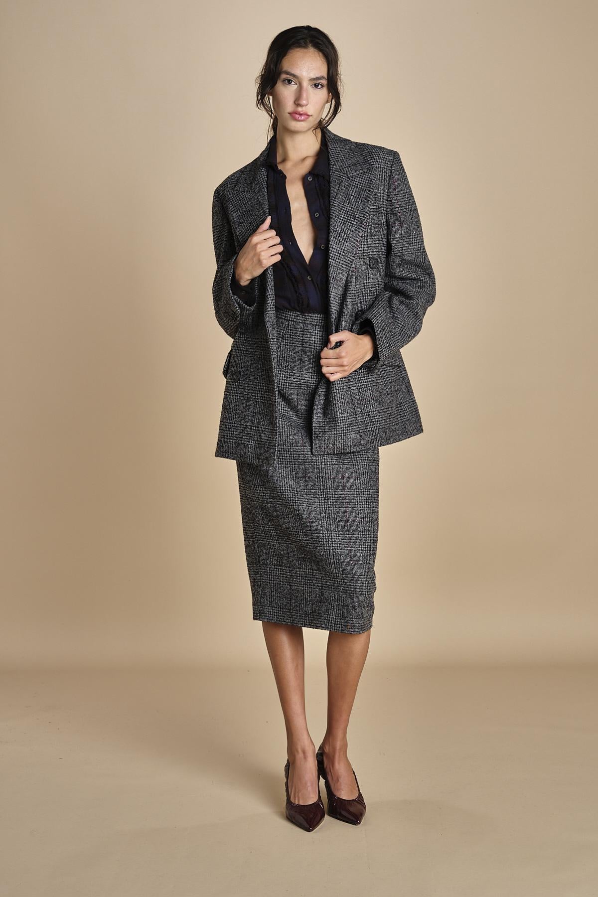 giacca galles. La modella è alta 180 cm e indossa una taglia 38. 51% LANA 30% POLIAMMIDE 19% ACRILICO