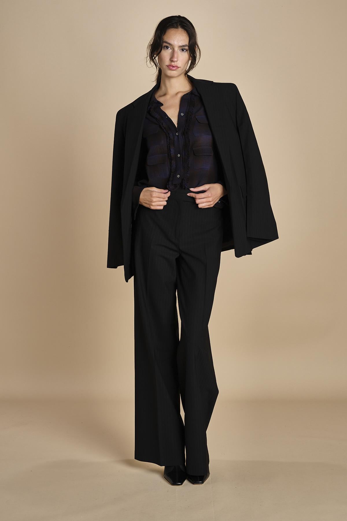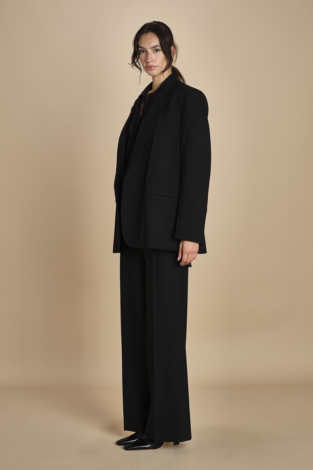 blazer over gessato. La modella è alta 180 cm e indossa una taglia 38. 53% POLIESTERE 43% LANA VERGINE 4% ELASTAN