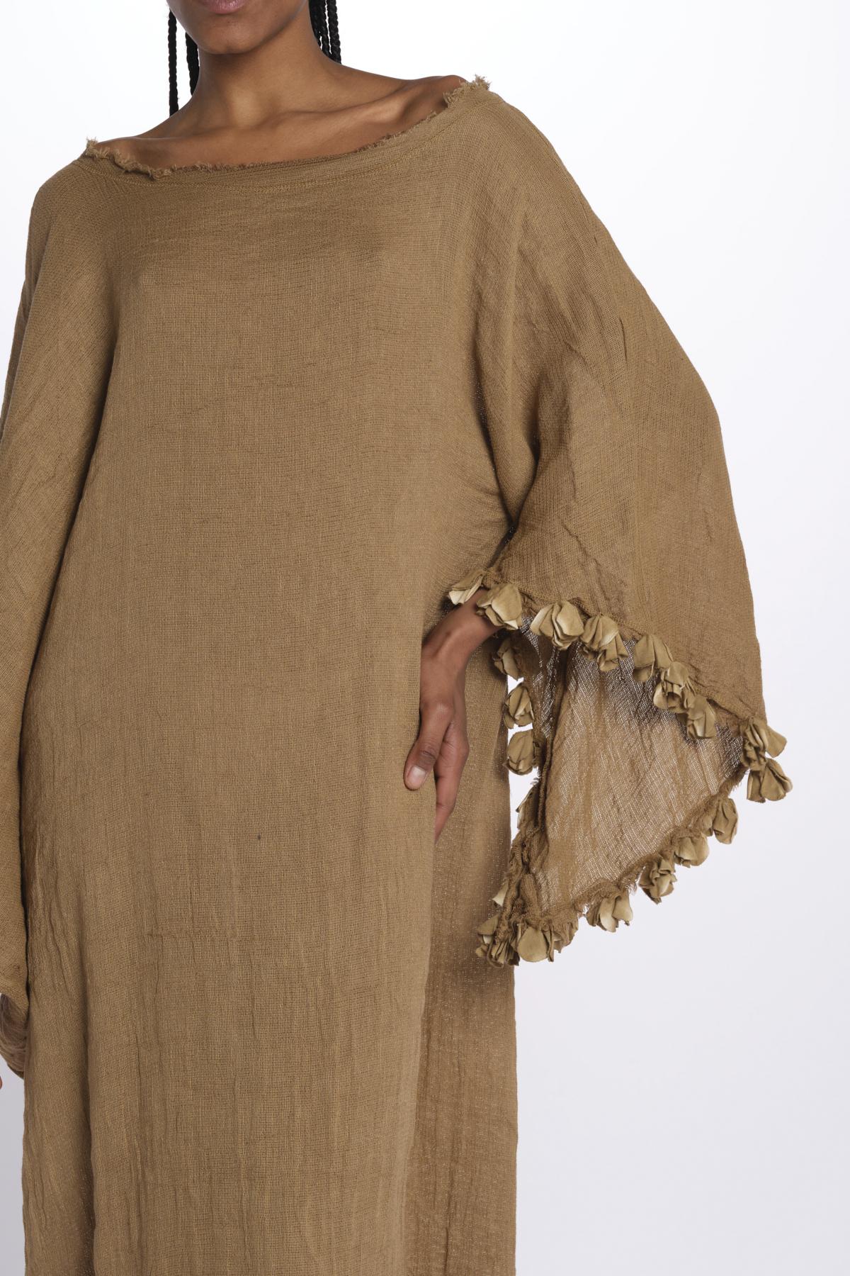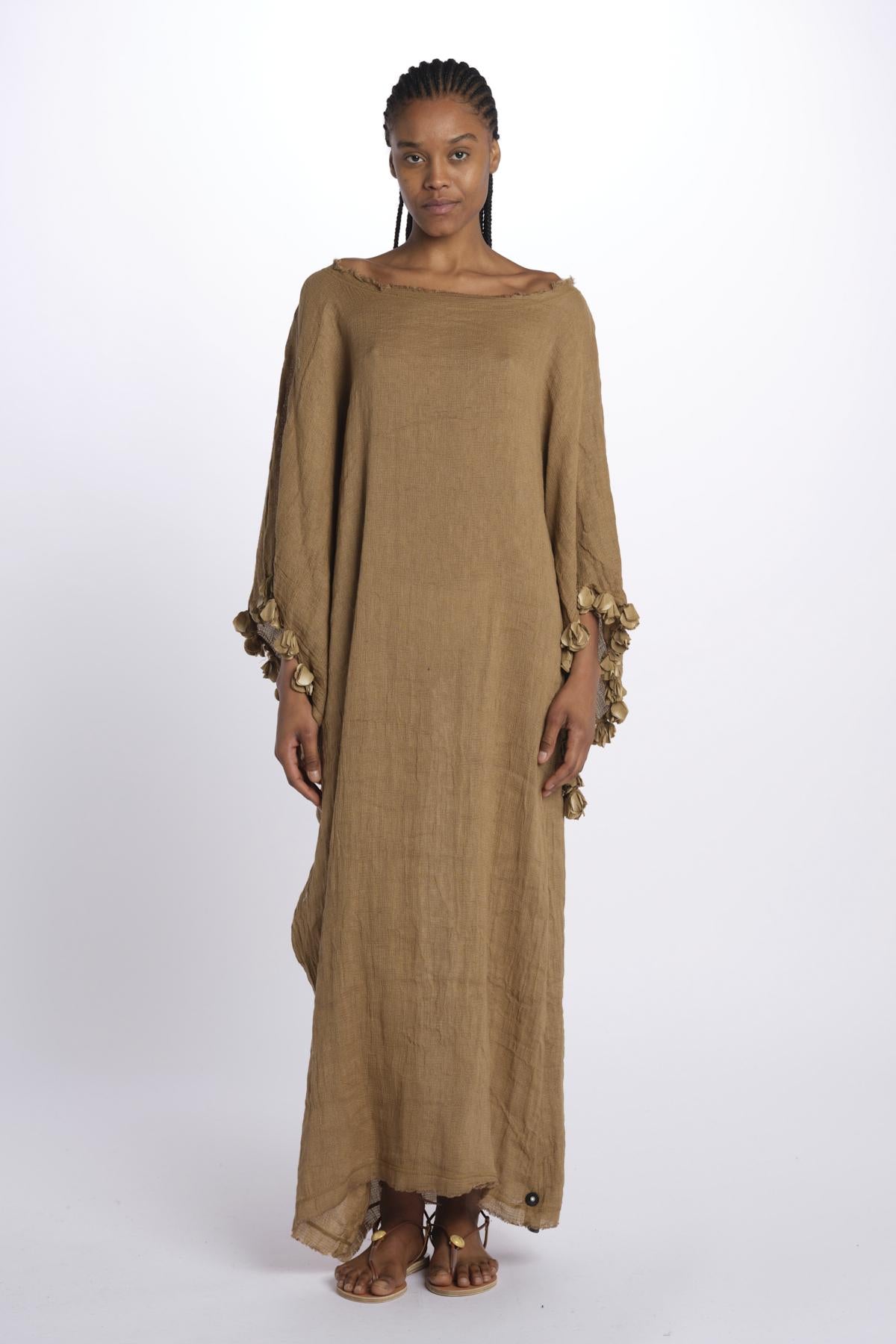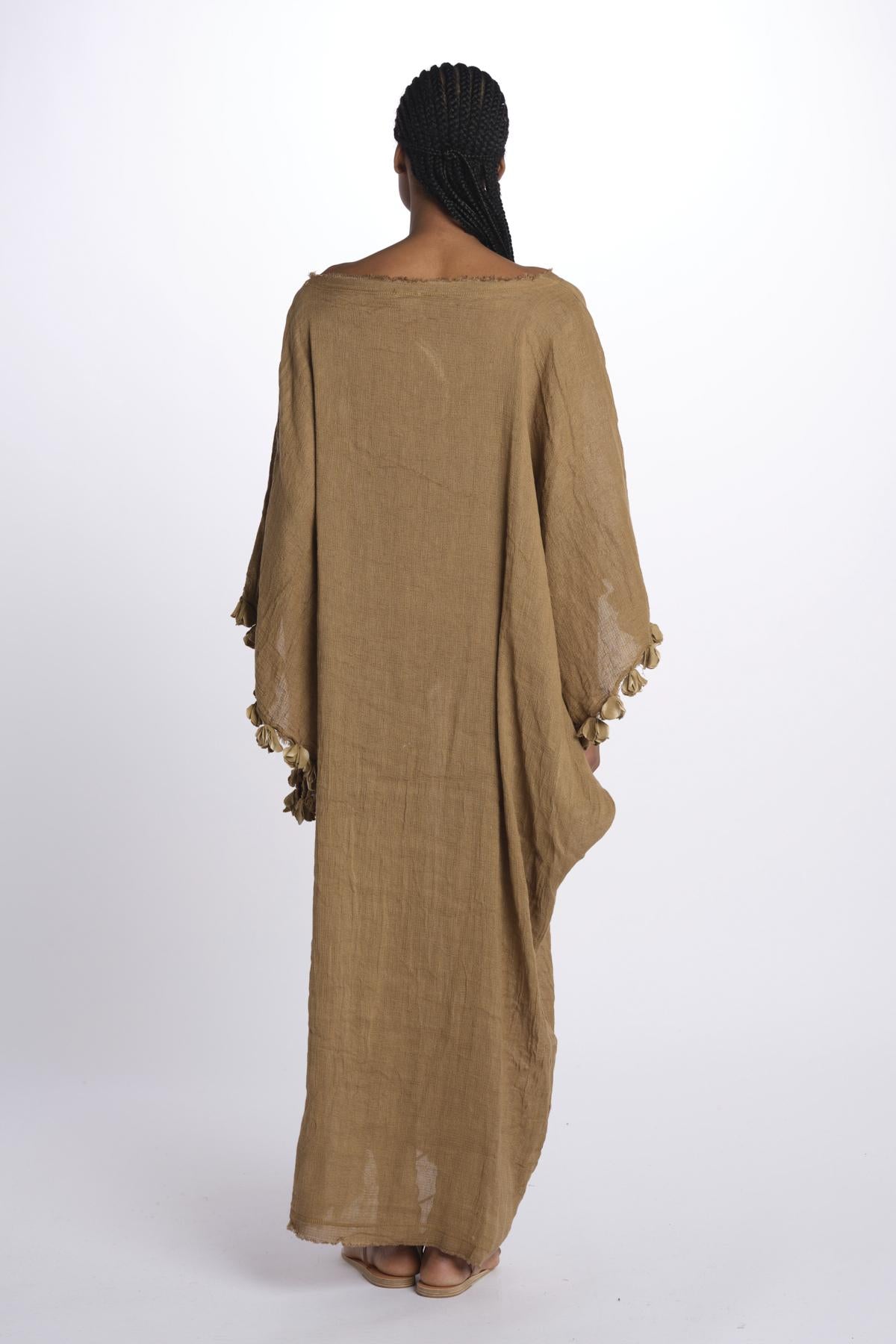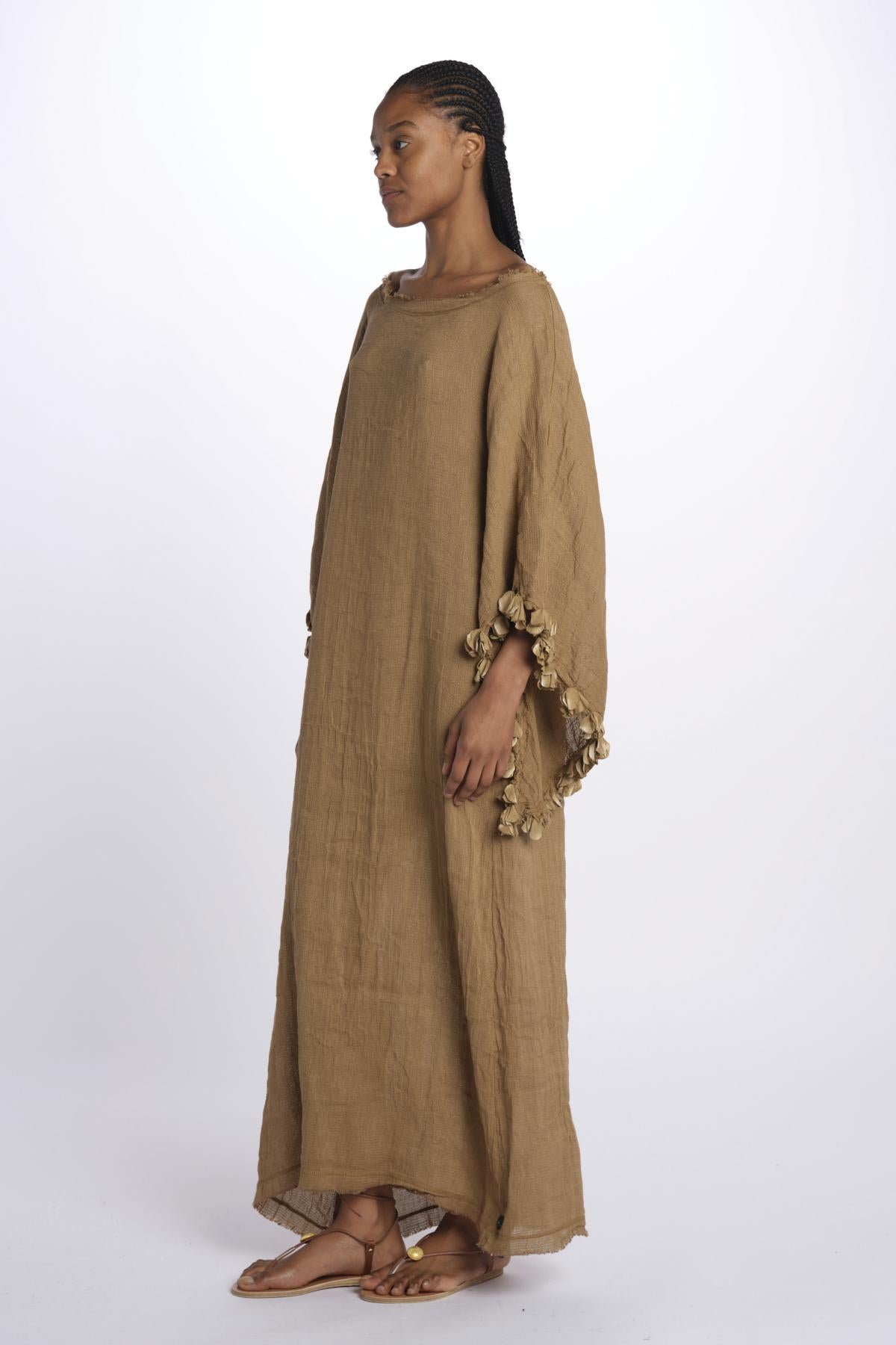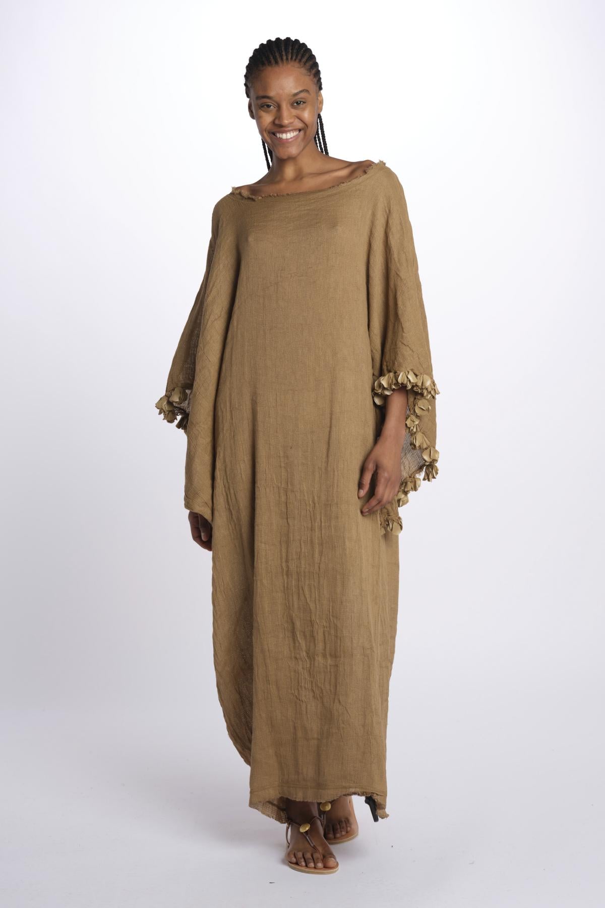 Abito NEFELI lungo m/l by la strega. La modella è alta 174 cm e indossa una taglia unica. Composizione: 100% cotone.