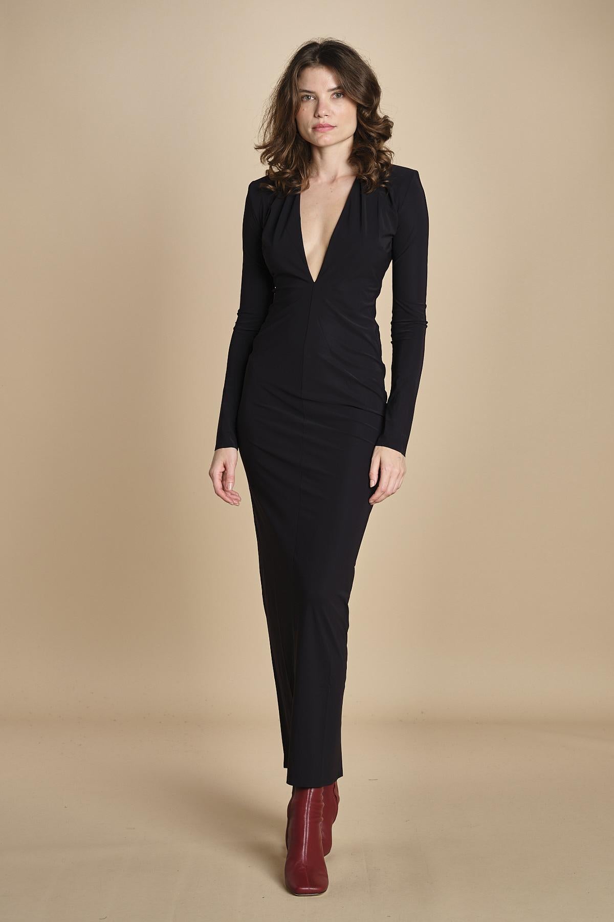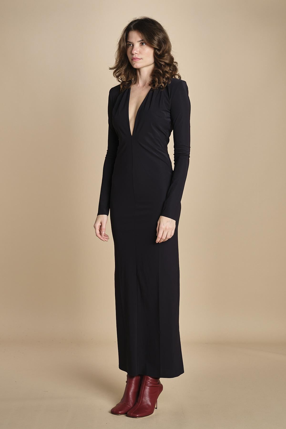 abito lungo con spalline e scollo profondo. La modella è alta 176 cm e indossa una taglia 38. 73% POLIAMMIDE 27% ELASTANE