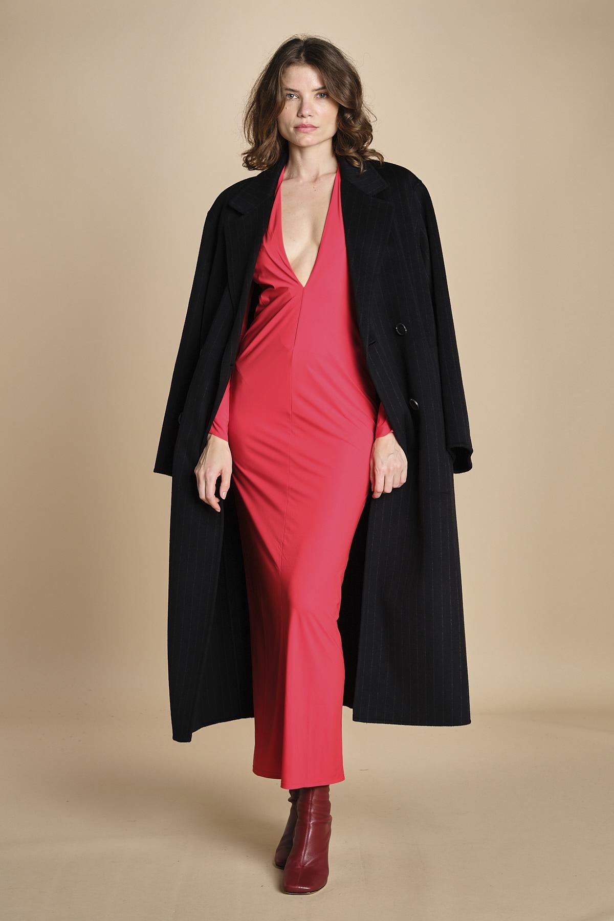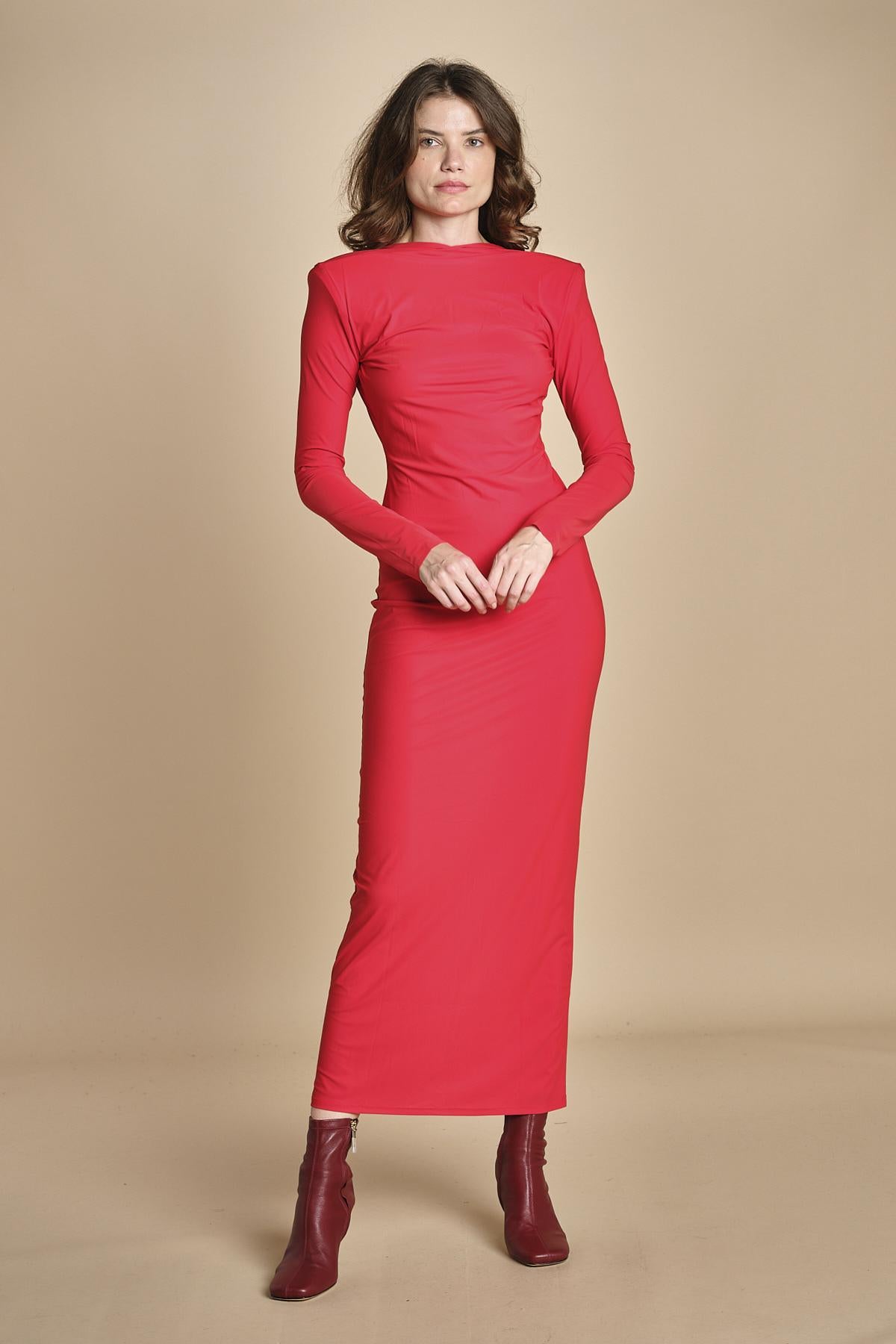 abito lungo con spalline e scollo profondo LARA ROSSO amazuìn