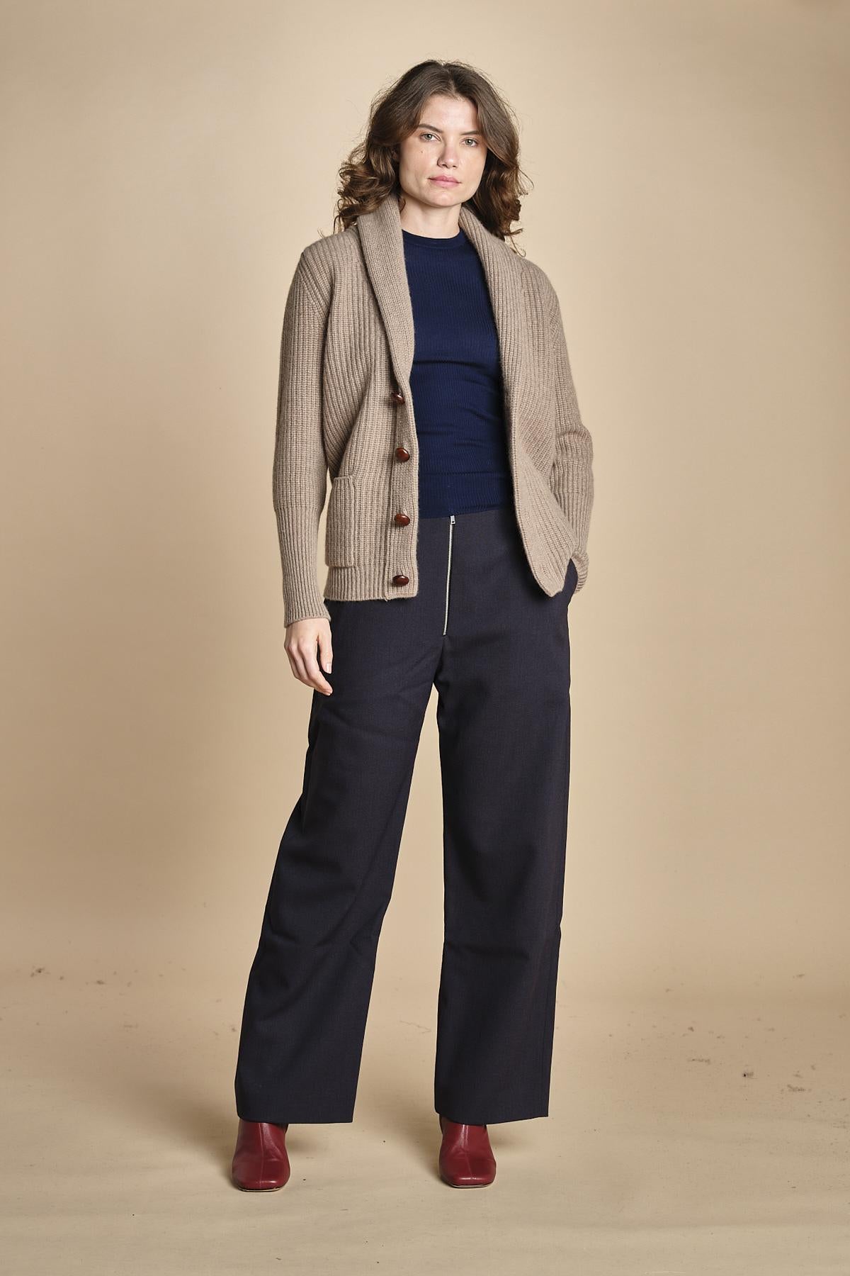 top americano a costine in lana merino LAU28 E21210 BLU milaura
