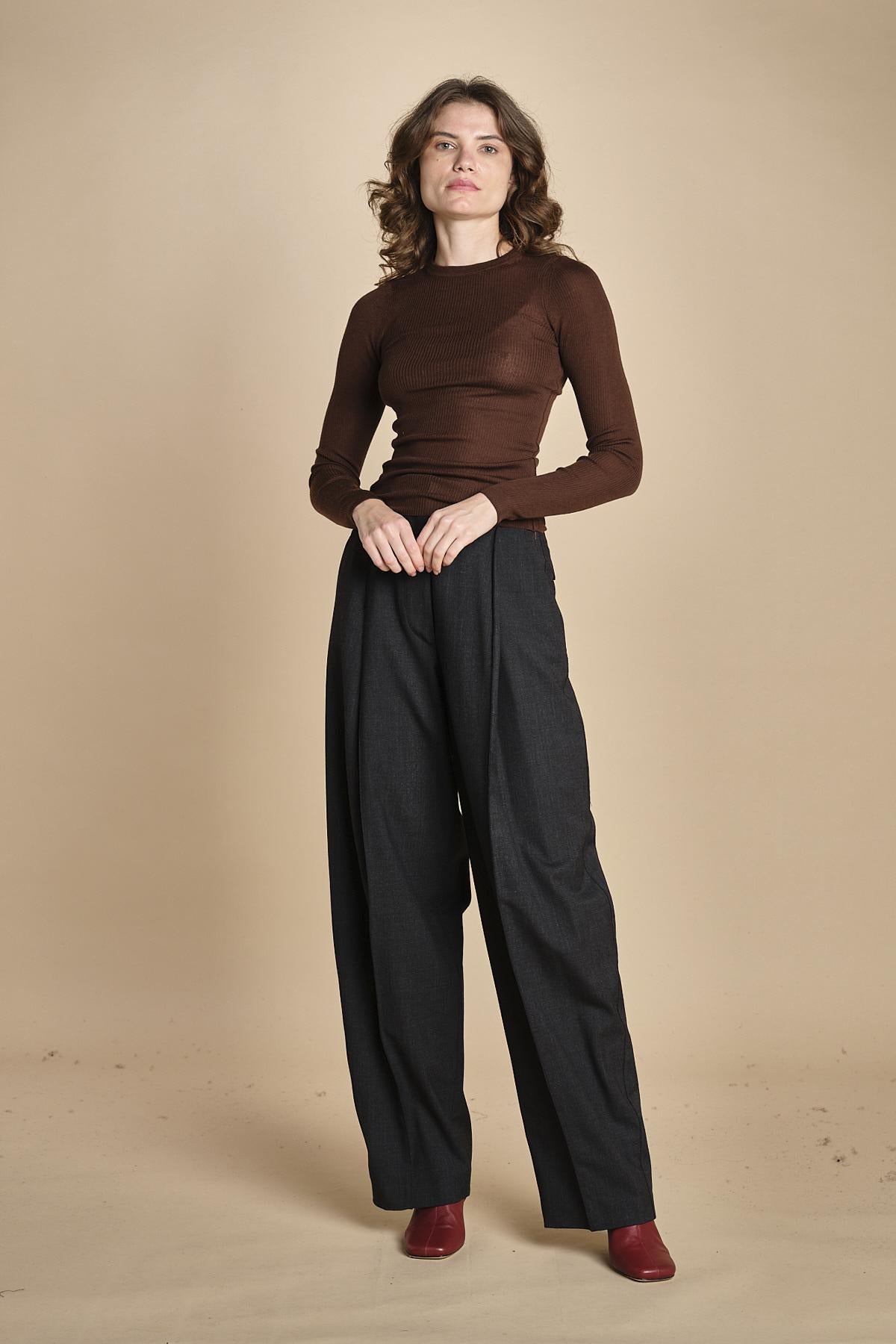 girocollo a costine manica luna in lana merino LAU30 E2220 CIOCCOLATO milaura