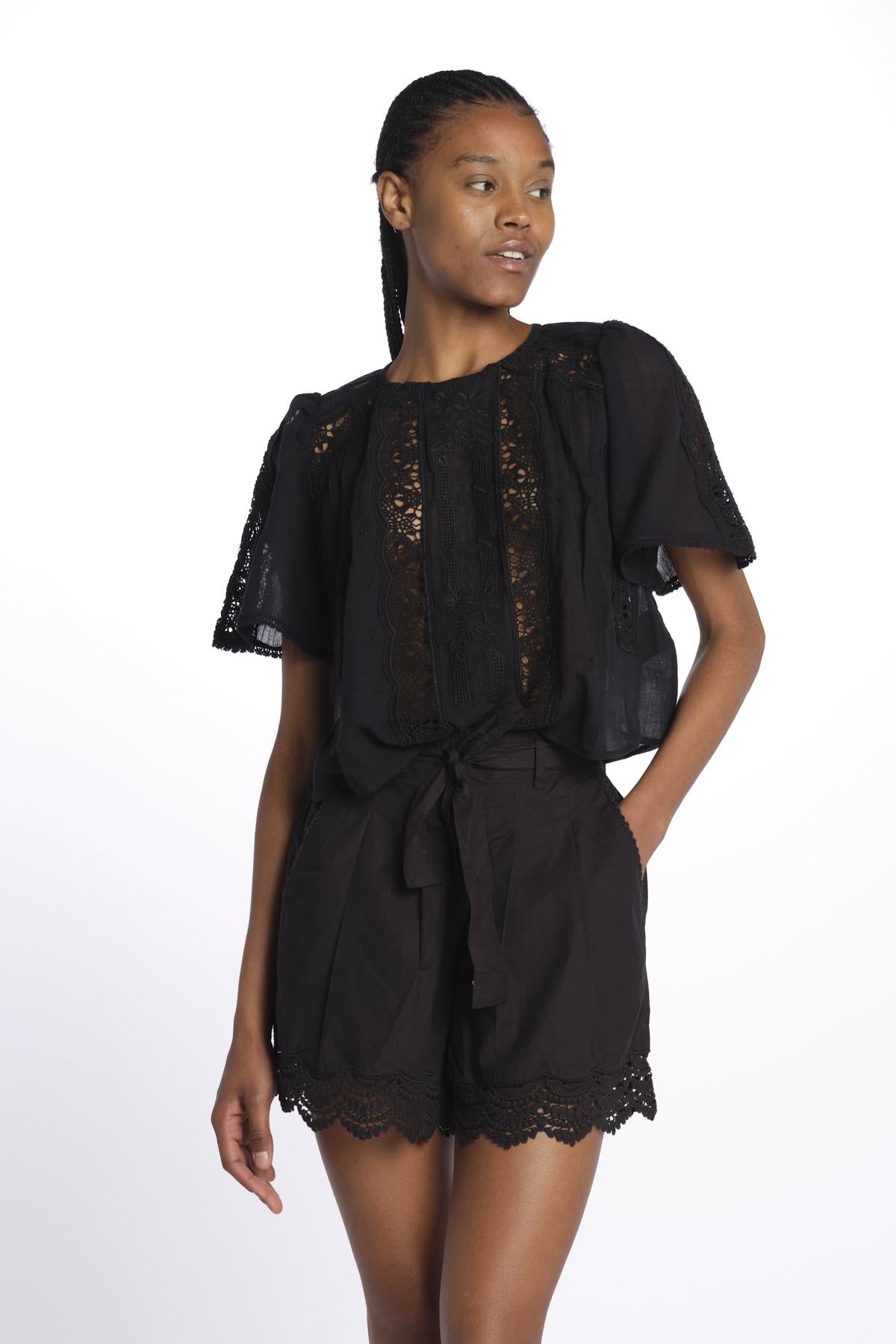 MAELYS shorts con ricamo by louise misha. La modella è alta 174 cm e indossa una taglia 36 (IT40). Composizione: 100% cotone organico.